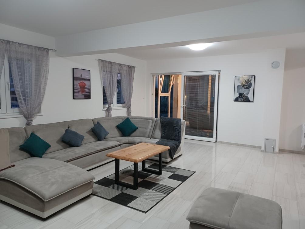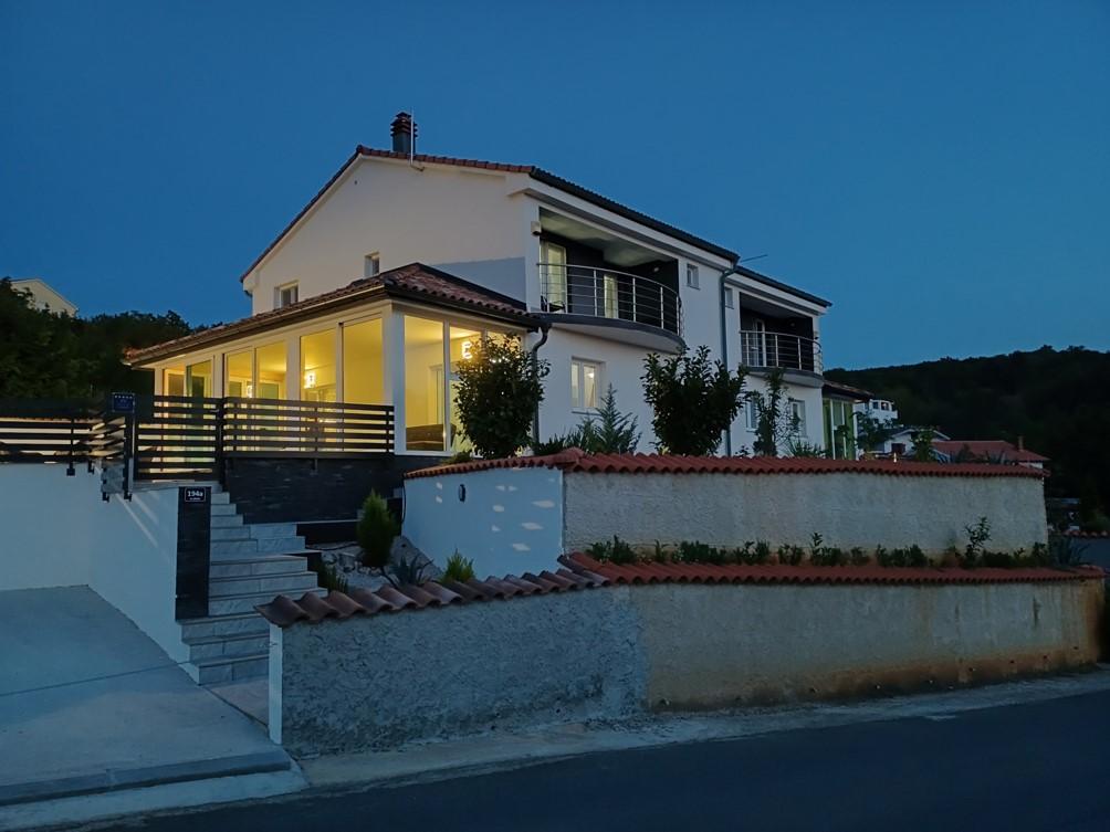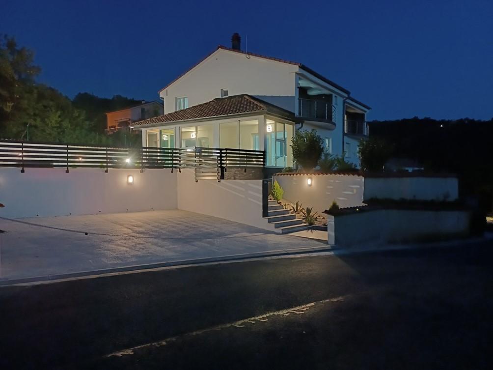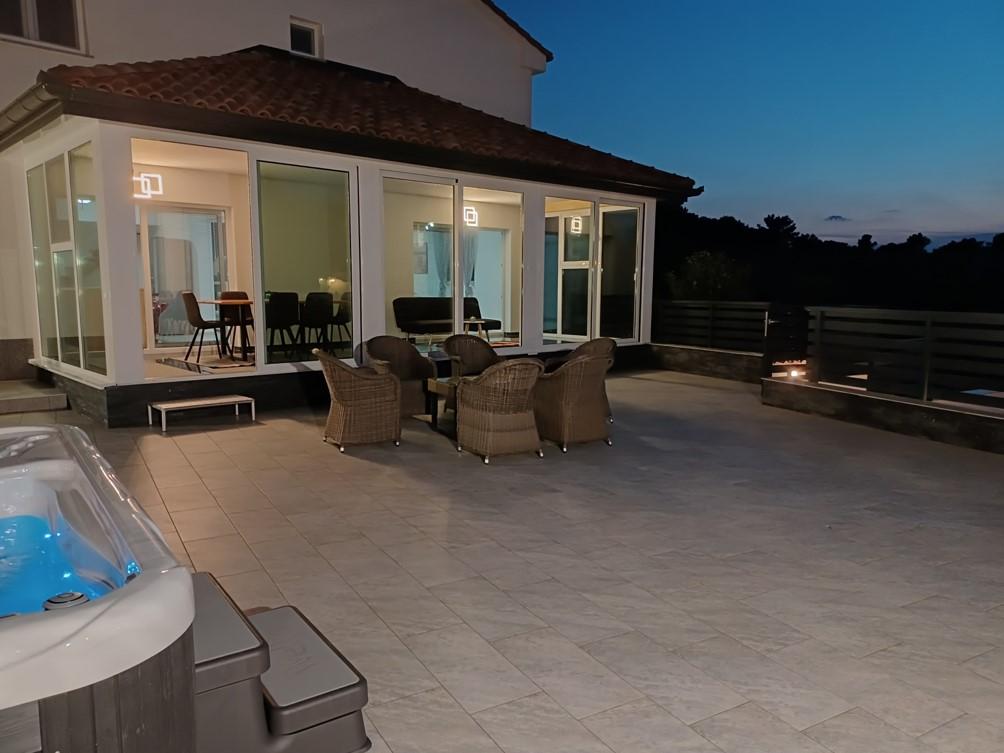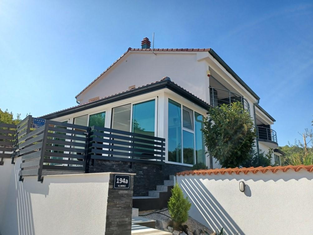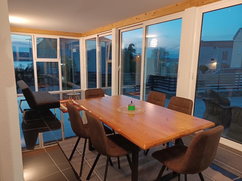 Das Ferienhaus liegt in Klimno, auf der Ostseite der Insel Krk, nur 10 Autominuten von der Krk-Brücke entfernt. Mit seiner alten touristischen Tradition ist Klimno für sein reichhaltiges Gastronomieangebot in Restaurants bekannt, die Meeresfrüchte und andere Spezialitäten mit dem obligatorischen einheimischen Wein anbieten, sowie für Apartments und private Villen. 100 Meter vom Strand entfernt in der ruhigen Stadt Klimno auf der Insel Krk befindet sich ein luxuriöses Haus mit einer 5-Sterne-Größe von 200 m2 mit einem großen Hydromassage-Pool für 6 Personen, einer Liegewiese und einem Garten. Wenn Sie dieses Jahr einen Urlaub in völliger Privatsphäre mit einem Hauch von Luxus und in der Nähe des Meeres genießen möchten, wählen Sie dieses Ferienhaus, das alles bietet, was Sie für einen angenehmen und unbeschwerten Aufenthalt benötigen. Im ersten Stock gibt es 3 Doppelzimmer mit eigenem Bad, Fernseher und jedes Zimmer hat einen Ausgang zum Balkon. Sie können Ihren Morgen mit Blick auf die sonnenbeschienene Bucht beginnen. Im Erdgeschoss gibt es eine modern ausgestattete Küche und ein Wohnzimmer, die auf eine schöne überdachte Glasterrasse und einen Außenbereich führen.