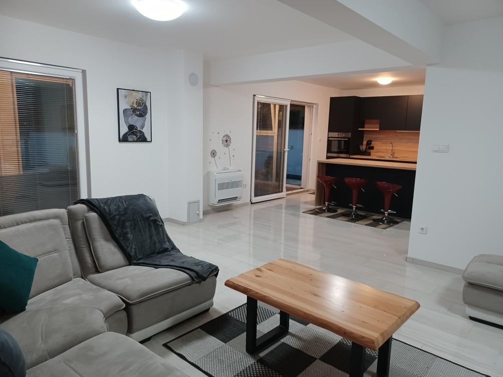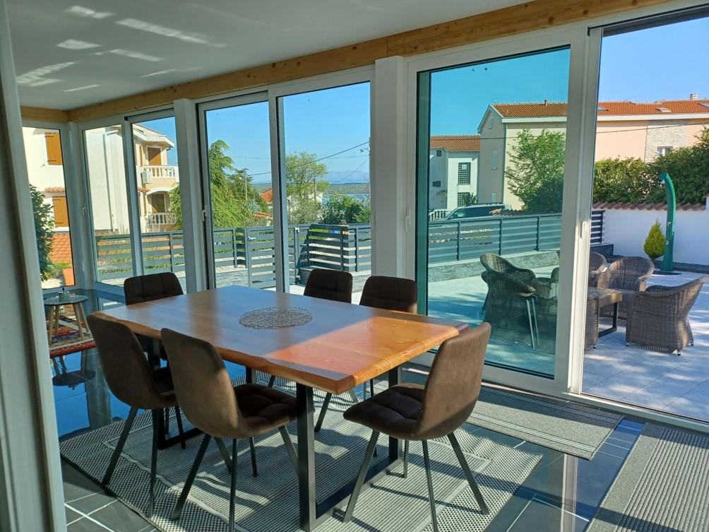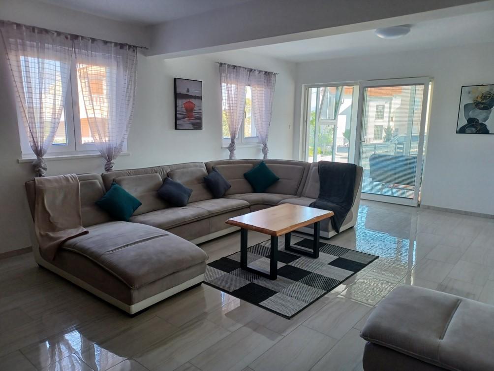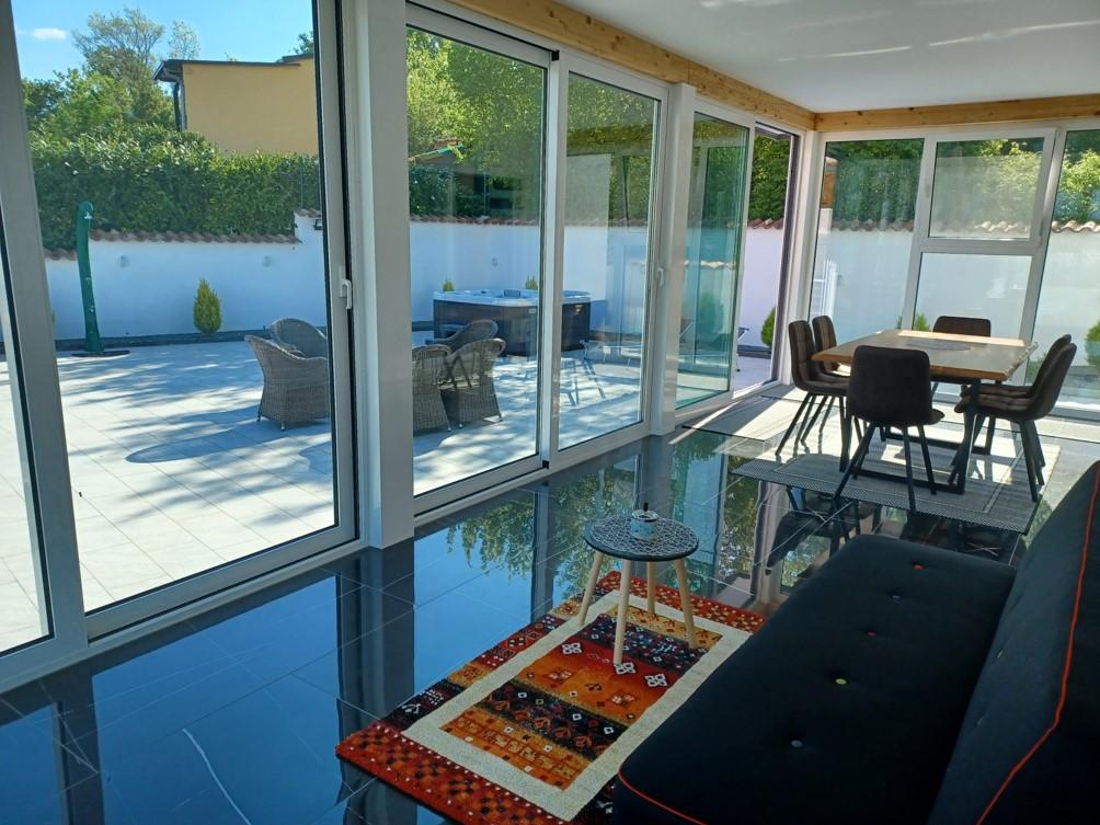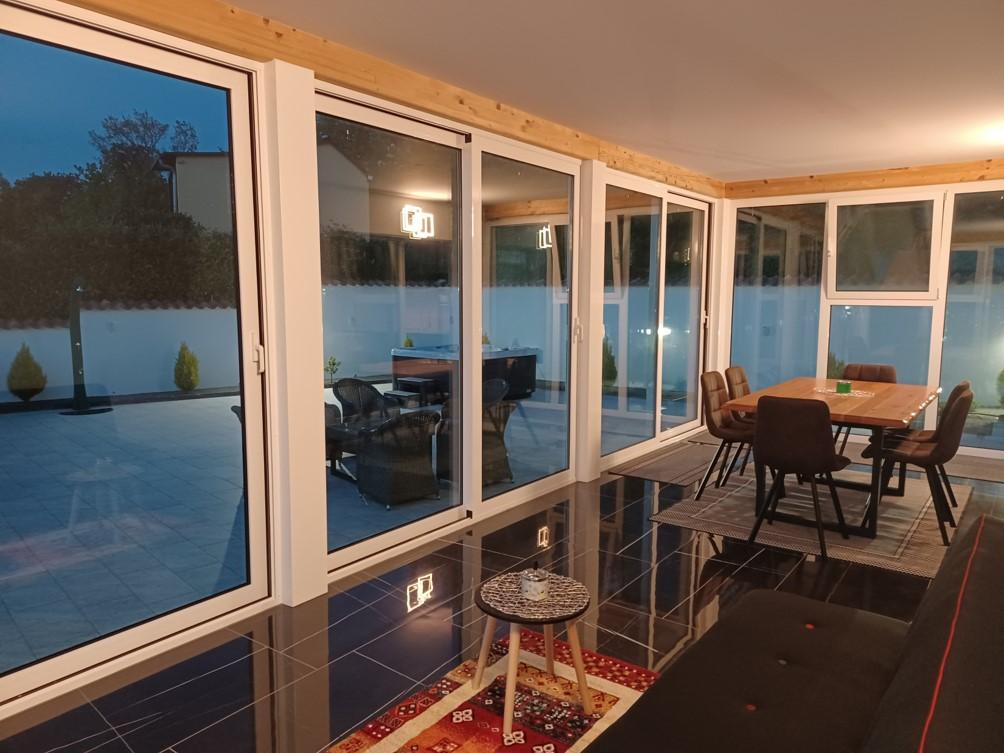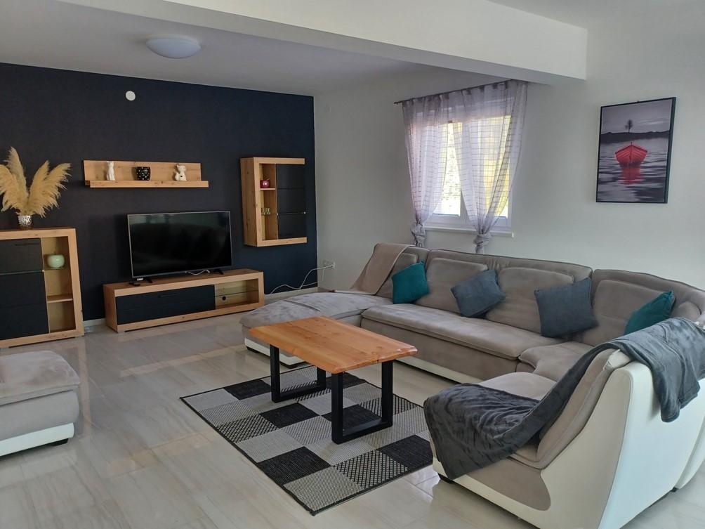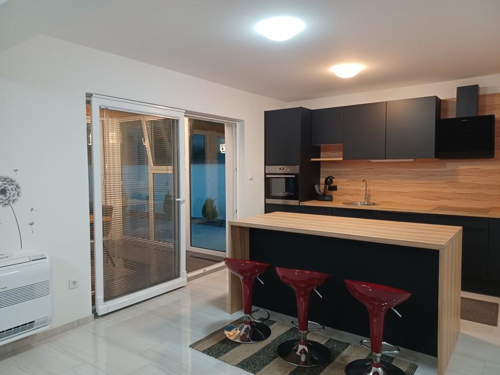 Das Ferienhaus liegt in Klimno, auf der Ostseite der Insel Krk, nur 10 Autominuten von der Krk-Brücke entfernt. Mit seiner alten touristischen Tradition ist Klimno für sein reichhaltiges Gastronomieangebot in Restaurants bekannt, die Meeresfrüchte und andere Spezialitäten mit dem obligatorischen einheimischen Wein anbieten, sowie für Apartments und private Villen. 100 Meter vom Strand entfernt in der ruhigen Stadt Klimno auf der Insel Krk befindet sich ein luxuriöses Haus mit einer 5-Sterne-Größe von 200 m2 mit einem großen Hydromassage-Pool für 6 Personen, einer Liegewiese und einem Garten. Wenn Sie dieses Jahr einen Urlaub in völliger Privatsphäre mit einem Hauch von Luxus und in der Nähe des Meeres genießen möchten, wählen Sie dieses Ferienhaus, das alles bietet, was Sie für einen angenehmen und unbeschwerten Aufenthalt benötigen. Im ersten Stock gibt es 3 Doppelzimmer mit eigenem Bad, Fernseher und jedes Zimmer hat einen Ausgang zum Balkon. Sie können Ihren Morgen mit Blick auf die sonnenbeschienene Bucht beginnen. Im Erdgeschoss gibt es eine modern ausgestattete Küche und ein Wohnzimmer, die auf eine schöne überdachte Glasterrasse und einen Außenbereich führen.