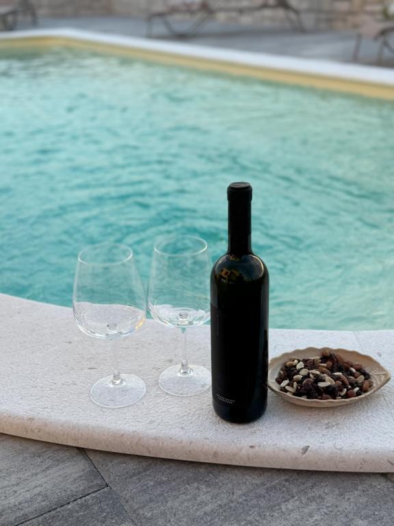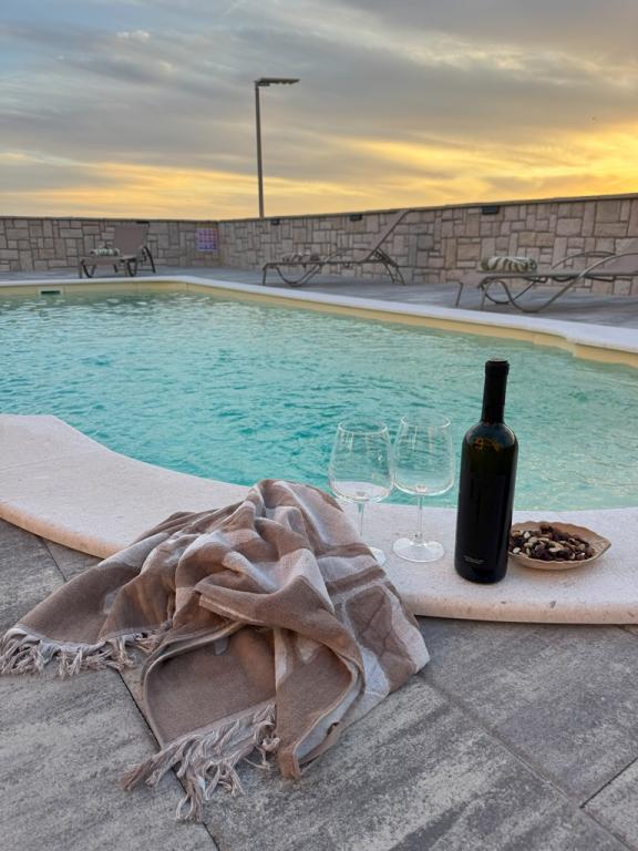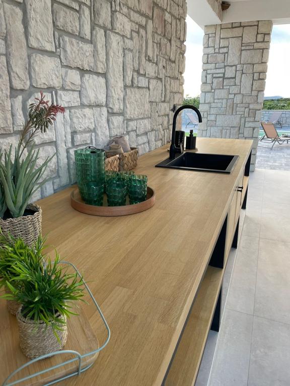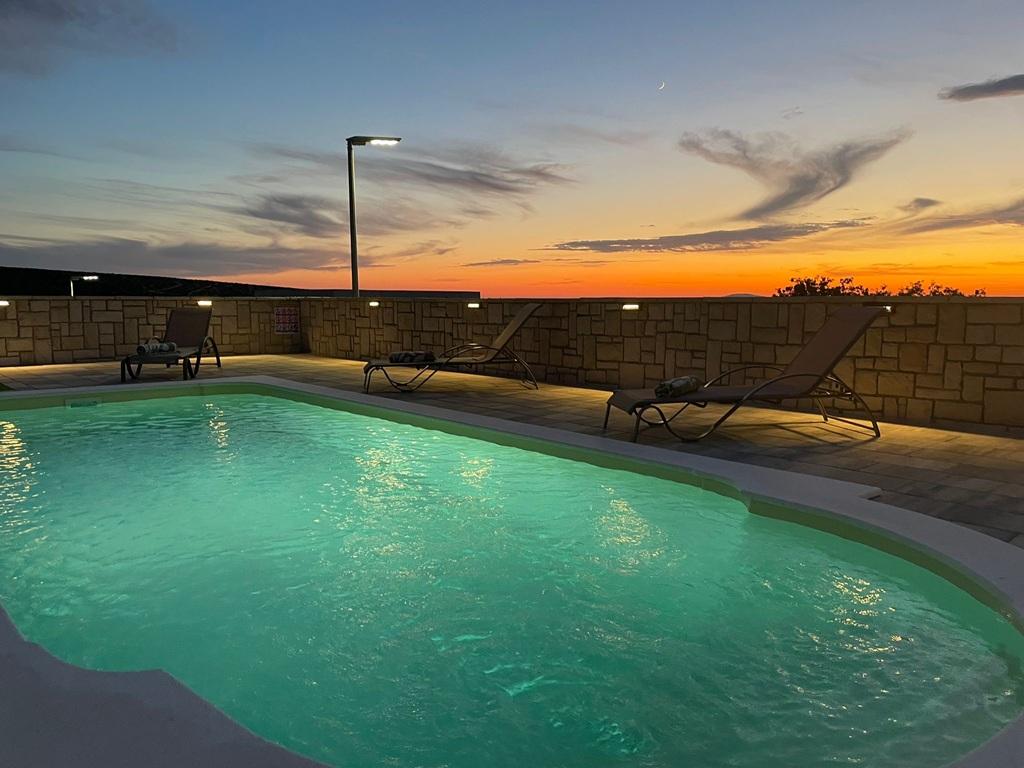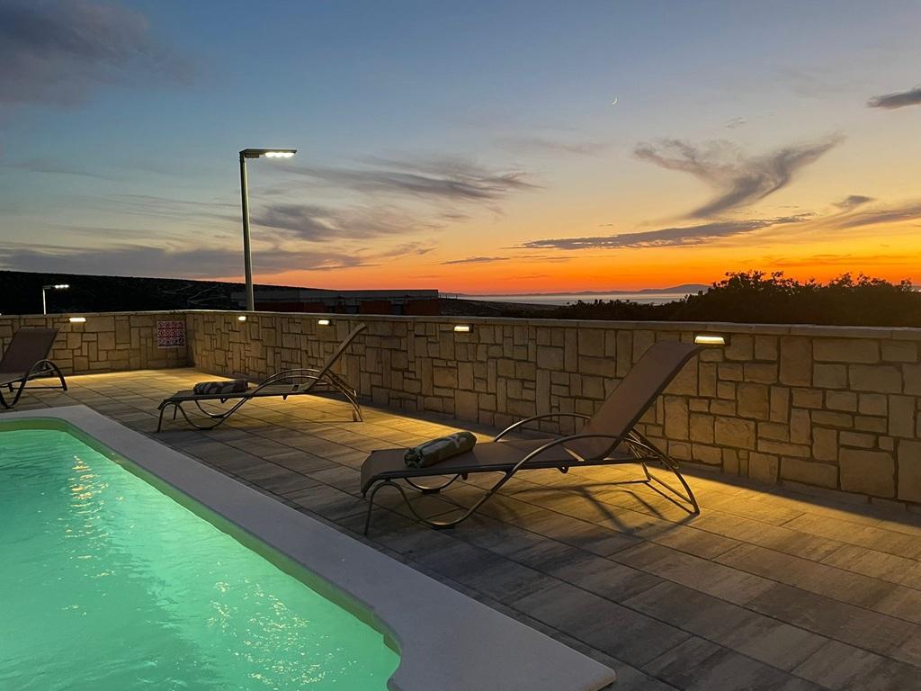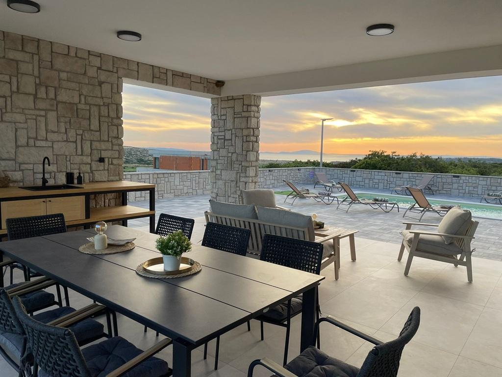 Die im Jahr 2024 erbaute, völlig neue, komplett und modern ausgestattete Villa in der Hauptstadt des besten Schafskäses der Welt, Kolan auf der Insel Pag, bietet die perfekte Kombination aus Entspannung und erstklassiger Gastronomie. Sie liegen 1500 Meter vom Meer entfernt und verfügen über alle notwendigen Einrichtungen. Sie bieten großen Komfort und die Möglichkeit zur Erholung. In perfekter Lage, mit herrlichem Blick auf das ornithologische Reservat Kolanjsko blato, mit einem herrlichen Schwimmbad und einer komfortablen Sauna, bietet es unseren Gästen einen ausgezeichneten Urlaub in vier modern ausgestatteten Zimmern mit allen notwendigen Einrichtungen.