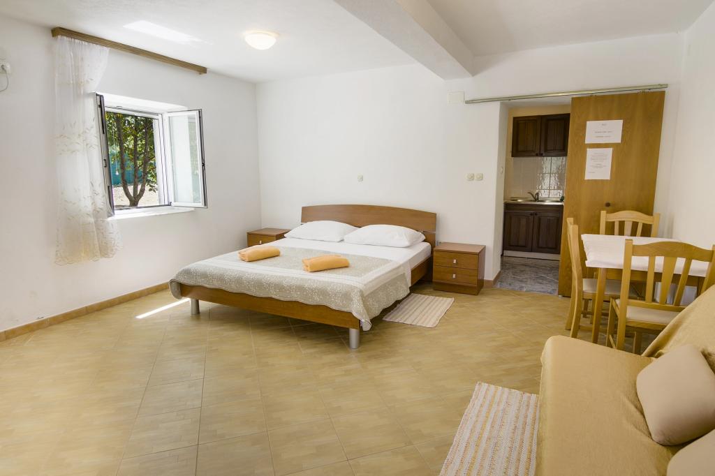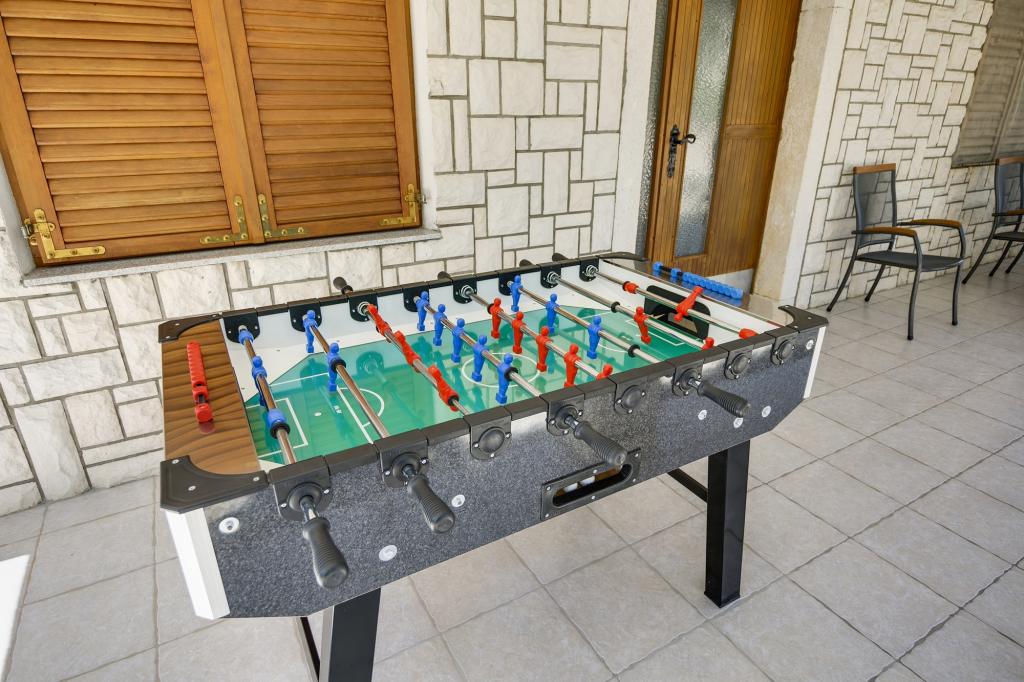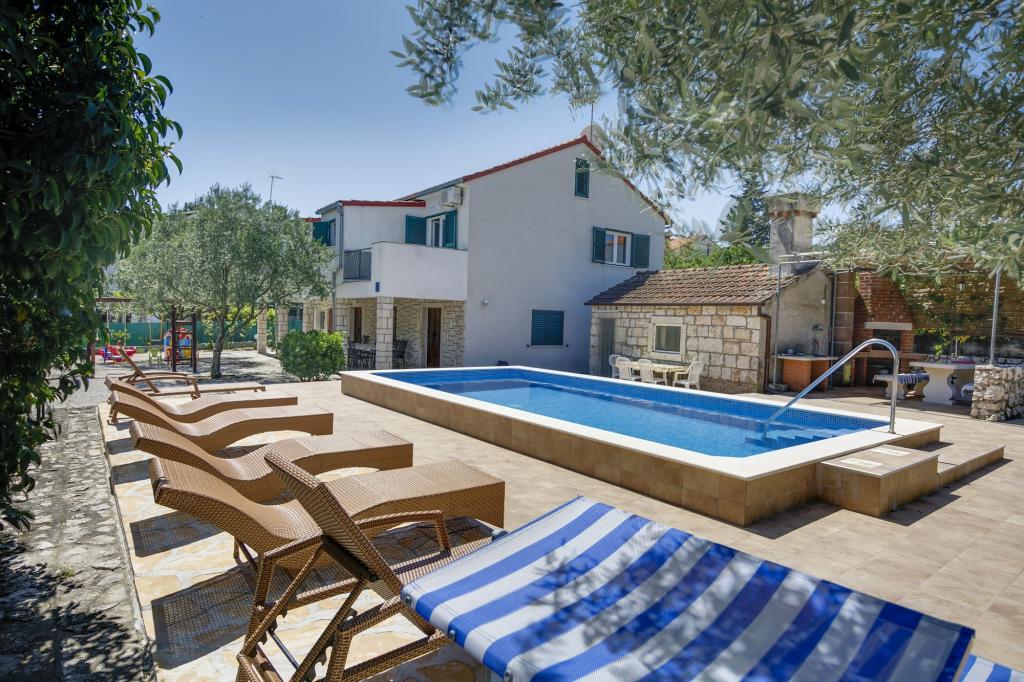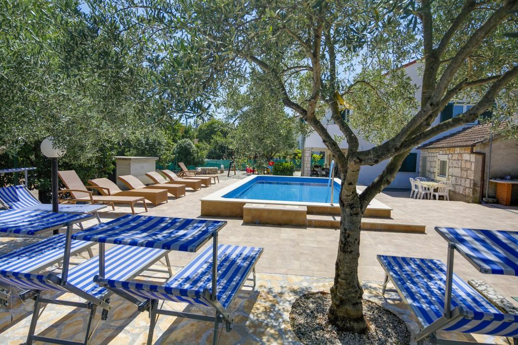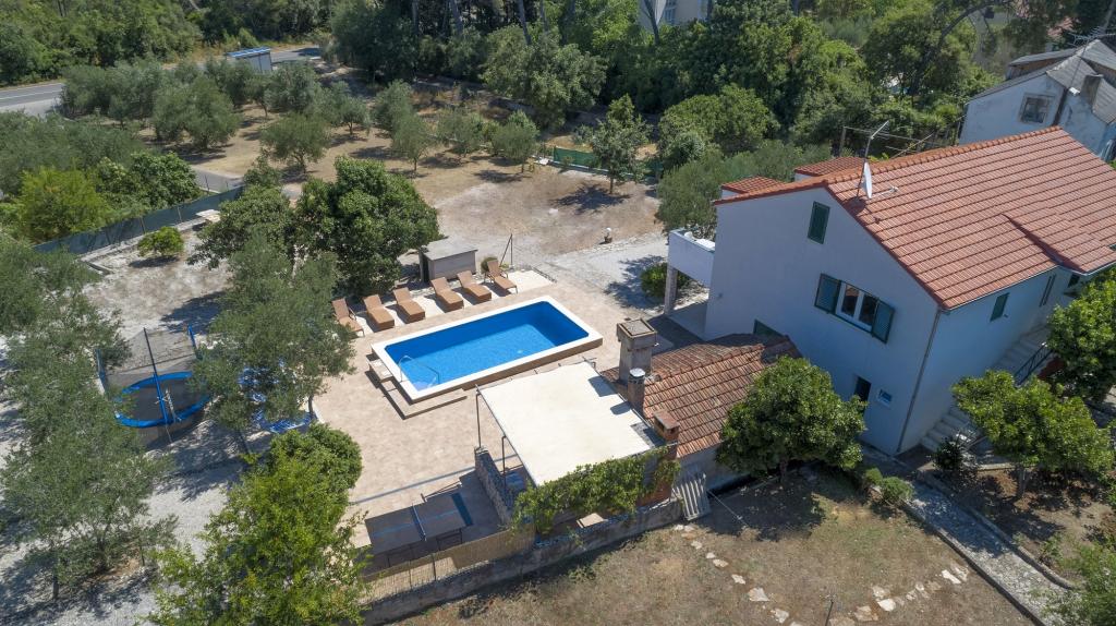 Die Villa Ivanka liegt am Rande der Stadt Korčula auf einem großzügigen Grundstück von 3500 m2. und bietet einen großen Parkplatz. Während Ihres Aufenthalts sind Sie die einzigen Gäste im Haus, der Gastgeber ist während Ihres Aufenthalts nicht anwesend. Den 300 m entfernten Strand erreichen Sie am einfachsten zu Fuß. Dieses Haus bietet auf 193m2 Platz für maximal 10 plus 2 Personen. Das Haus besteht aus zwei Wohnungen, eine im ersten Stock mit vier Schlafzimmern und einer Küche und die andere im Erdgeschoss mit einem Schlafzimmer, Bad und Kochnische. Jedes Zimmer ist geräumig und verfügt über ein Badezimmer, eine Terrasse und eine Klimaanlage. Vor dem Haus befindet sich ein 24 m² großer Außenpool mit einer Tiefe von 1,65 m, daneben gibt es 11 hochwertige Liegestühle, Tischtennis, professionellen Tischfußball und ein Trampolin. Neben dem Pool gibt es eine Sommerküche zur Essenszubereitung, neben der Küche gibt es einen Außengrill für angenehmes Beisammensein und Entspannen. Das Mitbringen eines Haustiers in die Wohneinheit ist gestattet. Die Stadt Korcula liegt nur wenige Gehminuten vom Meer entfernt.