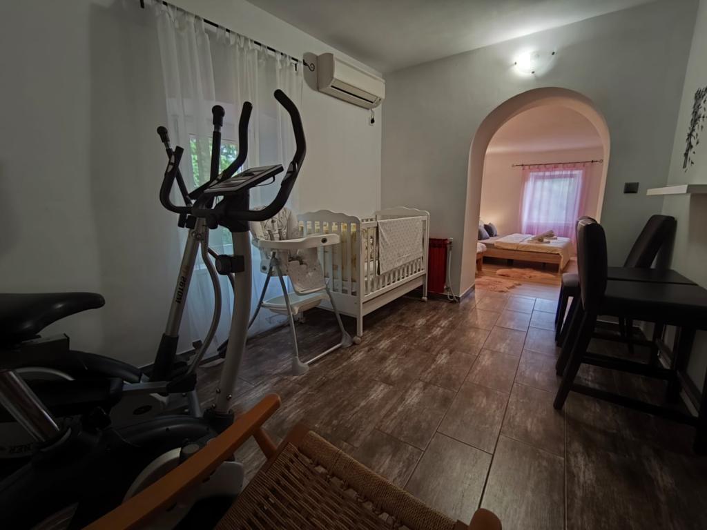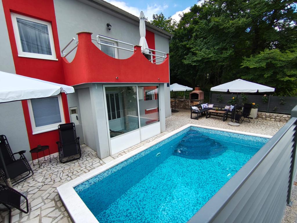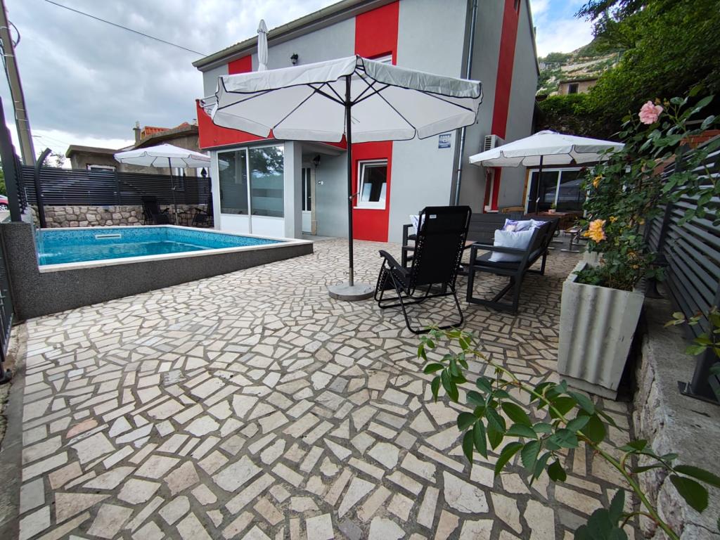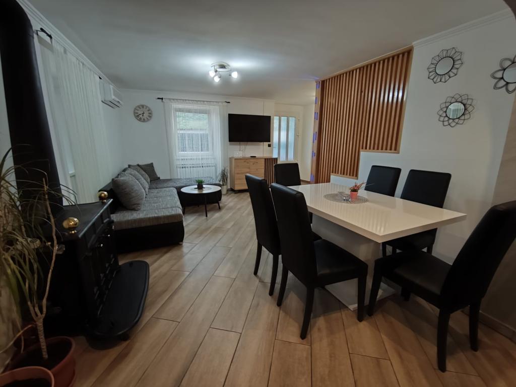 Dieses schöne Haus liegt im kleinen und ruhigen Ort Križišće im Hinterland von Kraljevica. Kvarner Bucht. Ein idealer Ort, wenn Sie einen ruhigen Familienurlaub suchen. Wir liegen in einem Tal, daher ist die Krk-Brücke nur 3 km entfernt, Crikvenica 10 km und der nächste Strand (Feinkies-Jadranovo) 5 km. Besuchen Sie den Tribalj-See oder die Plitvicer Seen. Lernen Sie die Stadt Kraljevica oder Rijeka kennen. Das Haus verfügt über 3 Schlafzimmer (4 Betten, ein Kinderbett) und ein Eckschlafsofa im Wohnzimmer. 2 Badezimmer, 1 WC. Außerdem 3 Klimaanlagen, 4 Smart-TVs. Trainingsgeräte. Ausgestattete Küche (Mikrowelle, Toaster, Kaffeemaschine, Wasserkocher...). Babyfütterer verfügbar. Das Haus verfügt über eine Taverne im Haus mit Grill, wo Sie bei schlechtem Wetter gerne grillen können. Außenkamin/Grill. Außerdem eine Solardusche im Freien. Der Pool ist solarbeheizt, und der Whirlpool erwärmt sich auf bis zu 40 °C. Ein überdachter Privatparkplatz für zwei Fahrzeuge ist vorhanden. Haustiere sind kostenlos willkommen (max. 2). Für weitere Informationen kontaktieren Sie uns bitte. Vielen Dank für Ihr Vertrauen. Familie Kresić.