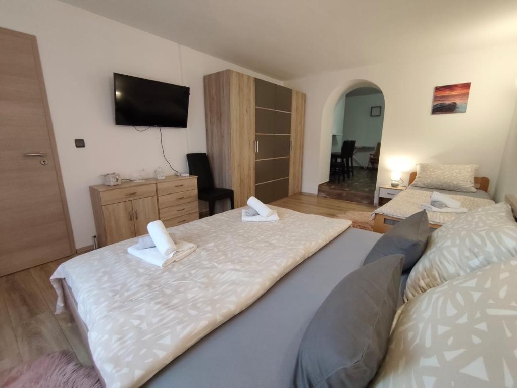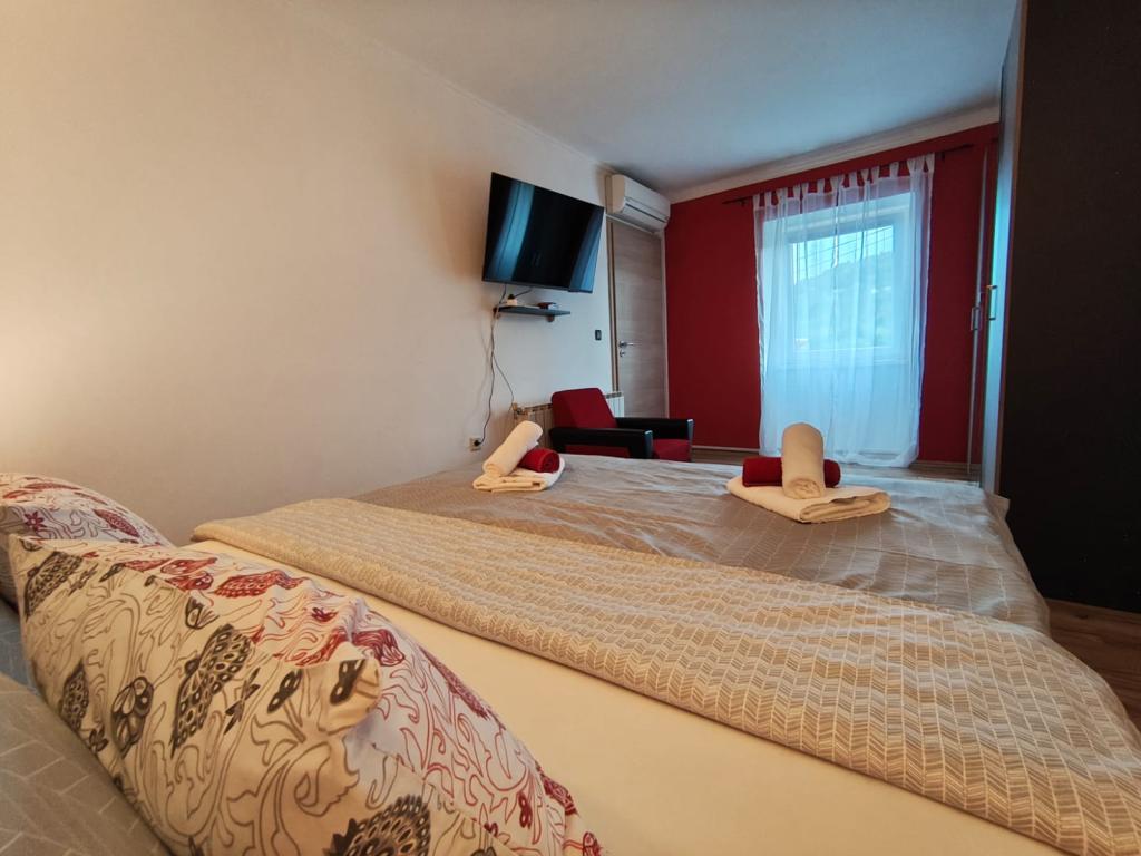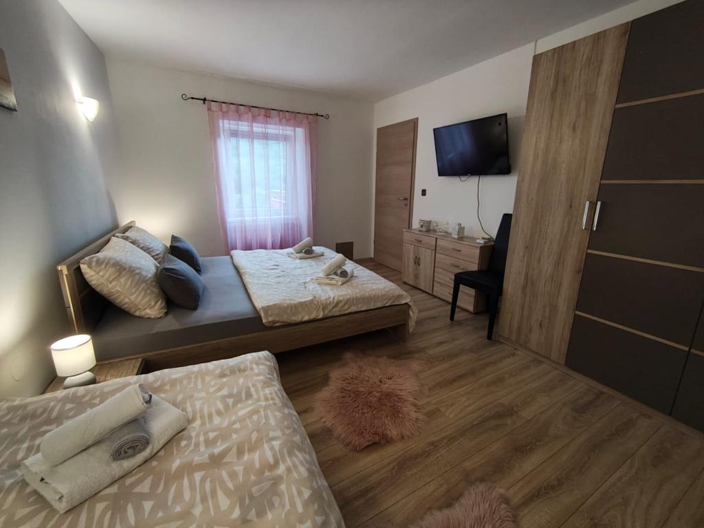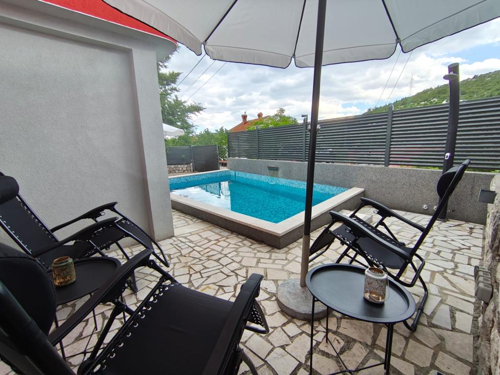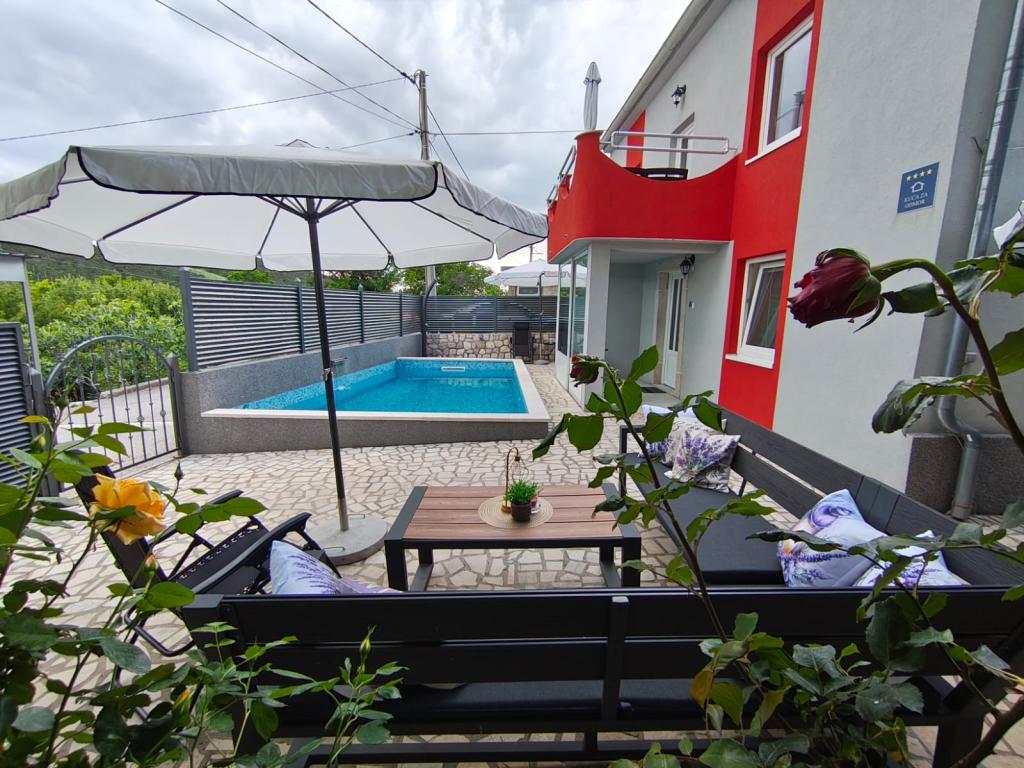 Dieses schöne Haus liegt im kleinen und ruhigen Ort Križišće im Hinterland von Kraljevica. Kvarner Bucht. Ein idealer Ort, wenn Sie einen ruhigen Familienurlaub suchen. Wir liegen in einem Tal, daher ist die Krk-Brücke nur 3 km entfernt, Crikvenica 10 km und der nächste Strand (Feinkies-Jadranovo) 5 km. Besuchen Sie den Tribalj-See oder die Plitvicer Seen. Lernen Sie die Stadt Kraljevica oder Rijeka kennen. Das Haus verfügt über 3 Schlafzimmer (4 Betten, ein Kinderbett) und ein Eckschlafsofa im Wohnzimmer. 2 Badezimmer, 1 WC. Außerdem 3 Klimaanlagen, 4 Smart-TVs. Trainingsgeräte. Ausgestattete Küche (Mikrowelle, Toaster, Kaffeemaschine, Wasserkocher...). Babyfütterer verfügbar. Das Haus verfügt über eine Taverne im Haus mit Grill, wo Sie bei schlechtem Wetter gerne grillen können. Außenkamin/Grill. Außerdem eine Solardusche im Freien. Der Pool ist solarbeheizt, und der Whirlpool erwärmt sich auf bis zu 40 °C. Ein überdachter Privatparkplatz für zwei Fahrzeuge ist vorhanden. Haustiere sind kostenlos willkommen (max. 2). Für weitere Informationen kontaktieren Sie uns bitte. Vielen Dank für Ihr Vertrauen. Familie Kresić.