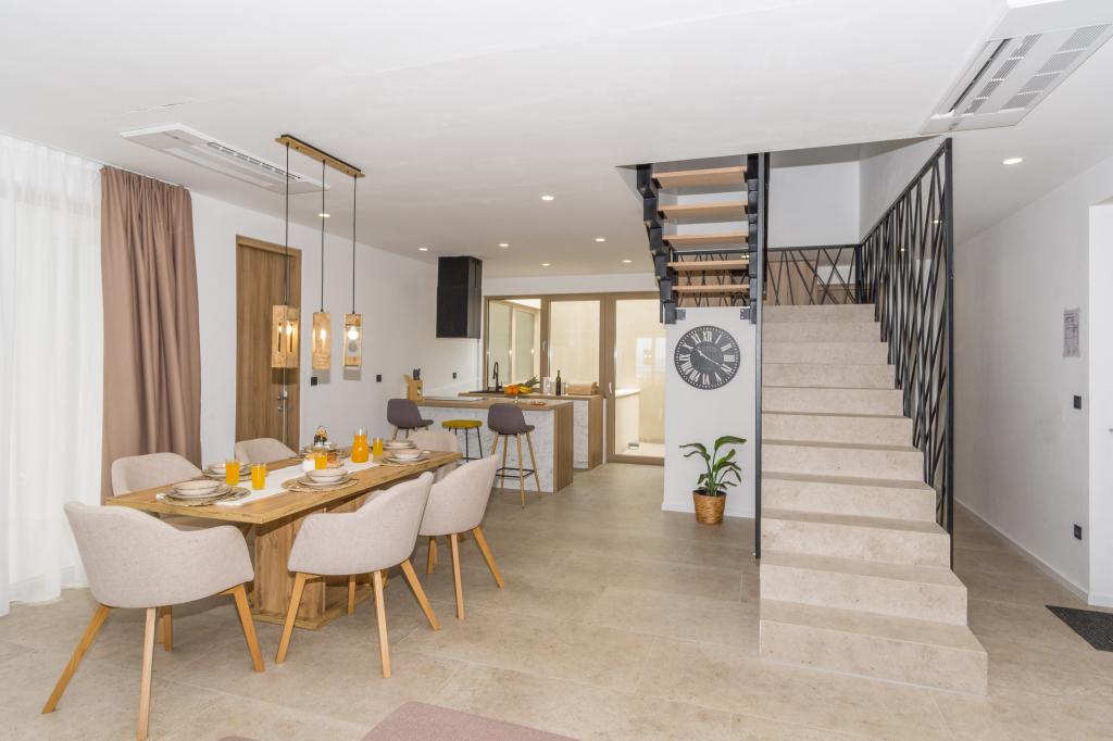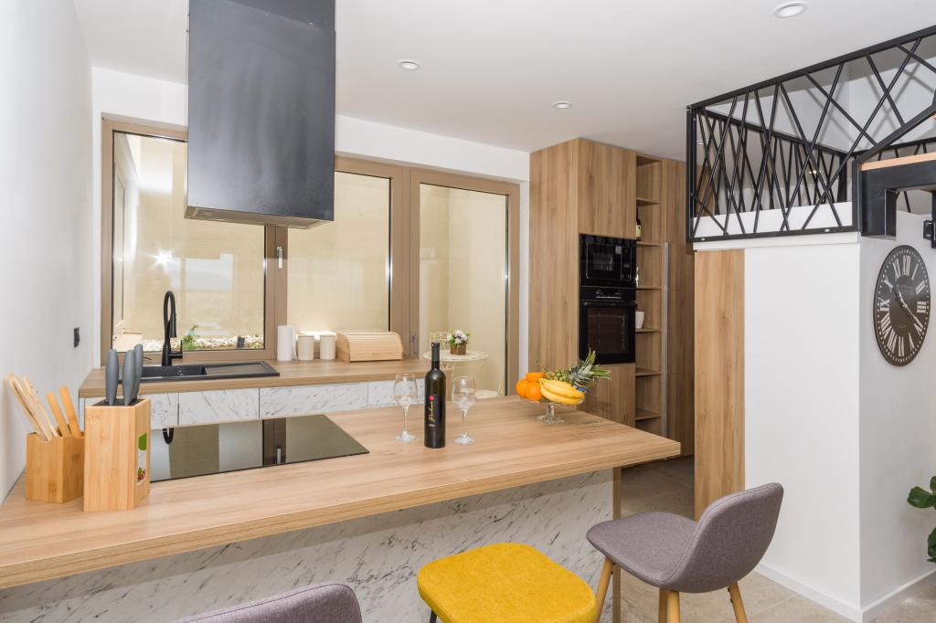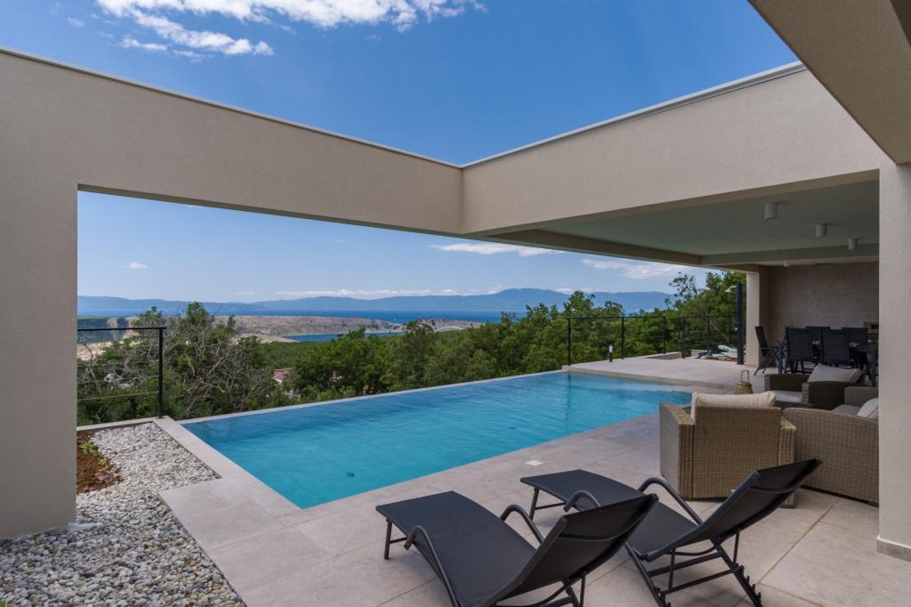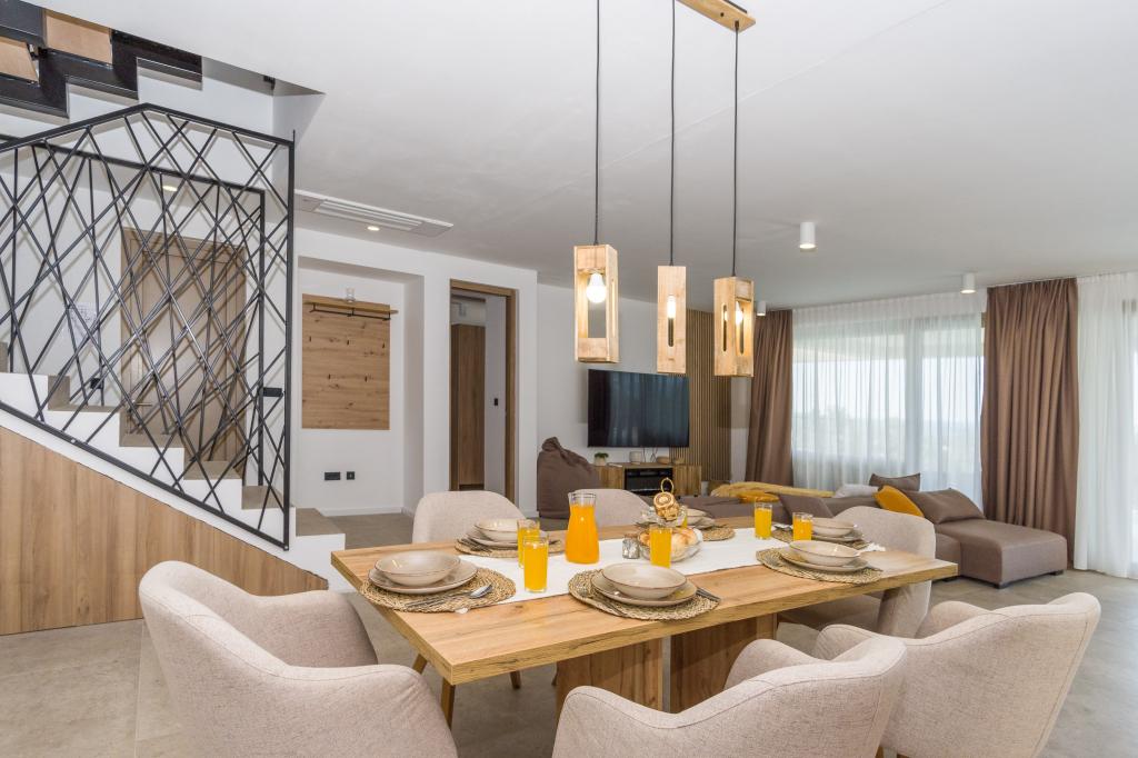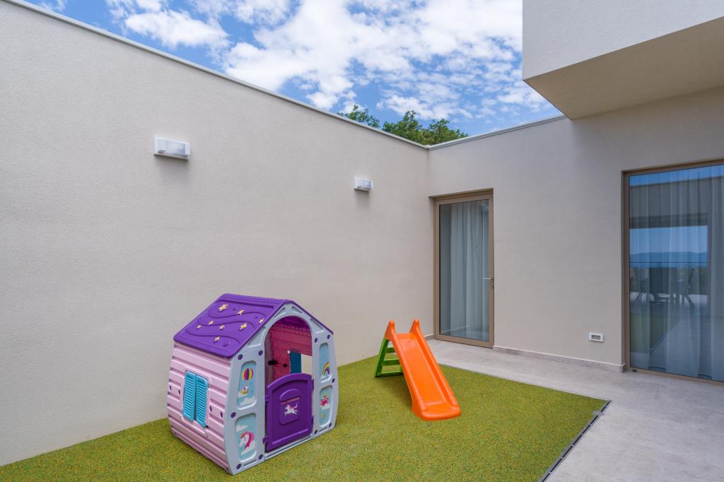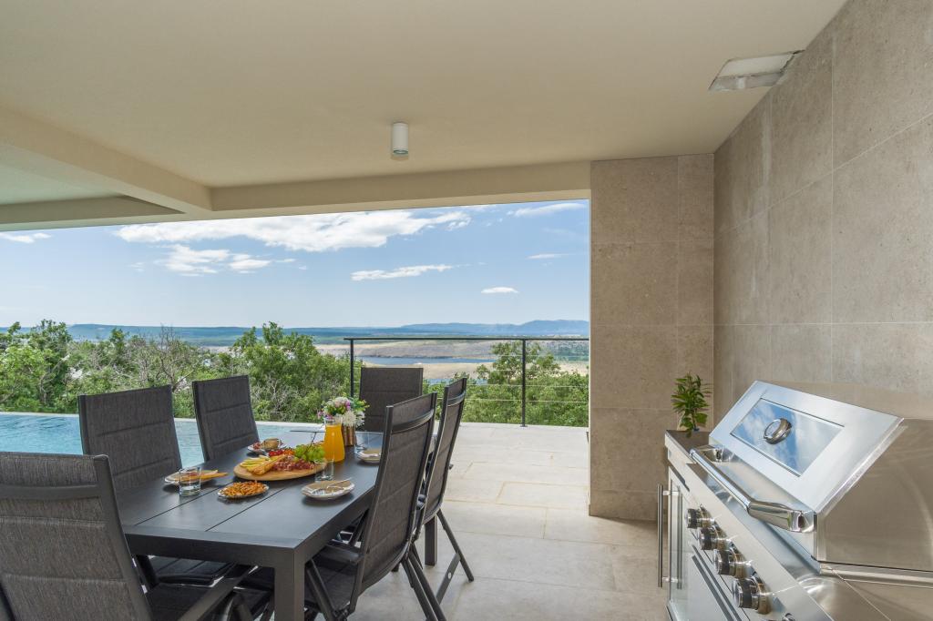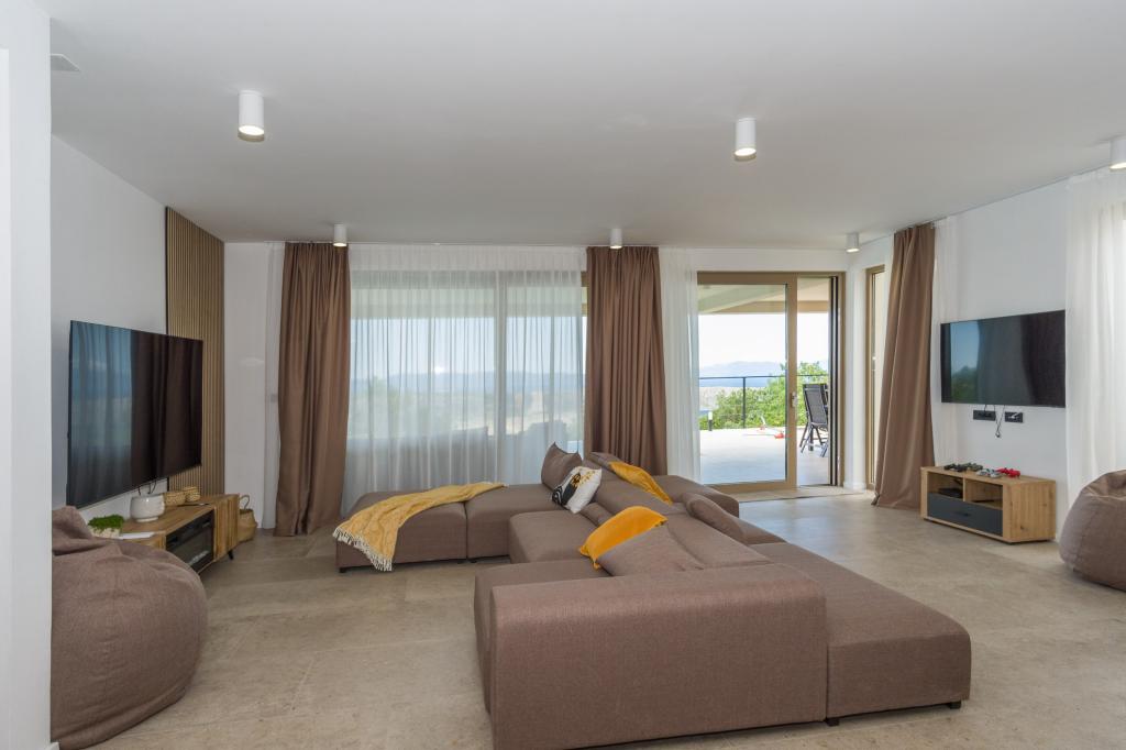Neu. In Šmrika, in der Nähe des Touristenortes Crikvenica, befindet sich eine voll ausgestattete neue Villa mit einem 9 x 4 m großen Pool. Die Villa liegt an einem ruhigen Ort und ist nicht einsehbar. Von jeder Ecke des Hauses hat man einen Blick auf das Meer, die Insel Krk, die Insel Cres, Istrien und von der Terrasse im ersten Stock auf Rijeka und Opatija. Die Villa verfügt über 3 große Schlafzimmer und ein Badezimmer in jedem Zimmer sowie ein großes Wohnzimmer mit Küche und Esszimmer. Neben dem Pool gibt es auch eine Außenküche mit Gasgrill. Damit den Kindern keine Langeweile aufkommt, gibt es eine Spielstation 4 und für die Kleinsten gibt es einen Spielplatz mit Häuschen und Rutsche. Erwachsene können im Fitnessstudio entspannen. Neben der Küche gibt es einen kleinen Garten mit Gewürzen, die zum Kochen verwendet werden können – Basilikum, Rosmarin, Kirschtomaten … Die Entfernung zum Sandstrand in Jadranovo beträgt 4 km. In nur 1 km Entfernung gibt es die Bura-Kartbahn und eine Eselsfarm, die für Kinder äußerst attraktiv ist.