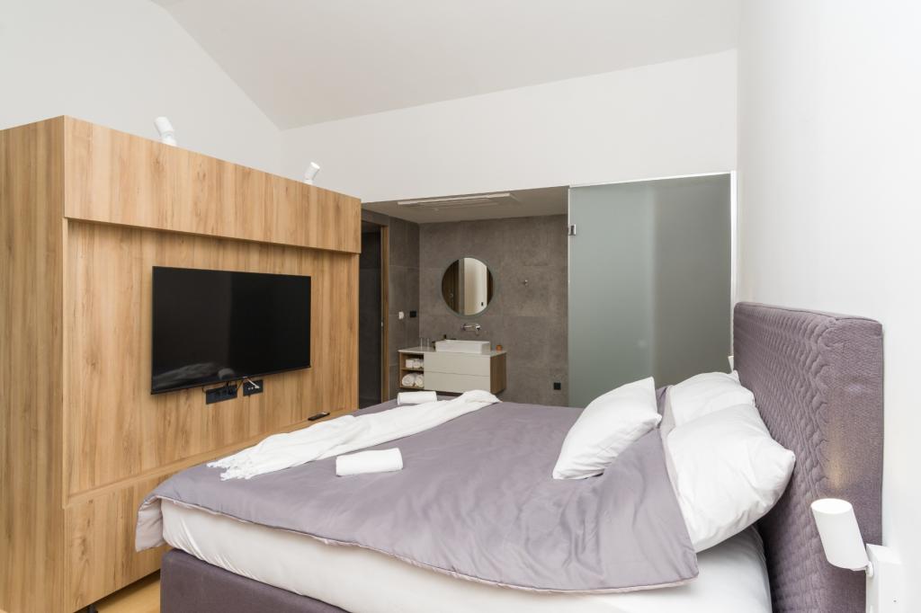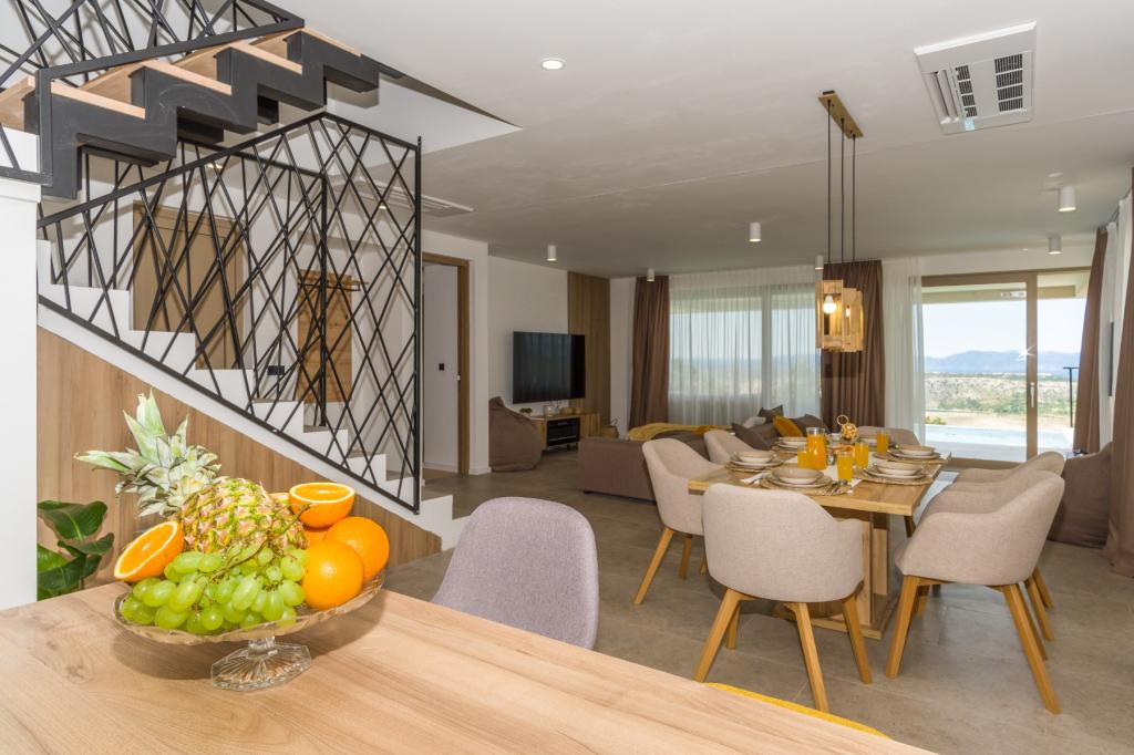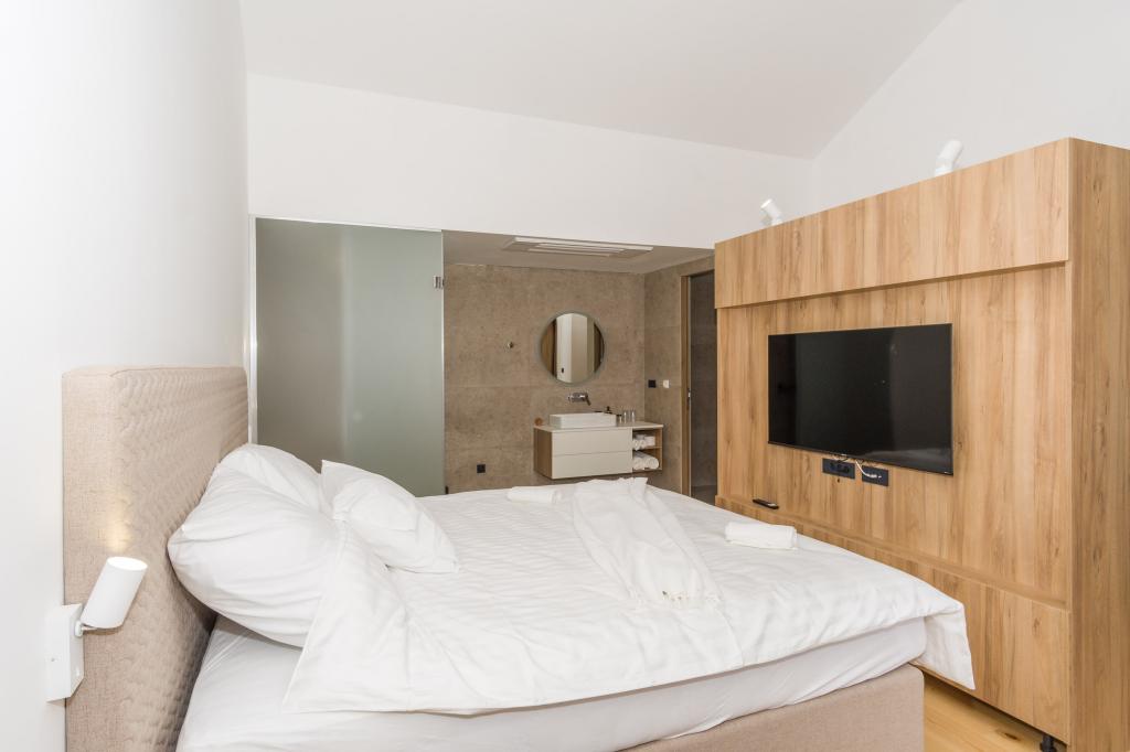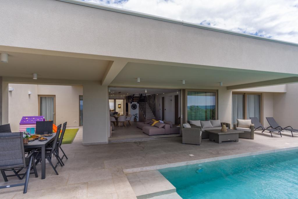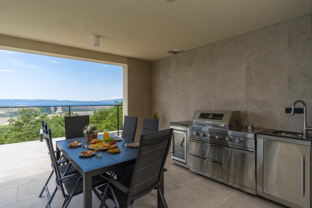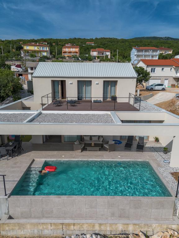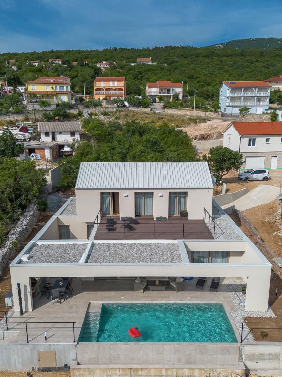 Neu. In Šmrika, in der Nähe des Touristenortes Crikvenica, befindet sich eine voll ausgestattete neue Villa mit einem 9 x 4 m großen Pool. Die Villa liegt an einem ruhigen Ort und ist nicht einsehbar. Von jeder Ecke des Hauses hat man einen Blick auf das Meer, die Insel Krk, die Insel Cres, Istrien und von der Terrasse im ersten Stock auf Rijeka und Opatija. Die Villa verfügt über 3 große Schlafzimmer und ein Badezimmer in jedem Zimmer sowie ein großes Wohnzimmer mit Küche und Esszimmer. Neben dem Pool gibt es auch eine Außenküche mit Gasgrill. Damit den Kindern keine Langeweile aufkommt, gibt es eine Spielstation 4 und für die Kleinsten gibt es einen Spielplatz mit Häuschen und Rutsche. Erwachsene können im Fitnessstudio entspannen. Neben der Küche gibt es einen kleinen Garten mit Gewürzen, die zum Kochen verwendet werden können – Basilikum, Rosmarin, Kirschtomaten … Die Entfernung zum Sandstrand in Jadranovo beträgt 4 km. In nur 1 km Entfernung gibt es die Bura-Kartbahn und eine Eselsfarm, die für Kinder äußerst attraktiv ist.