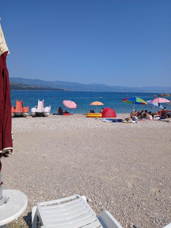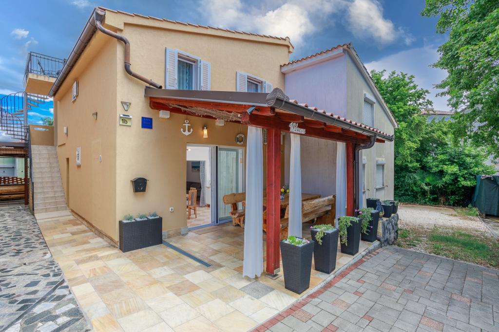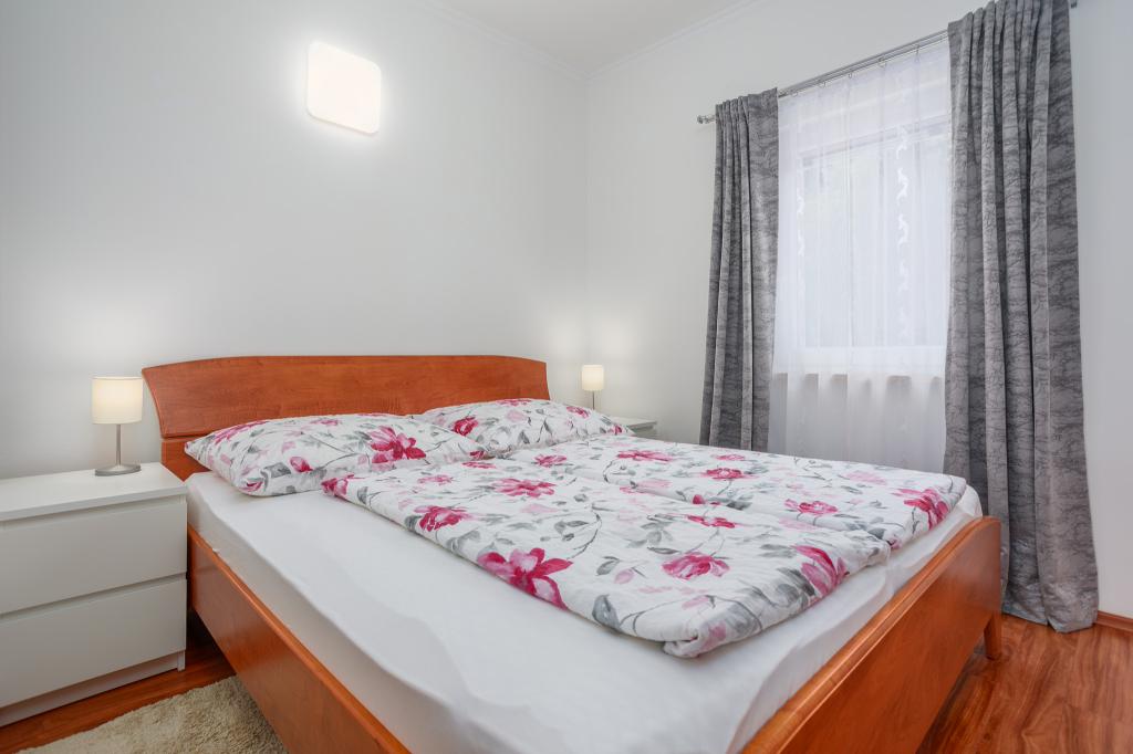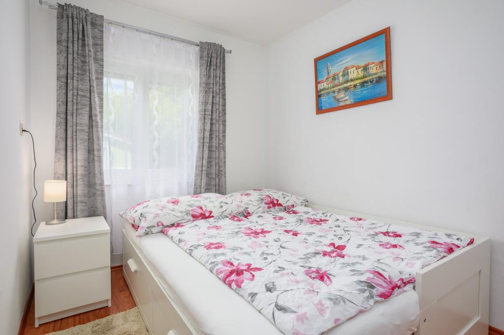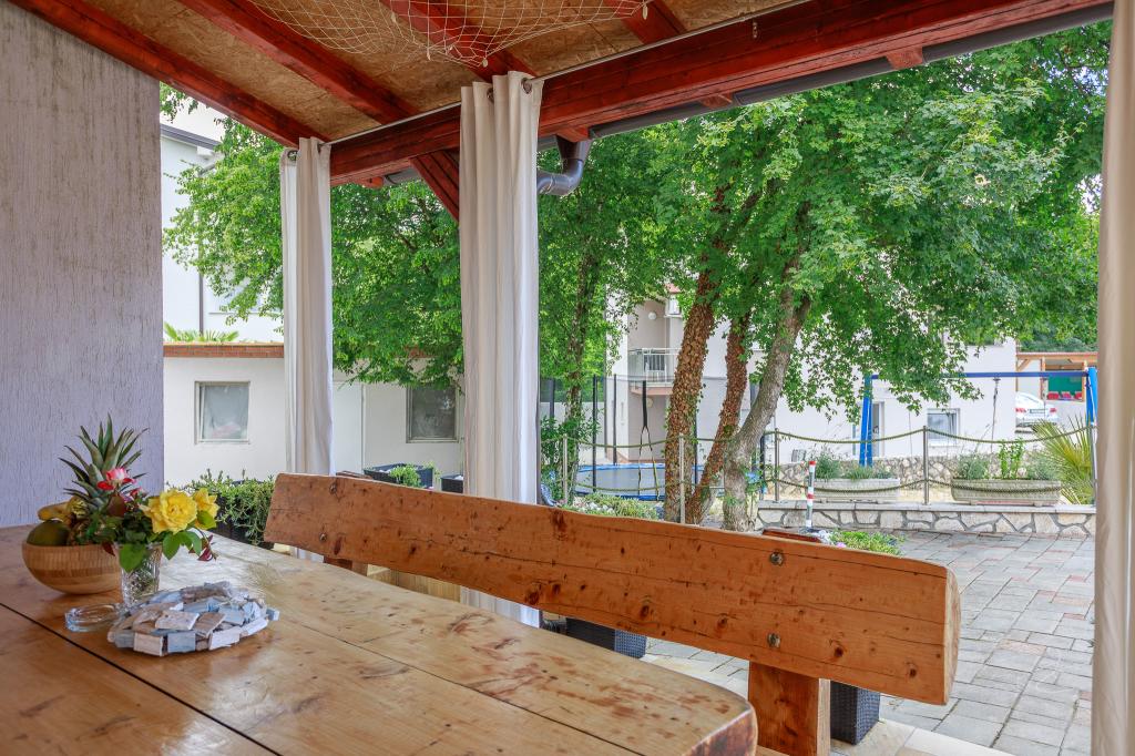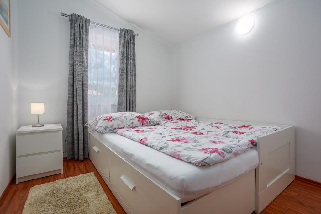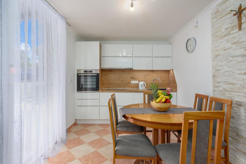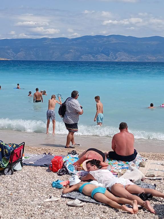 Wir laden Sie herzlich ein, Ihren Familienurlaub auf der Insel Krk im Ferienhaus Margareta zu verbringen. Wir bieten Ihnen ein komplett und modern ausgestattetes Haus für zwei Familien in zwei separaten Apartments, geeignet für 8 bis 10 Personen, auf einem 900 m² großen Grundstück. Unser Ferienhaus Margareta ist ein 4-Sterne-Haus und liegt 200 m über dem Meeresspiegel, nur zwei Minuten von der Bucht von Soline entfernt. Viele weitere Sehenswürdigkeiten der Insel Krk sind in wenigen Autominuten erreichbar. Das Haus verfügt über vier Schlafzimmer mit Doppelbetten, zwei Badezimmer/WCs und ein zusätzliches WC im Erdgeschoss, zwei Küchen und zwei Wohnzimmer mit Schlafcouch für ein bis zwei Personen. Außerdem bietet das Haus vier Terrassen, einen Grill und einen Kinderspielplatz mit Trampolin und Schaukel. Das Haus befindet sich in der Feriensiedlung Vila za odmor in Gornja Hlapa bei Soline, Gemeinde Dobrinj, auf der Insel Krk. Wir haben Parkplätze für fünf Autos im Hof. Es gibt außerdem eine wunderschöne Dachterrasse, die sich ideal für romantische Sonnenuntergänge und zum Sonnenbaden mit Blick auf die Kvarner-See eignet. Genießen Sie Krk.