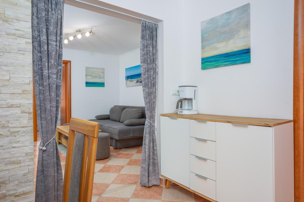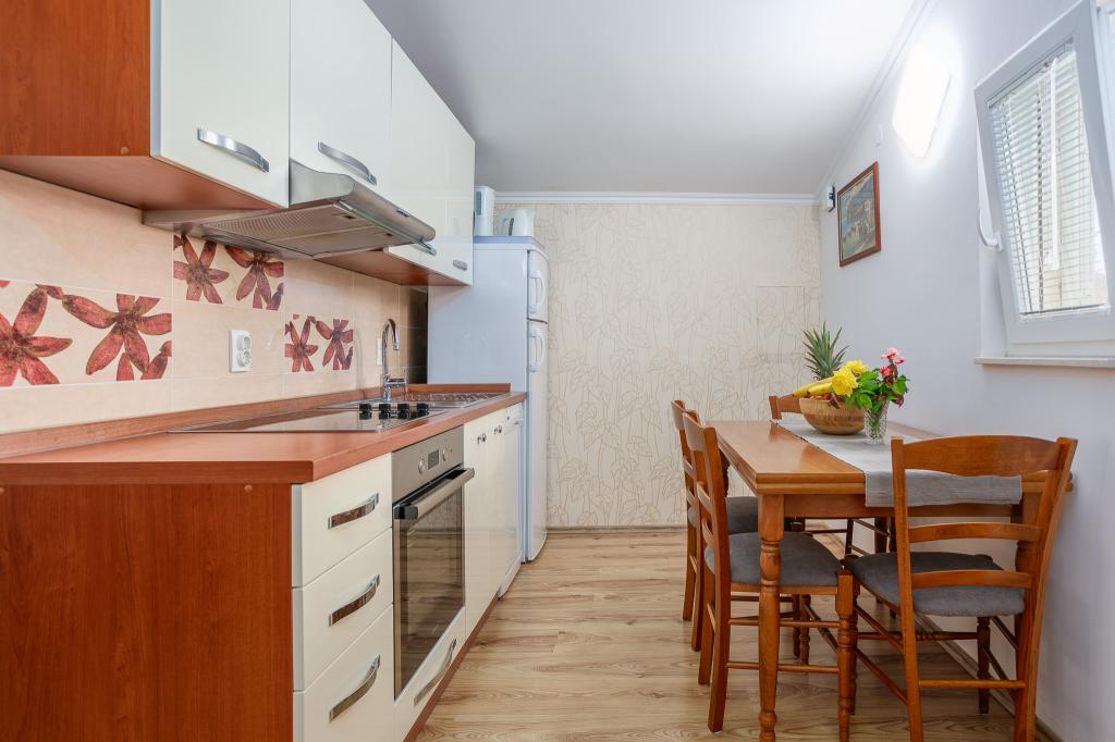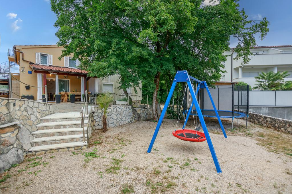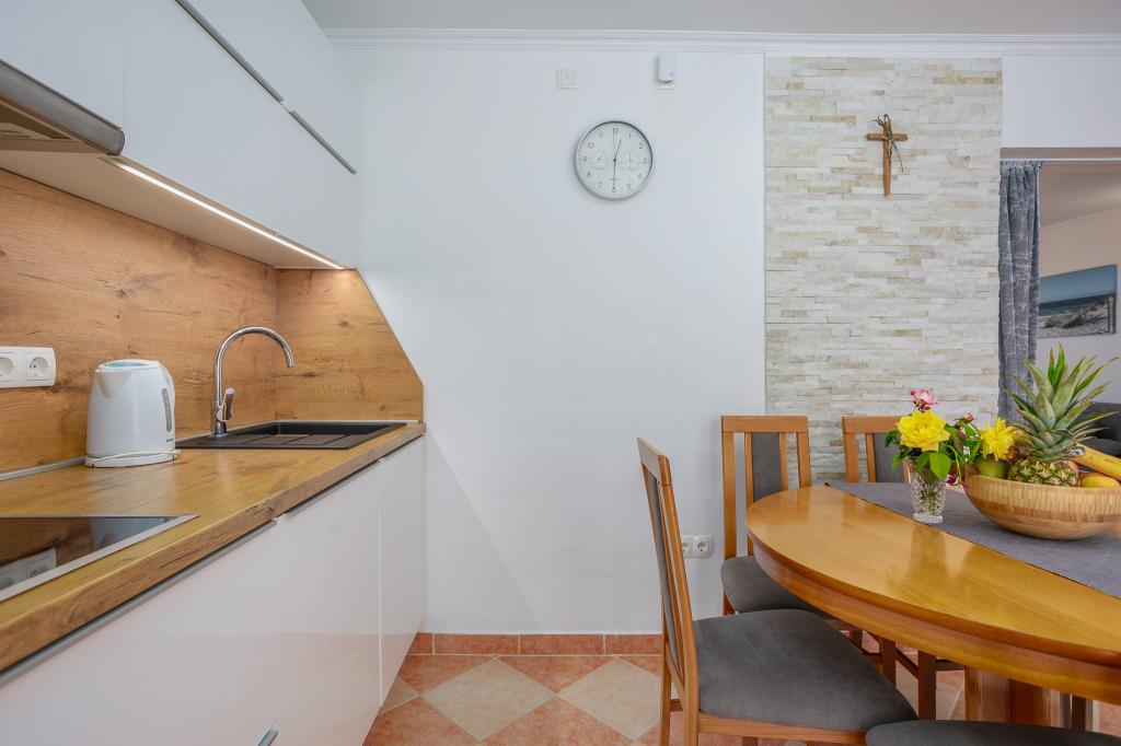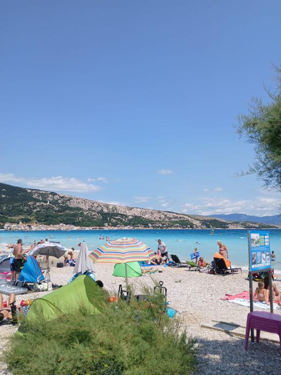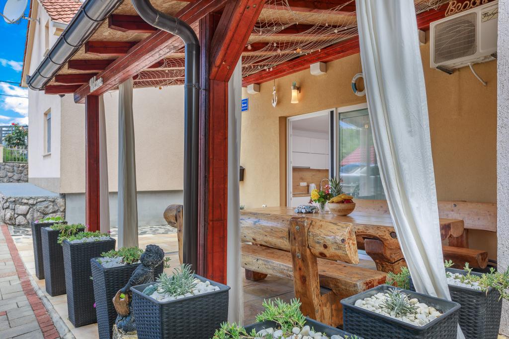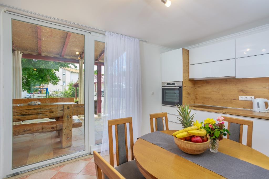 Wir laden Sie herzlich ein, Ihren Familienurlaub auf der Insel Krk im Ferienhaus Margareta zu verbringen. Wir bieten Ihnen ein komplett und modern ausgestattetes Haus für zwei Familien in zwei separaten Apartments, geeignet für 8 bis 10 Personen, auf einem 900 m² großen Grundstück. Unser Ferienhaus Margareta ist ein 4-Sterne-Haus und liegt 200 m über dem Meeresspiegel, nur zwei Minuten von der Bucht von Soline entfernt. Viele weitere Sehenswürdigkeiten der Insel Krk sind in wenigen Autominuten erreichbar. Das Haus verfügt über vier Schlafzimmer mit Doppelbetten, zwei Badezimmer/WCs und ein zusätzliches WC im Erdgeschoss, zwei Küchen und zwei Wohnzimmer mit Schlafcouch für ein bis zwei Personen. Außerdem bietet das Haus vier Terrassen, einen Grill und einen Kinderspielplatz mit Trampolin und Schaukel. Das Haus befindet sich in der Feriensiedlung Vila za odmor in Gornja Hlapa bei Soline, Gemeinde Dobrinj, auf der Insel Krk. Wir haben Parkplätze für fünf Autos im Hof. Es gibt außerdem eine wunderschöne Dachterrasse, die sich ideal für romantische Sonnenuntergänge und zum Sonnenbaden mit Blick auf die Kvarner-See eignet. Genießen Sie Krk.