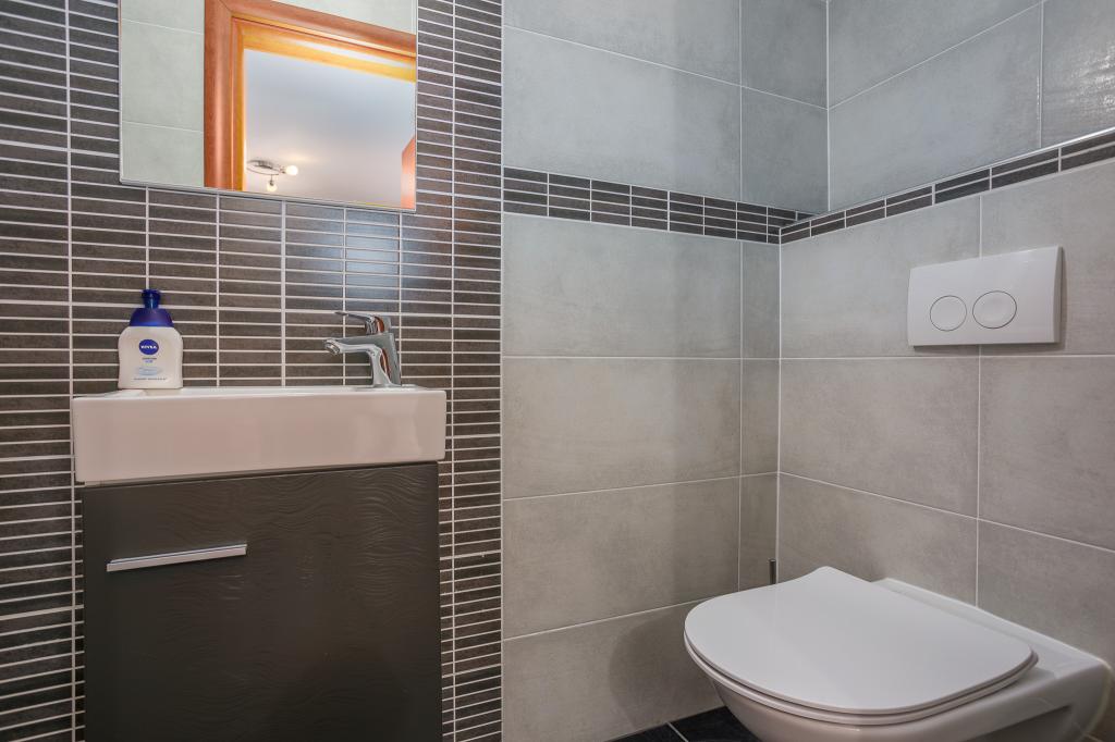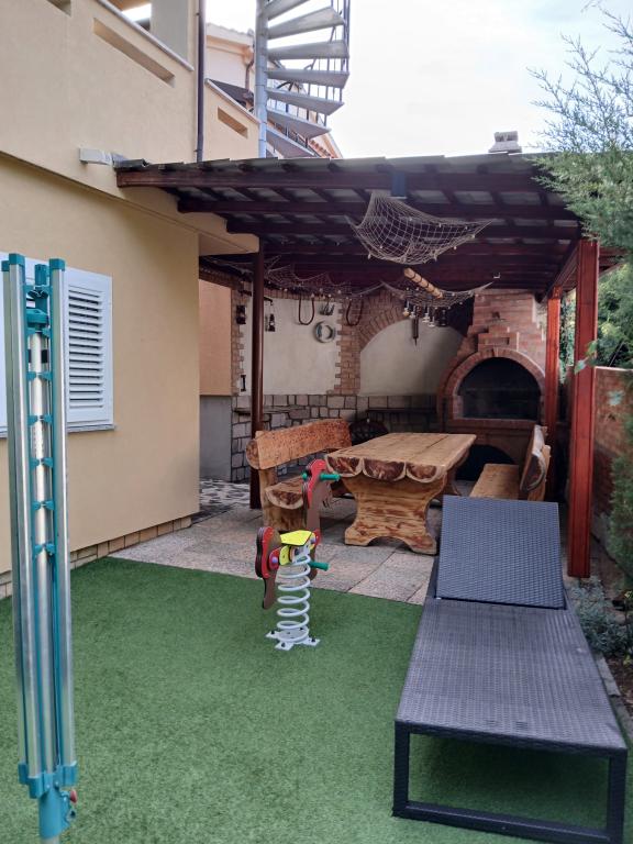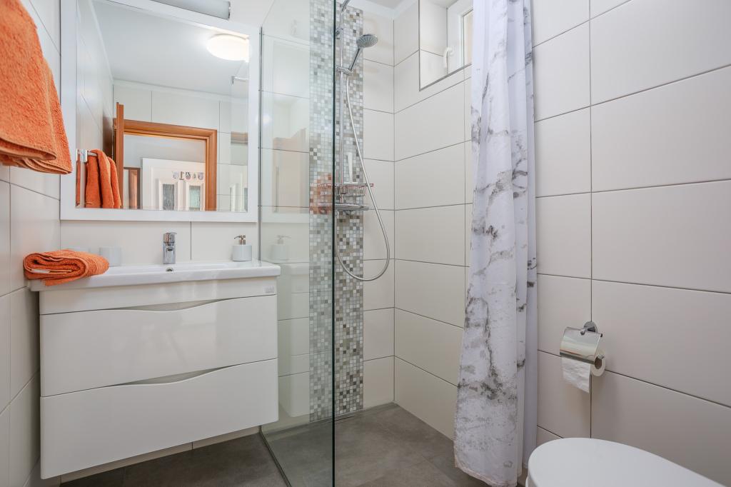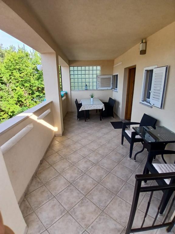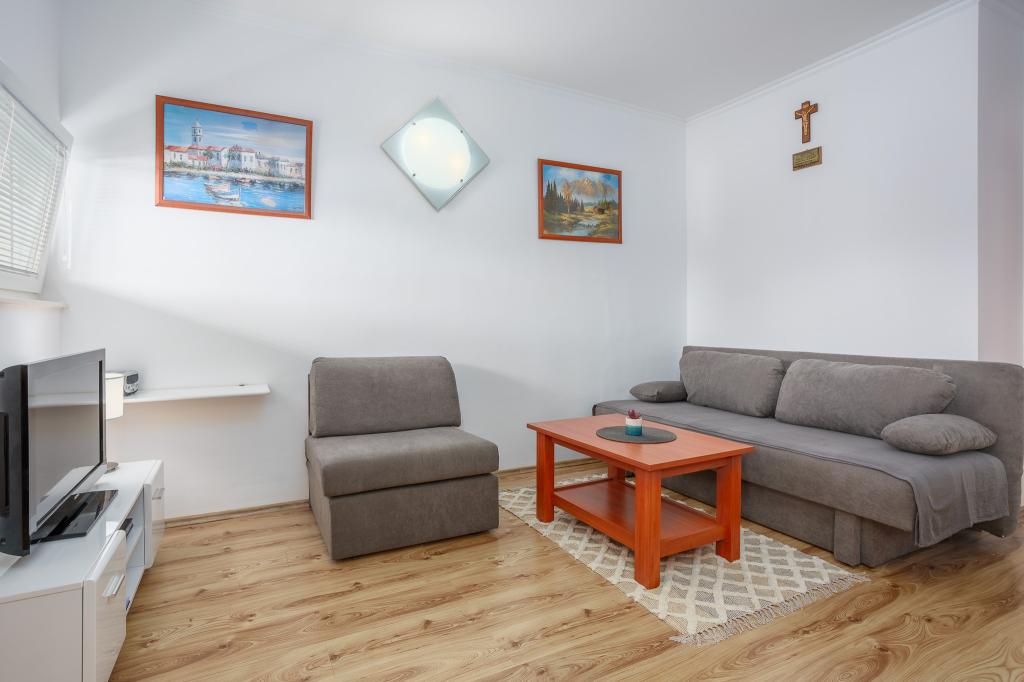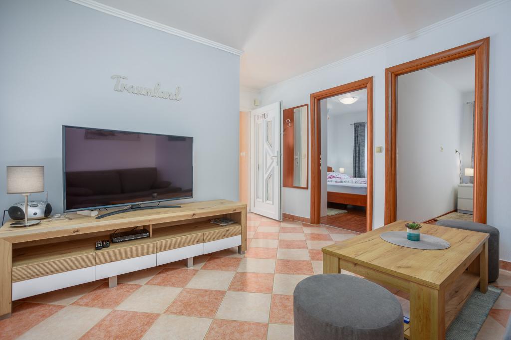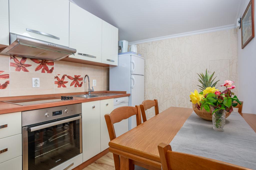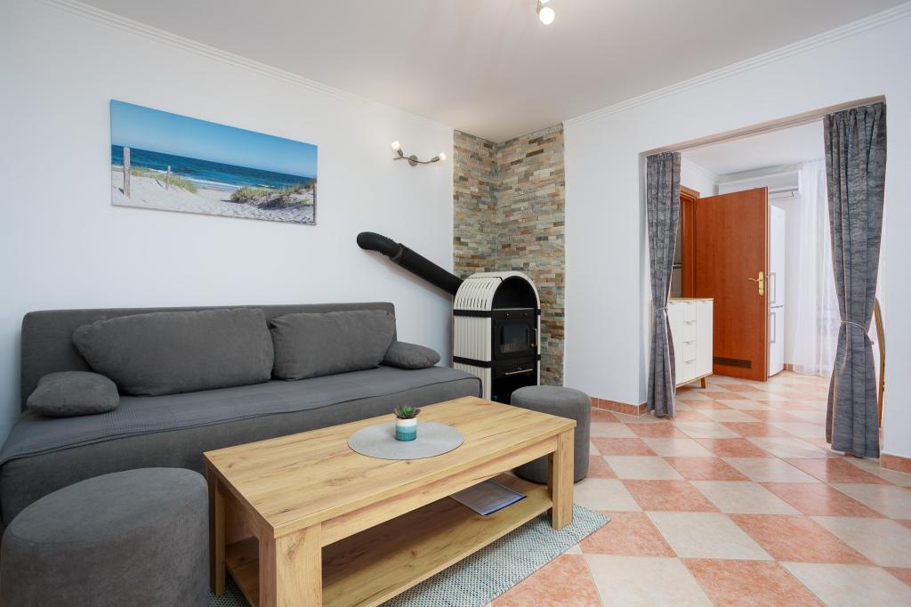 Wir laden Sie herzlich ein, Ihren Familienurlaub auf der Insel Krk im Ferienhaus Margareta zu verbringen. Wir bieten Ihnen ein komplett und modern ausgestattetes Haus für zwei Familien in zwei separaten Apartments, geeignet für 8 bis 10 Personen, auf einem 900 m² großen Grundstück. Unser Ferienhaus Margareta ist ein 4-Sterne-Haus und liegt 200 m über dem Meeresspiegel, nur zwei Minuten von der Bucht von Soline entfernt. Viele weitere Sehenswürdigkeiten der Insel Krk sind in wenigen Autominuten erreichbar. Das Haus verfügt über vier Schlafzimmer mit Doppelbetten, zwei Badezimmer/WCs und ein zusätzliches WC im Erdgeschoss, zwei Küchen und zwei Wohnzimmer mit Schlafcouch für ein bis zwei Personen. Außerdem bietet das Haus vier Terrassen, einen Grill und einen Kinderspielplatz mit Trampolin und Schaukel. Das Haus befindet sich in der Feriensiedlung Vila za odmor in Gornja Hlapa bei Soline, Gemeinde Dobrinj, auf der Insel Krk. Wir haben Parkplätze für fünf Autos im Hof. Es gibt außerdem eine wunderschöne Dachterrasse, die sich ideal für romantische Sonnenuntergänge und zum Sonnenbaden mit Blick auf die Kvarner-See eignet. Genießen Sie Krk.