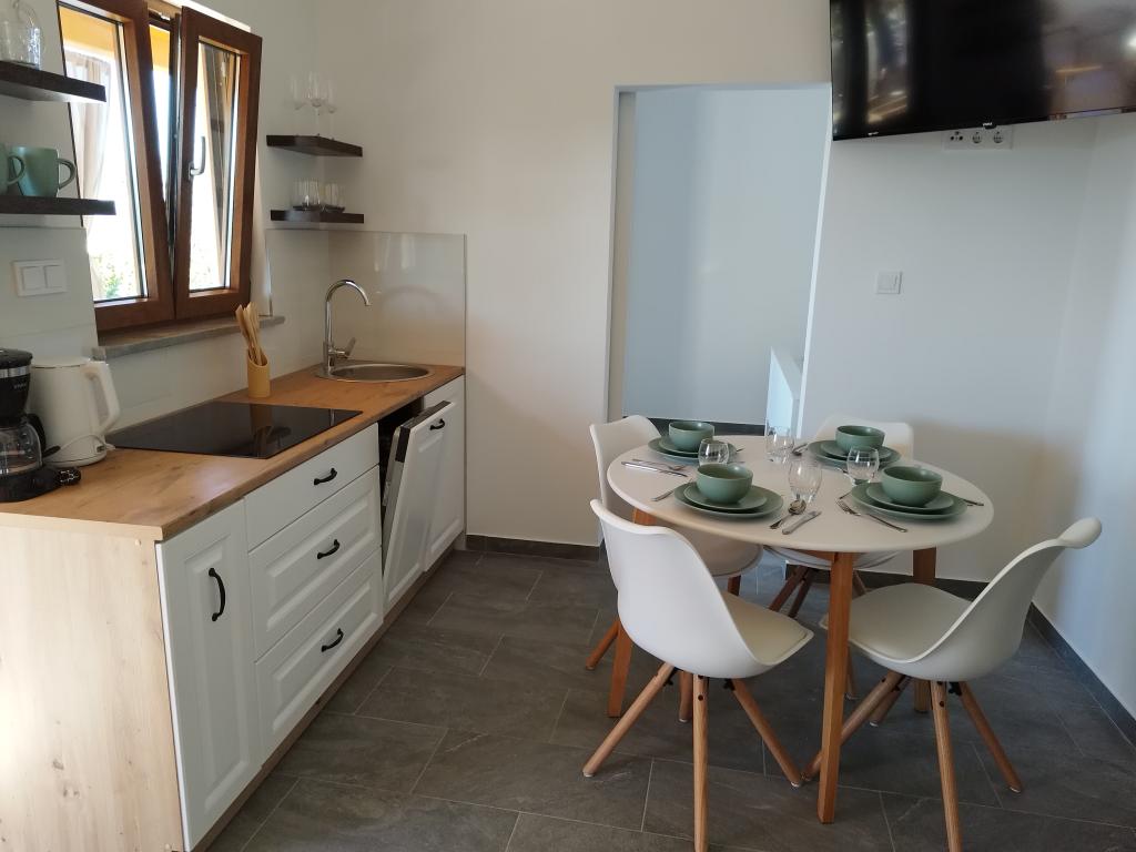 Willkommen im brandneuen, renovierten Ferienhaus „Stipe“ auf einem ruhigen Hügel oberhalb von Lopar – der perfekte Ort zum Entspannen, fernab vom sommerlichen Trubel und doch in unmittelbarer Nähe zu allem. Gönnen Sie sich eine Auszeit und erholen Sie sich. Dieses charmante, frisch renovierte Haus bietet auf 45 m² Wohnfläche zwei komfortable Schlafzimmer, ein elegantes Badezimmer und eine modern ausgestattete Küche mit Geschirrspüler, Mikrowelle, Kühlschrank und allen notwendigen Utensilien. Ess- und Wohnzimmer mit Fernseher laden zum gemütlichen Beisammensein ein. Alle Zimmer sind klimatisiert. Vor dem Haus befindet sich eine großzügige, überdachte Steinterrasse (70 m²) mit Esstisch, Sitzgelegenheiten und Grill – der ideale Ort für den Morgenkaffee, ein ausgiebiges Frühstück, ein gutes Buch oder gesellige Abende bei Sonnenuntergang.