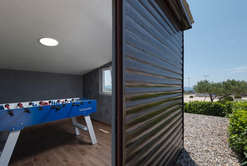 Kurtaxe ist im Preis inbegriffen.Swimmingpool (32 m2), Whirlpool, Sauna (finnische Sauna), 2 Außenduschen, Padelplatz, Basketballplatz, Bocciabahn, Minigolf, Fitnessraum im Freien, Tischtennis, Tischfußball, Darts, Billard, Kinderspielplatz, 2 Außenkamine, Weinkeller, Sommerküche im Freien und Bar im Freien. Zusätzlich zu den Einrichtungen bieten wir unseren Gästen Begrüßungsgetränke und Geschenke.