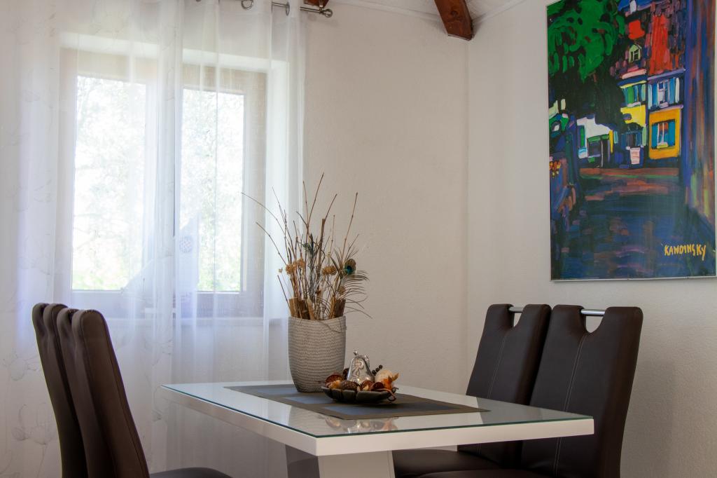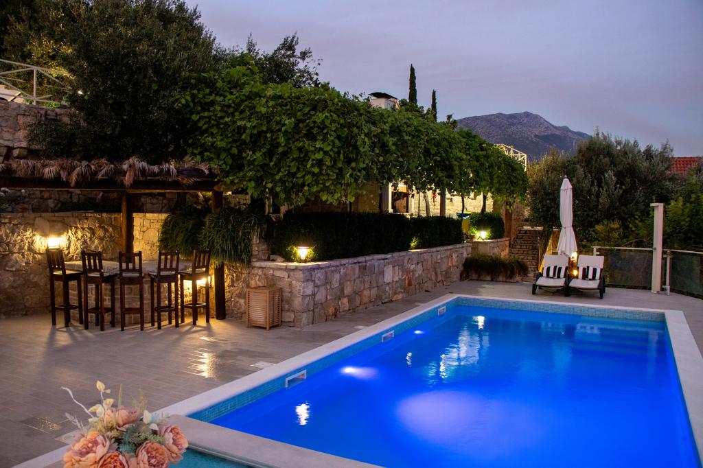 Die Stille und Atmosphäre des Mittelmeers, wie es einst war, Intimität und Einfachheit gepaart mit unprätentiösem Luxus finden Sie im alten Dorf Stanković, das im 15. Jahrhundert oberhalb von Orebić erbaut wurde. Dunkles Holz in Kombination mit weißem Stein, alten hellgrünen Schindeltönen und luxuriösem Interieur lassen die Gäste nicht gleichgültig. Das gesamte Grundstück von 2000 m² ist ideal für einen ruhigen Familienurlaub und den Kontakt mit Familie und Freunden. Es besteht aus: 3 Häusern - Azur, Wood, Ston. Villa Azur – 4 Personen. (2 x Schlafzimmer) Gemeinschaftsbereich des Anwesens: Außenpool, Whirlpool mit Wasserfall, Playstation-Raum, Fitnessraum, Kinderpark und viel Schatten für die Nachmittagssiesta. Fernseher, Klimaanlagen, Geschirrspüler und andere Geräte sorgen dafür, dass Sie sich wie zu Hause fühlen. AZUR-HAUS - 4 PERSONEN!! Das Dorf Stanković ist ein idealer Ausgangspunkt für die Erkundung der Insel oder Sie können bei einem Spaziergang in der Natur mit Blick auf das Meer, das nach mediterraner Vegetation duftet, entspannen. Sie sind nur 15 Minuten von der Stadt und dem Strand entfernt, während Sie unseren verborgenen Schatz genießen.