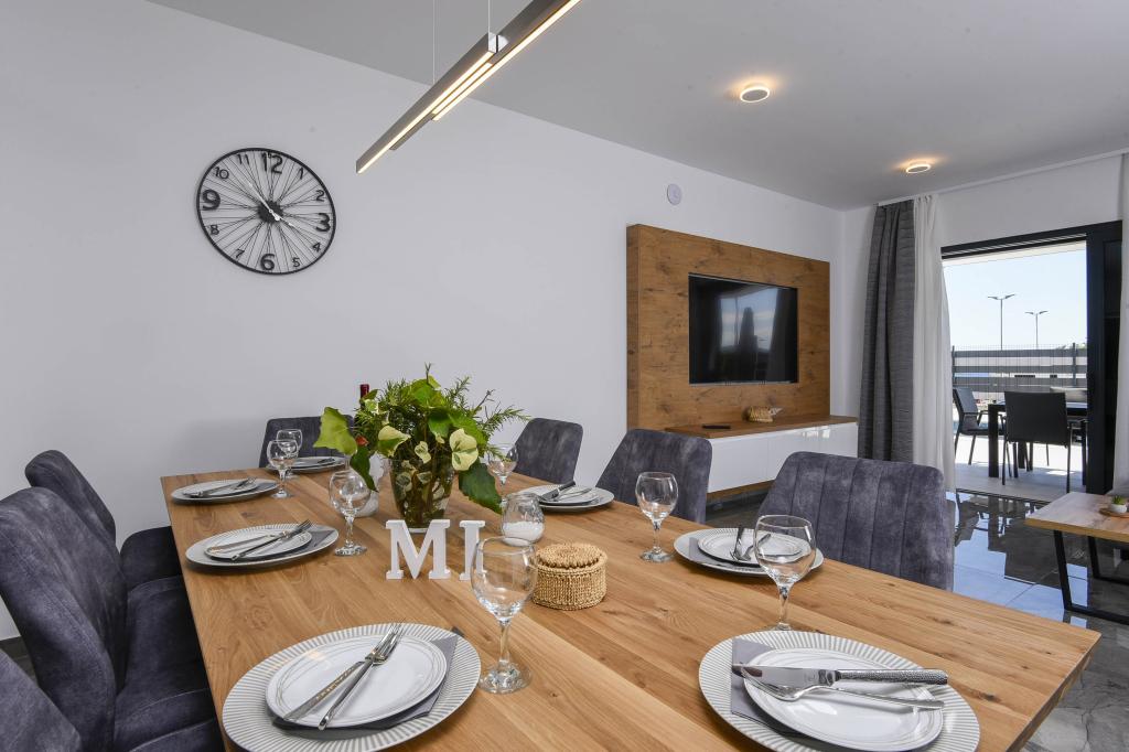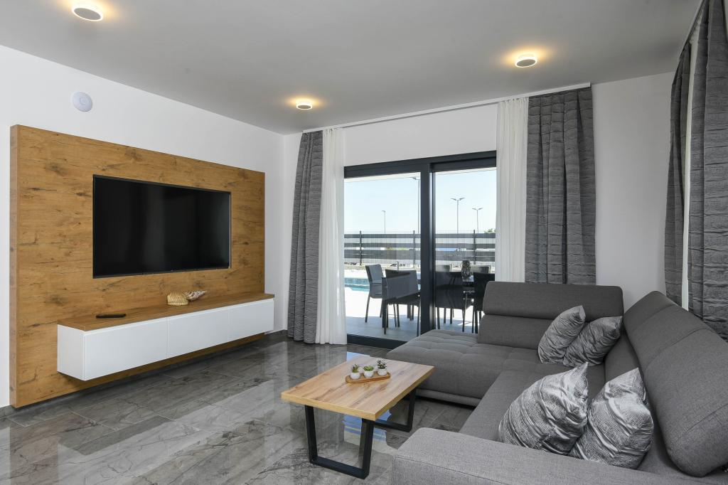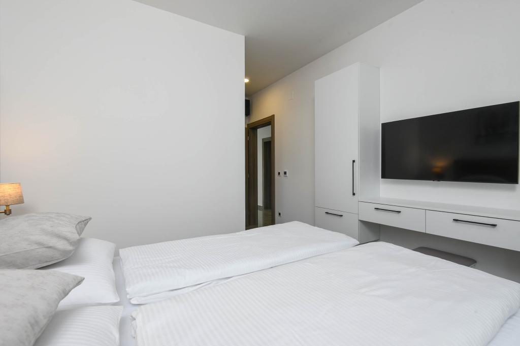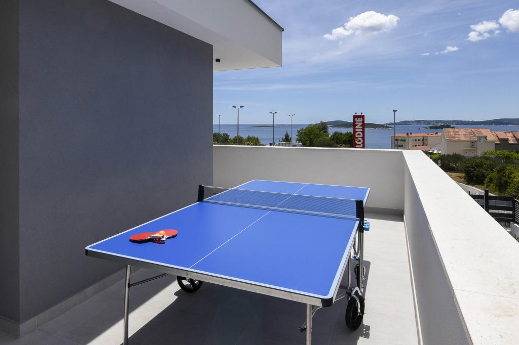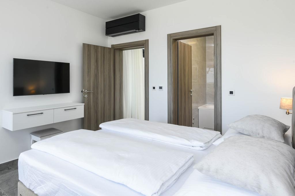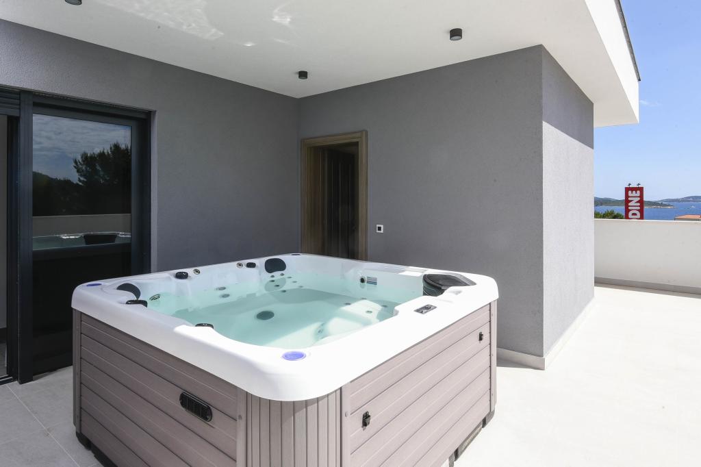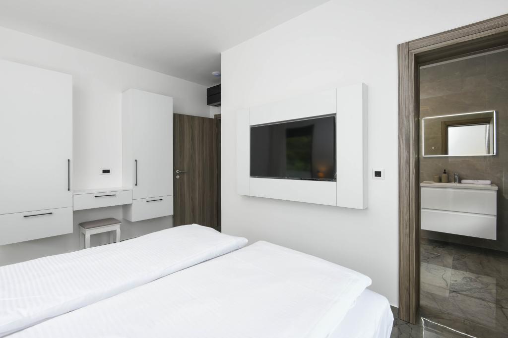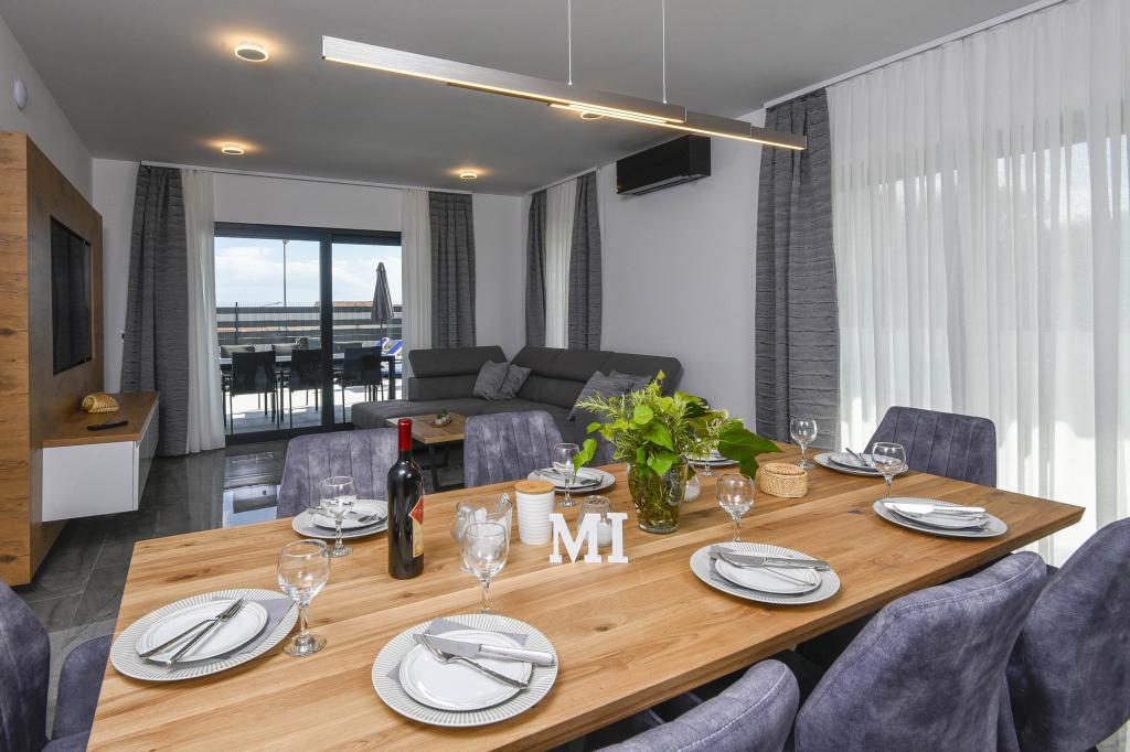 Dieses Haus bietet ein zusätzliches Maß an Luxus, z. B. in Form von mehr Platz und Komfort, Innenarchitektur oder -stil, Architektur, Ausstattung oder Erlebnissen. Dieses elegante Ferienhaus mit privatem Pool befindet sich in ausgezeichneter Lage. Es liegt in der Nähe des wunderschönen Strandes Trstenica mit feinem Sand und Kieselsteinen. Im Erdgeschoss befinden sich eine große Küche und ein Wohnzimmer, ein Schlafzimmer mit eigenem Bad und einem zusätzlichen Badezimmer, eine Waschküche und eine Doppelgarage. Eine Innentreppe führt in die 1. Etage, wo sich drei weitere Schlafzimmer mit Badezimmern und ein Arbeitszimmer (Büro) befinden. Jedes Schlafzimmer führt auf einen schönen Balkon mit herrlichem Blick auf das Meer. Draußen können Sie sich im Pool abkühlen, im eigenen Whirlpool und in der Sauna entspannen, während sich die Kinder auf dem Spielplatz vergnügen. Im Keller gibt es einen Fitnessraum und einen Aufenthaltsraum. Orebić ist ein kleiner Ort, aber groß genug, um Ihnen von Restaurants bis zu Geschäften alles zu bieten, was Sie im Urlaub brauchen. Sie können auch Tagesausflüge nach Dubrovnik und auf die Insel Korčula unternehmen.