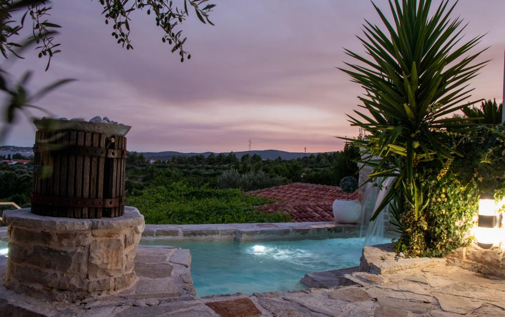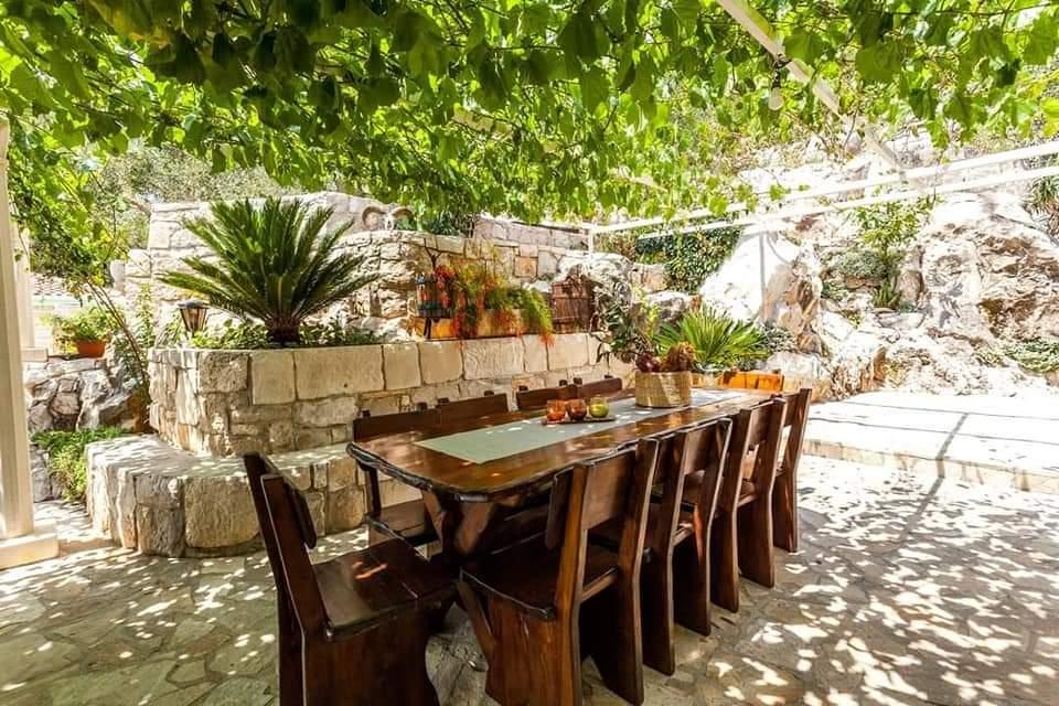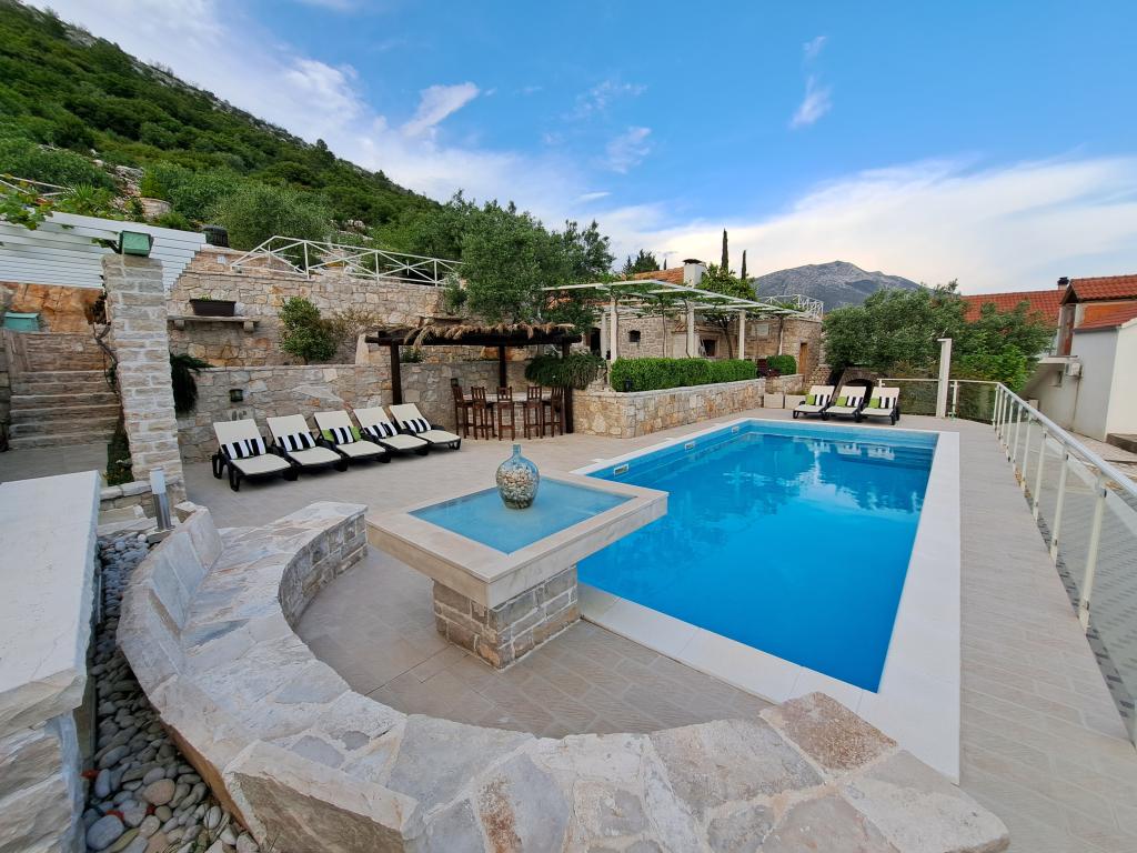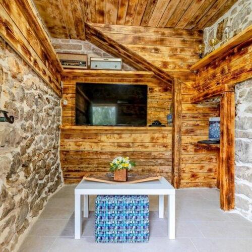 Die Stille und Atmosphäre des Mittelmeers, wie es einst war, Intimität und Einfachheit gepaart mit unprätentiösem Luxus finden Sie im alten Dorf Stanković, das im 15. Jahrhundert oberhalb von Orebić erbaut wurde. Dunkles Holz in Kombination mit weißem Stein, alten hellgrünen Schindeltönen und luxuriösem Interieur lassen die Gäste nicht gleichgültig. Die Villa bietet Platz für 14 Personen und bietet einen Außenpool, einen Whirlpool mit Wasserfall, einen Playstation-Raum, einen Fitnessraum, einen Kinderpark, einen Außengrill und viel Schatten für eine Nachmittagssiesta. Das gesamte Grundstück von 2000 m² ist ideal für einen ruhigen Familienurlaub und den Kontakt mit Familie und Freunden. Es besteht aus: 3 Häusern - Azur, Wood, Ston. Insgesamt 7 Schlafzimmer. Fernseher, Klimaanlagen, Geschirrspüler und andere Geräte sorgen dafür, dass Sie sich wie zu Hause fühlen. HOLZHAUS-4 PERSONEN!! Das Dorf Stanković ist ein idealer Ausgangspunkt für die Erkundung der Insel oder Sie können bei einem Spaziergang in der Natur mit Blick auf das Meer, das nach mediterraner Vegetation duftet, entspannen. Sie sind nur 15 Minuten von der Stadt und dem Strand entfernt, während Sie unseren verborgenen Schatz genießen.