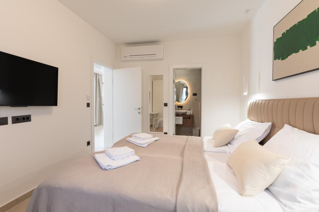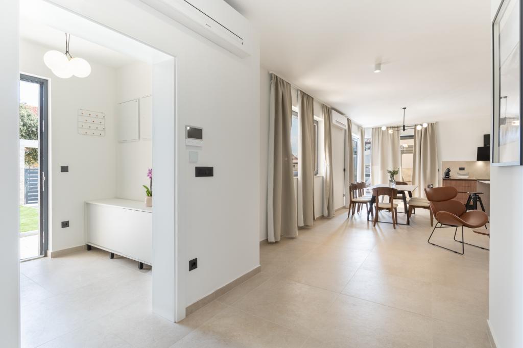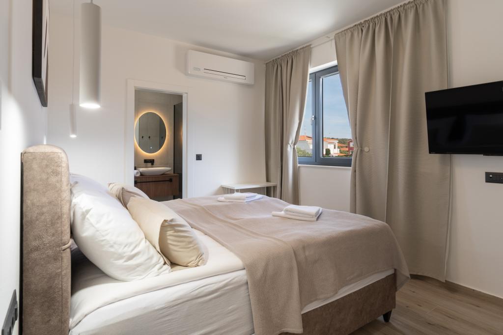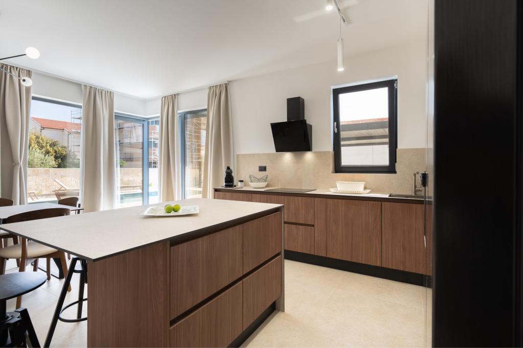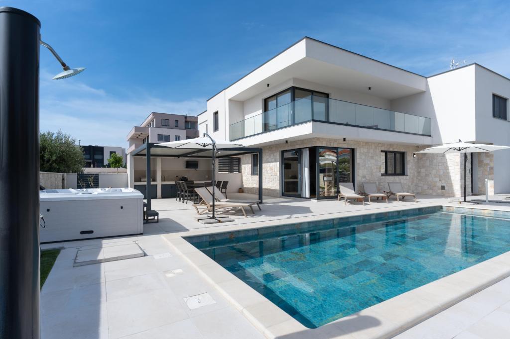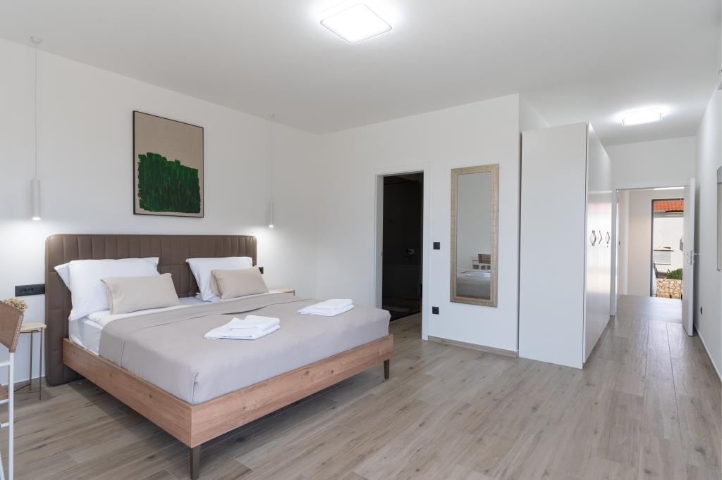 Die Besonderheiten dieser Villa sind ein privater beheizter Pool, ein Whirlpool und eine großzügige Sommerterrasse. Die Prestige Villa COMPADRE liegt im ruhigen Küstendorf Mandre auf der Insel Pag und bietet 4 modern eingerichtete Schlafzimmer und 4 Badezimmer mit Dusche. Die voll ausgestattete Küche verfügt über Herd, Kühlschrank, Geschirrspüler, Backofen und alle notwendigen Küchenutensilien. Die Gäste können den Außengrill nutzen, sich auf der gemütlichen Sitzecke entspannen oder am Pool und Whirlpool relaxen. Die klimatisierte Villa bietet zusätzlich einen Flachbild-TV, eine Waschmaschine, einen eigenen Eingang, eine Minibar und Gartenblick. Diese Villa ist ideal für Familien oder Gruppen und vereint Luxus und Komfort auf 230 m² eleganter Wohnfläche.