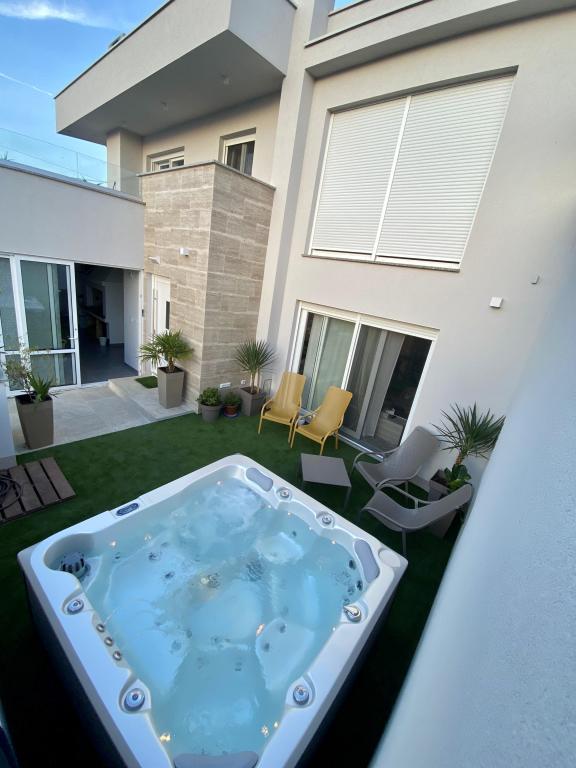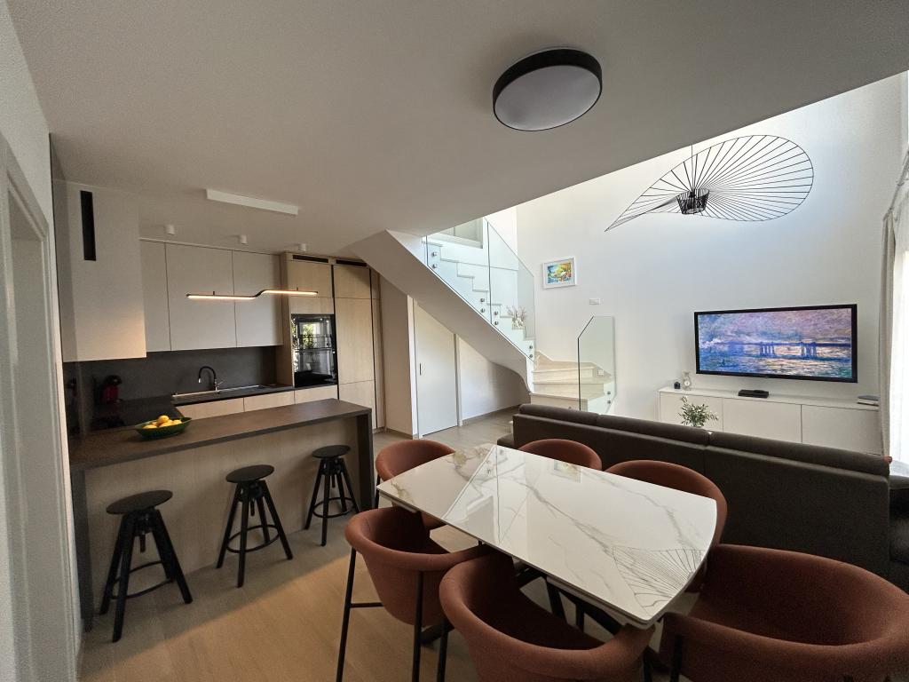 Elegante Villa mit 3 Schlafzimmern, privatem Whirlpool, großzügiger Terrasse mit traumhaftem Meerblick und überdachter Grillecke zum Entspannen und geselligen Beisammensein. Modern ausgestattete Küche, komfortables Wohnzimmer, schnelles WLAN und sicherer Parkplatz. Der ideale Ort für einen unbeschwerten und luxuriösen Urlaub in ruhiger Umgebung, strandnah und mit guter Anbindung an alle Annehmlichkeiten.