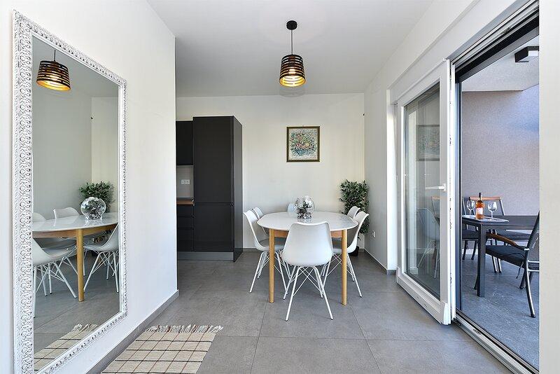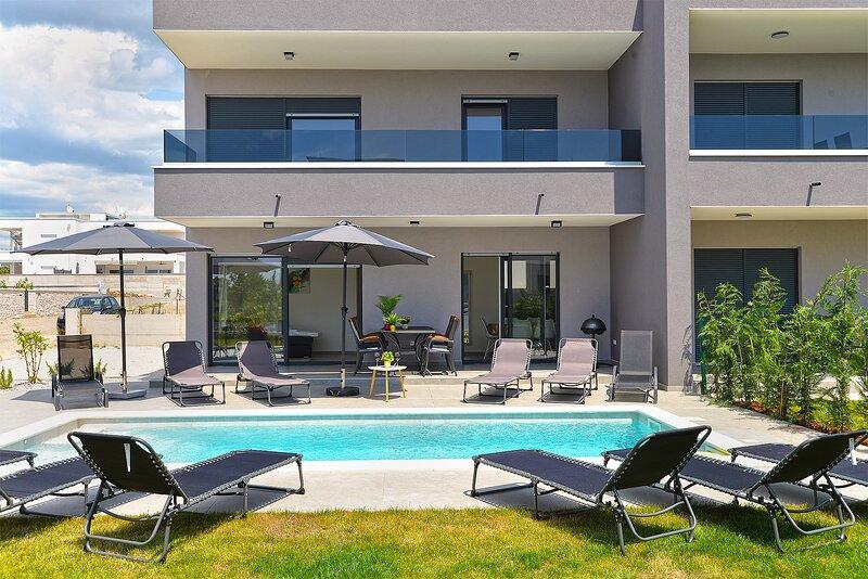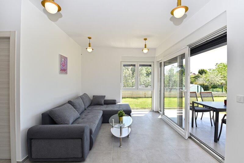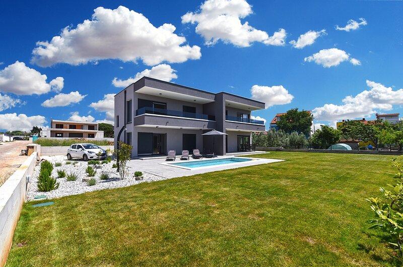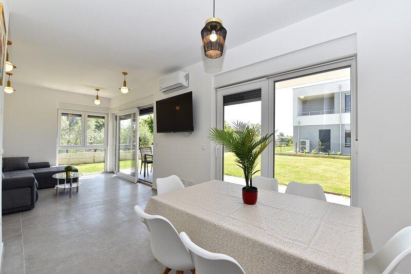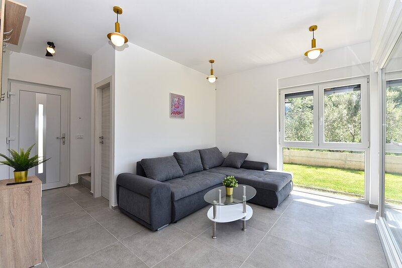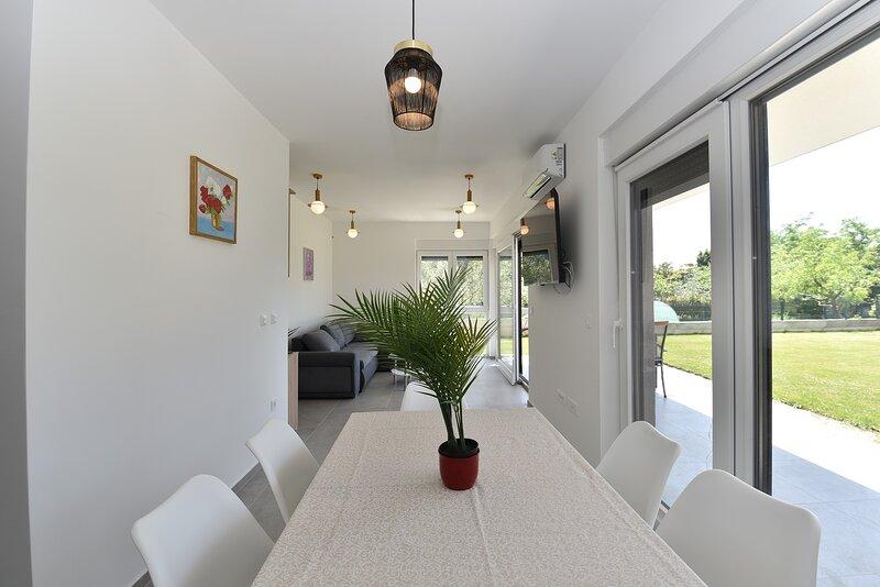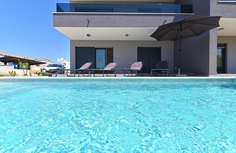 Die Villa Lippa mit Meerblick begrüßt Sie im ruhigen Dorf Peroj, in der Nähe von Pula und dem Nationalpark Brijuni. Diese modern gestaltete Villa ist perfekt für einen erholsamen Familienurlaub. Der Außenbereich lädt zum Erfrischen auf der überdachten Terrasse und zum Genießen des beheizten Pools im Sommer und in der Vorsaison ein. Die Villa bietet komfortable Unterkunft für bis zu 12 Personen in 4 Schlafzimmern. Die Villa Lippa Peroj begrüßt Sie mit einer Platte mit istrischen Fleischspezialitäten und frisch gegrilltem Fisch – siehe die Kategorie „Zusätzliche Bilder“. Die Villa Lippa in Peroj, in der Nähe von Pula und dem bezaubernden Nationalpark Brijuni, ist eine moderne und wunderschön gestaltete Villa, die den perfekten Rahmen für einen erholsamen Familienurlaub mit herrlichem Blick auf die Adria bietet. Komfort und Stil für die ganze Familie Die Villa Lippa wurde konzipiert, um bis zu 12 Gästen maximalen Komfort und Entspannung zu bieten. Mit ihrem zeitgenössischen Design und den sorgfältig ausgewählten Annehmlichkeiten ist sie ideal für Familien oder Gruppen von Freunden, die eine ruhige Umgebung genießen möchten.
