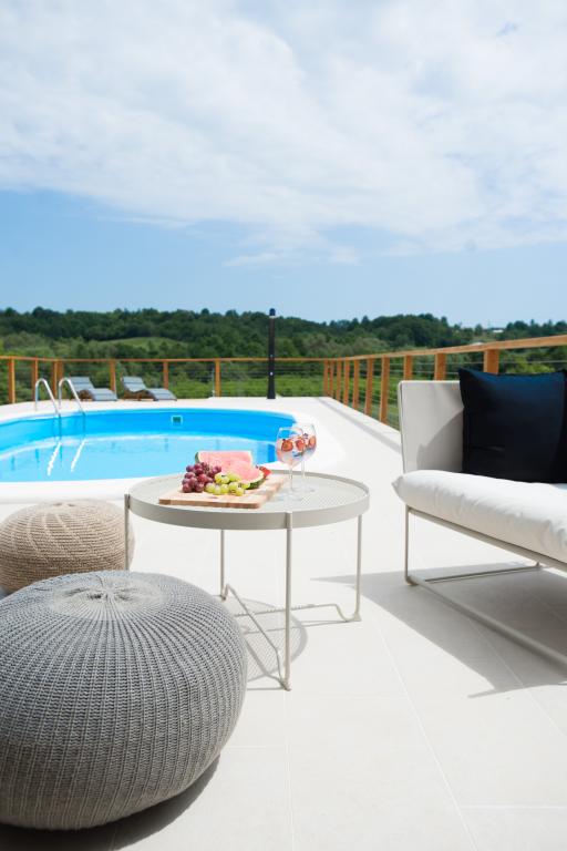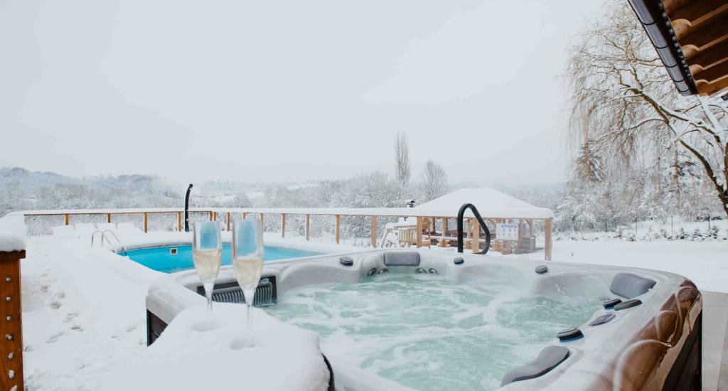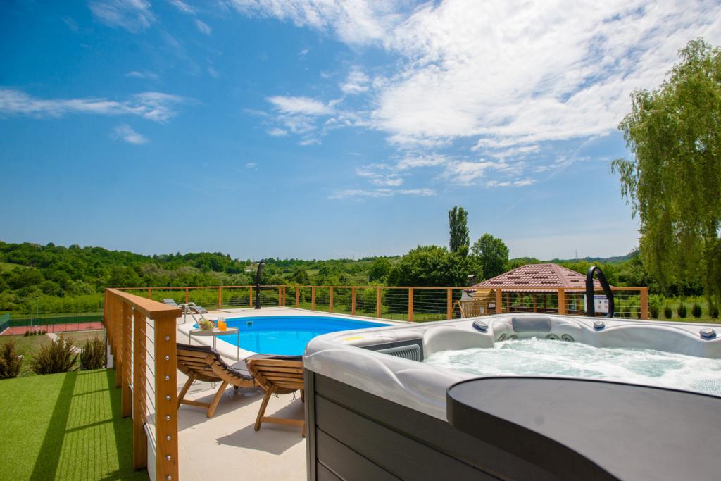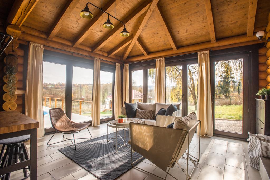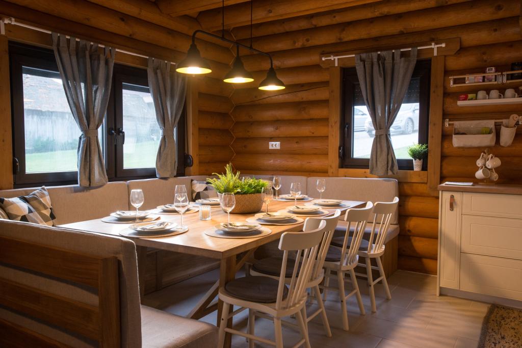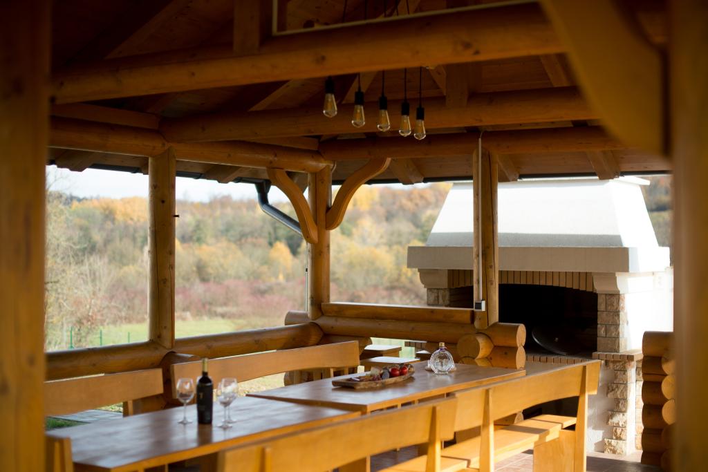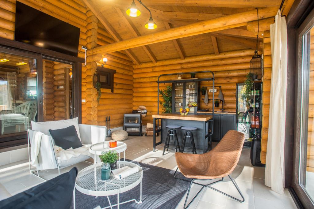 Holzhaus aus sibirischer Kiefer. Haus: max. Betten 10, Haus 108 m2, Terrasse mit Pool 105 m2, Sauna, Whirlpool, Pavillon 30 m2. Garten über 7.000 m2, Parkplatz, Wohnzimmer mit Küche, 3 Schlafzimmer, Badezimmer mit Dusche und WC. Geschlossene Terrasse mit Kamin, Tennisplatz für Geselligkeit und Sport, Umkleideraum mit Dusche und WC, Pavillon mit Grill, Angelrute und notwendiger Ausrüstung. Kinderspielplatz, 4 Fernseher, Dart.