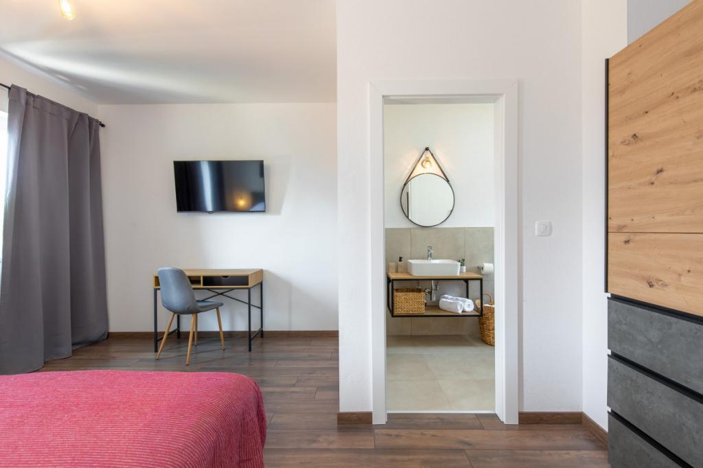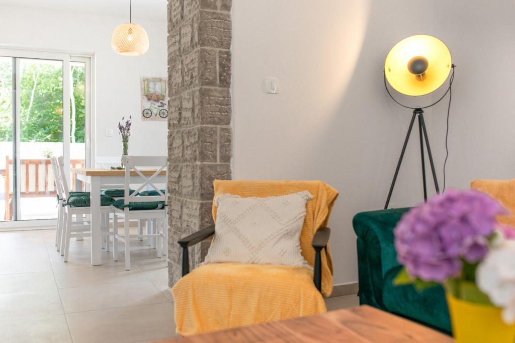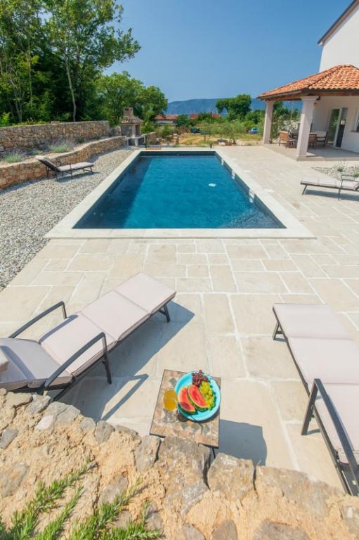 Die Villa Albina liegt in einer ruhigen ländlichen Gegend in Skrpčići auf der Insel Krk, ganz in der Nähe der Stadt Krk. Einzigartig, renoviert, um seine Authentizität zu bewahren, mit vielen rustikalen Details. Das Haus bietet eine sehr romantische, warme und angenehme Atmosphäre. Diese Unterkunft ist ideal, wenn Sie Ihren Urlaub in einer natürlichen und erholsamen Umgebung verbringen möchten. Genießen Sie den schönen 10x4-Pool und den geräumigen Innenraum der Unterkunft, im ersten Stock zwei geräumige Schlafzimmer mit eigenem Bad und Balkon, ein großes Wohnzimmer und eine komplette Küche mit allen Geräten. Alle Räume im Haus sind klimatisiert und verfügen über kostenfreies Internet, zwei Terrassen und einen weitläufigen, nicht einsehbaren Garten mit mediterranen Kräutern und Oliven.
