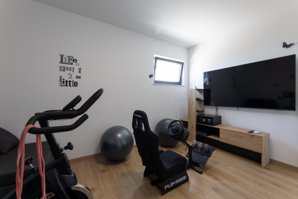 Gäste werden mit kalten Getränken, Obst, Süßigkeiten für Kinder und Eis begrüßt. Als kleines Dankeschön erhält jeder Gast ein Willkommensgeschenk. Bei schlechtem Wetter steht den Gästen während ihres Aufenthalts ein Spielzimmer mit Spielkonsole, Spielstuhl und den Spielen FIFA und Gran Turismo 7 zur Verfügung. Außerdem gibt es einen kleinen Fitnessraum mit Ergometer, Hanteln und Pilatesbällen. Eine Infrarotsauna kann ebenfalls genutzt werden. Der Pool ist beheizt und mit Hydromassagedüsen, Wasserfall und Gegenstromanlage ausgestattet. Die Poolnutzung ist vom 18.04.2026 bis zum 15.10.2026 möglich. Die Wassertemperatur beträgt mindestens 24 °C. Für gesellige Abende steht ein großer Gartengrill bereit. Für Kleinkinder sind ein Kinderbett und ein Hochstuhl vorhanden.