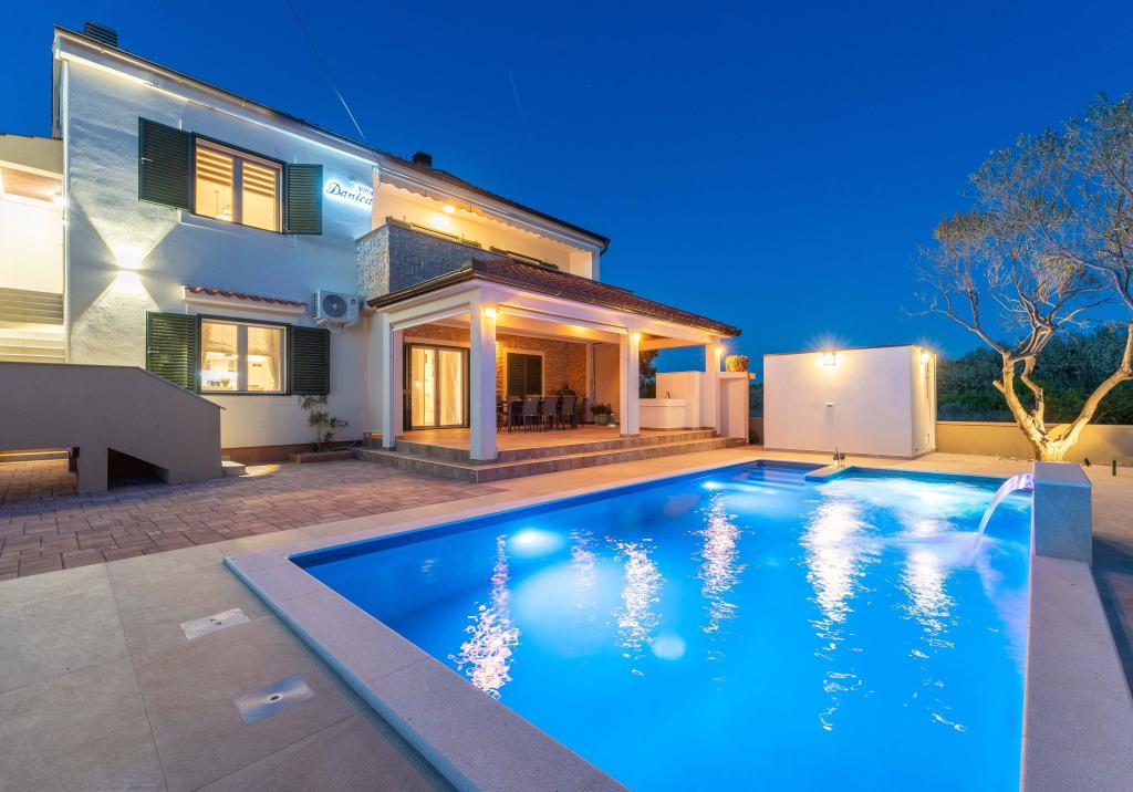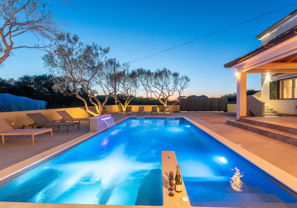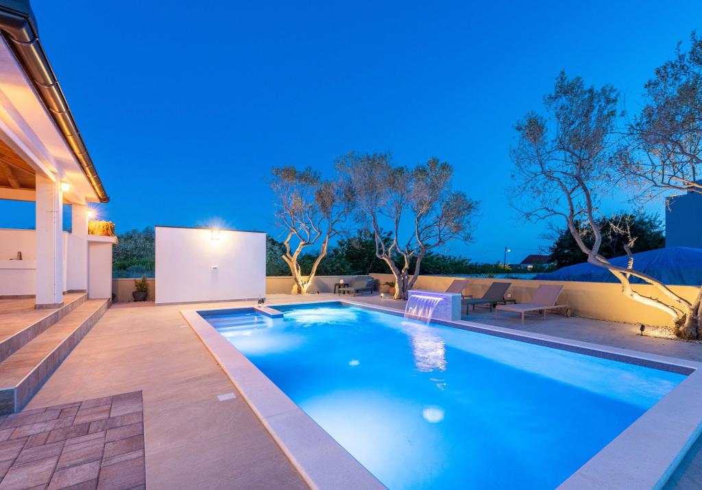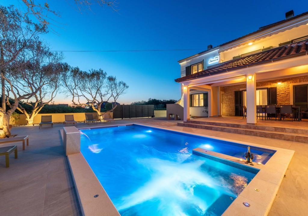 Herzlich willkommen in der Villa Danica. Luxusvilla in Privlaka in der Nähe von Zadar, eine Wellness-Oase mit klimatisierten Unterkünften, einem privaten beheizten Salzwasserpool, wunderschönem Meerblick und einem geräumigen Balkon. Genießen Sie Komfort mit Zugang zu einer Terrasse, Tischtennis, Billard, Fitnessstudio, kostenlosen Privatparkplätzen und schnellem WLAN. Die Villa verfügt außerdem über eine Sauna. Wir freuen uns auf Gäste jeden Alters, auch auf die Kleinen, und auch Haustiere sind bei uns erlaubt. Die geräumige Villa bietet eine voll ausgestattete Küche mit Geschirrspüler, Backofen und Mikrowelle, ein gemütliches Wohnzimmer mit reichlich Sitz- und Essbereich, 4 Schlafzimmer und 5 Badezimmer mit Duschen. Handtücher und Bettwäsche werden für Ihren Komfort bereitgestellt. Genießen Sie die Atmosphäre am Kamin, der zur Unterkunft gehört. Die Gäste der Villa können in und um Privlaka verschiedene Aktivitäten wie Reiten, Radfahren und Wandern genießen. Die älteste kroatische Königsstadt Nin ist 4 km von der Unterkunft entfernt.