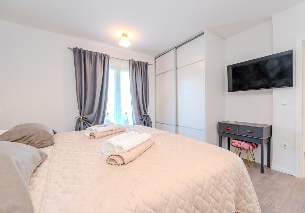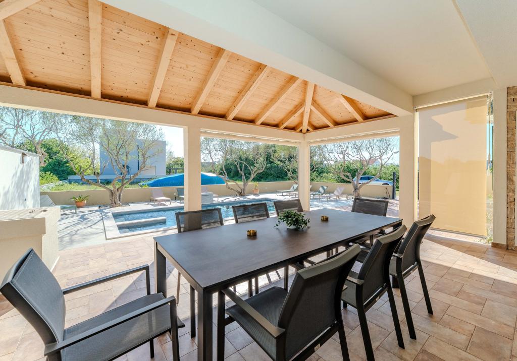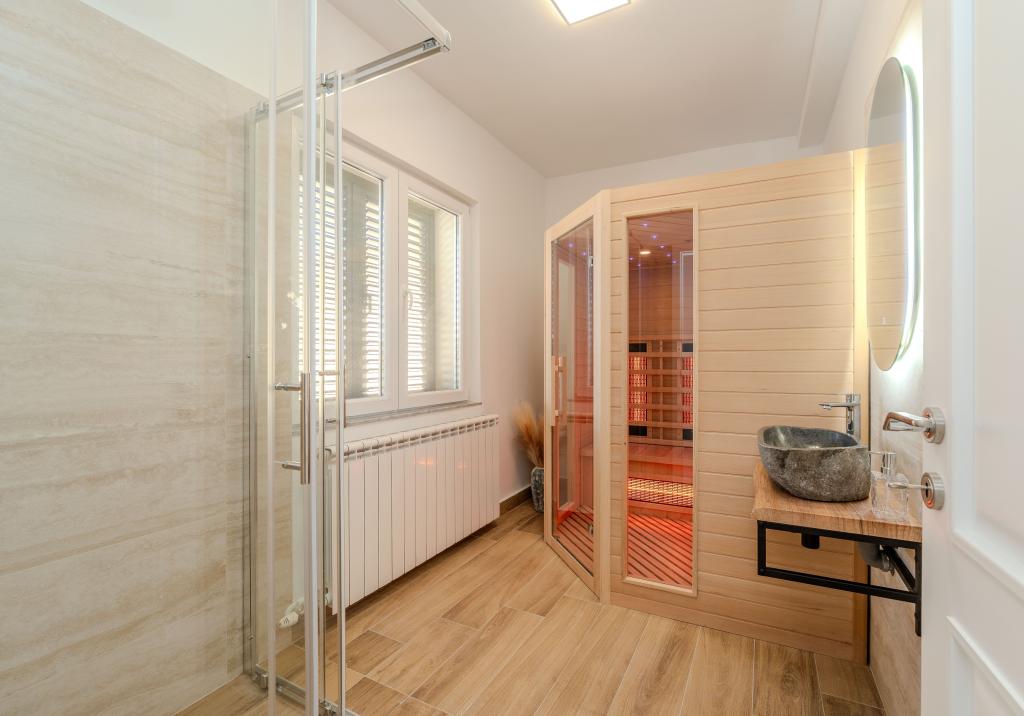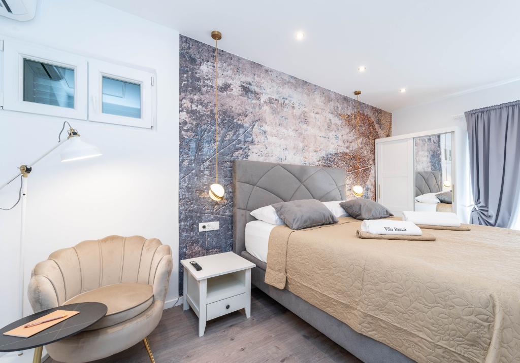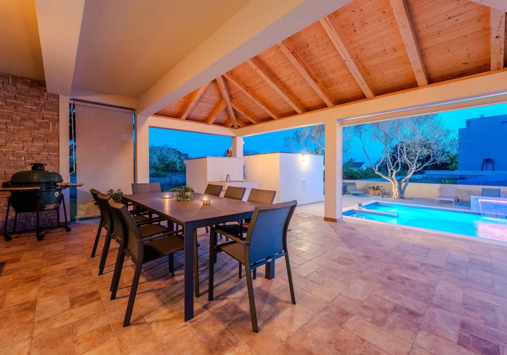Herzlich willkommen in der Villa Danica. Luxusvilla in Privlaka in der Nähe von Zadar, eine Wellness-Oase mit klimatisierten Unterkünften, einem privaten beheizten Salzwasserpool, wunderschönem Meerblick und einem geräumigen Balkon. Genießen Sie Komfort mit Zugang zu einer Terrasse, Tischtennis, Billard, Fitnessstudio, kostenlosen Privatparkplätzen und schnellem WLAN. Die Villa verfügt außerdem über eine Sauna. Wir freuen uns auf Gäste jeden Alters, auch auf die Kleinen, und auch Haustiere sind bei uns erlaubt. Die geräumige Villa bietet eine voll ausgestattete Küche mit Geschirrspüler, Backofen und Mikrowelle, ein gemütliches Wohnzimmer mit reichlich Sitz- und Essbereich, 4 Schlafzimmer und 5 Badezimmer mit Duschen. Handtücher und Bettwäsche werden für Ihren Komfort bereitgestellt. Genießen Sie die Atmosphäre am Kamin, der zur Unterkunft gehört. Die Gäste der Villa können in und um Privlaka verschiedene Aktivitäten wie Reiten, Radfahren und Wandern genießen. Die älteste kroatische Königsstadt Nin ist 4 km von der Unterkunft entfernt.