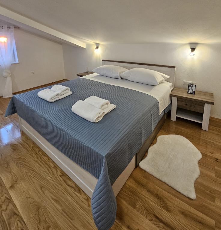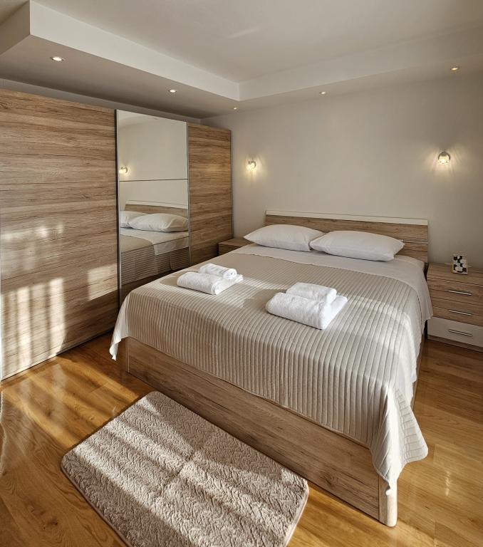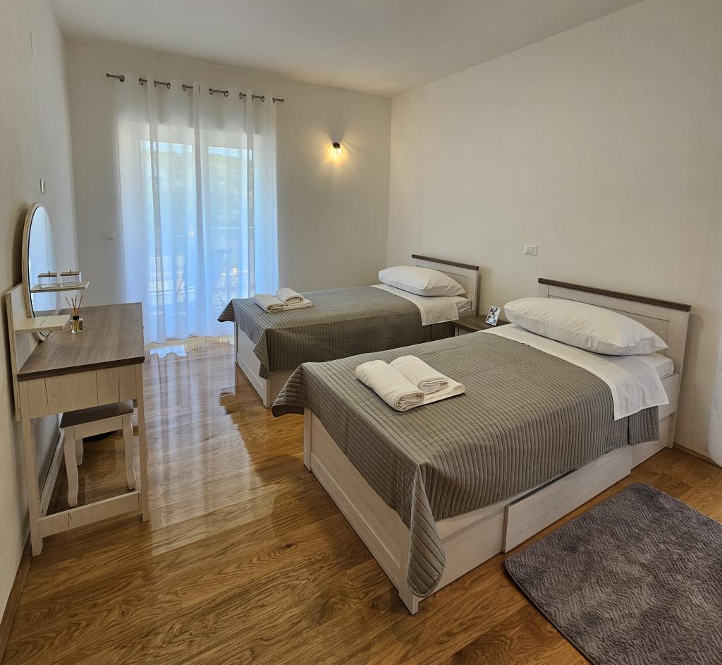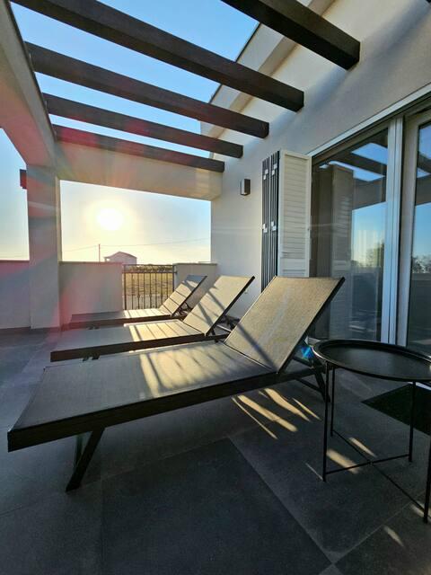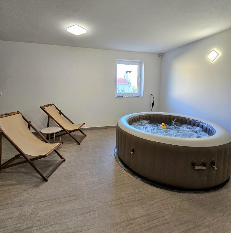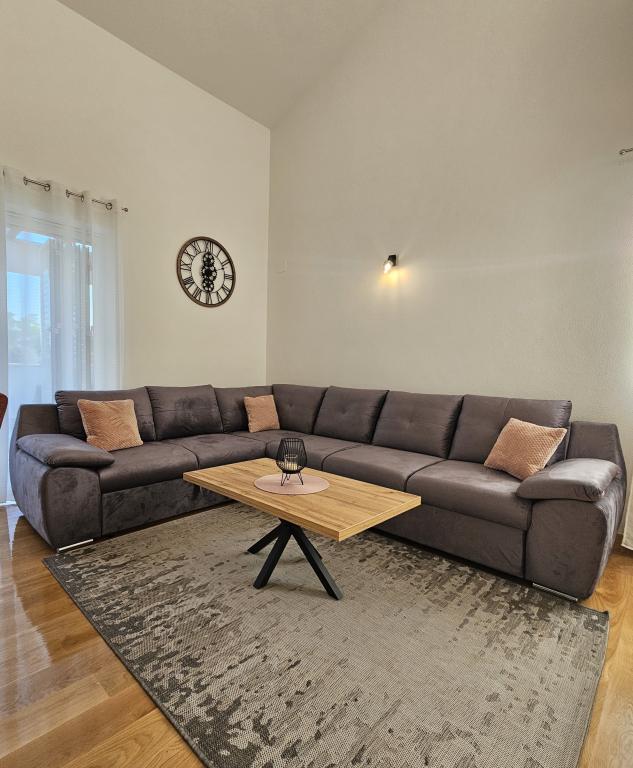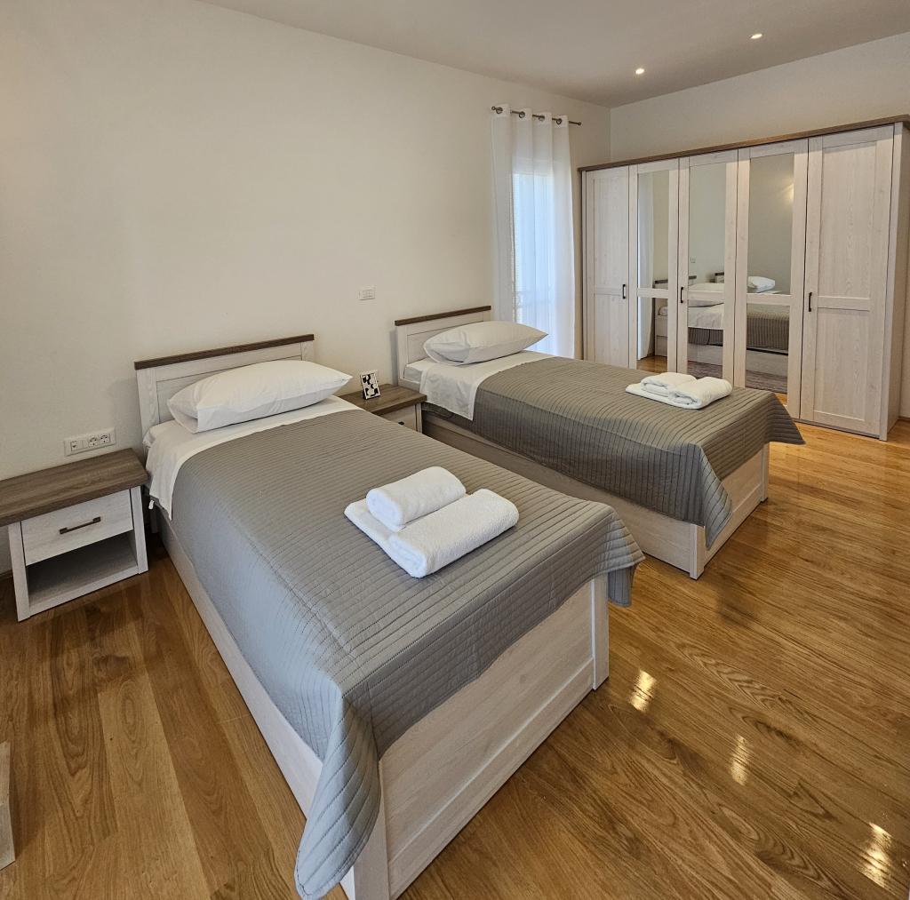 Willkommen in Ihrem 324 m² großen Ferienhaus für Familien in der Nähe von Zadar – ein geräumiges Haus, das zum Entspannen und Genießen einlädt. Eltern können im privaten Whirlpool relaxen oder sich im voll ausgestatteten Fitnessraum austoben, während die Kinder sich auf ihrem sicheren Spielplatz im Freien vergnügen. Das Haus bietet bequem Platz für bis zu 10 Gäste und verfügt über fünf liebevoll eingerichtete Schlafzimmer, drei moderne Badezimmer, zwei voll ausgestattete Küchen, einen Essbereich und ein helles Wohnzimmer mit Fernseher. Ein separater Arbeitsbereich und eine Waschküche sorgen für zusätzlichen Komfort bei längeren Aufenthalten. Der komplett umzäunte Garten bietet Privatsphäre und Sicherheit und ist ideal für Familien mit Kindern. Das Highlight des Hauses ist der Außenbereich: Zwei Balkone mit Sonnenliegen, eine große Terrasse mit Grill, ein großzügiger Essbereich im Freien und eine einladende Liegewiese laden zum Verweilen an lauen dalmatinischen Abenden ein. Kostenlose Privatparkplätze stehen Ihnen vor Ort zur Verfügung.