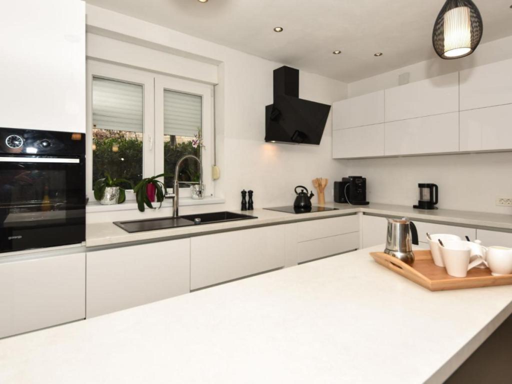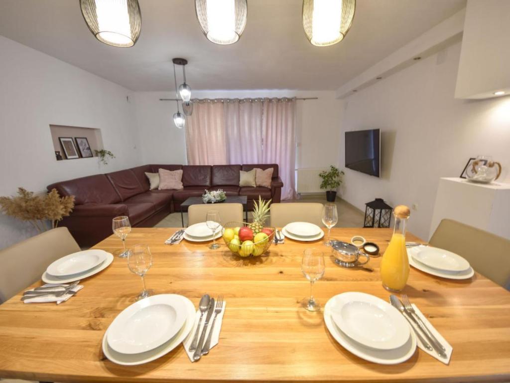 Das freistehende Haus „Villa Matino“ erstreckt sich über zwei Etagen und liegt 400 m vom Zentrum von Ražanac entfernt, in ruhiger und sonniger Lage, nur 440 m vom Meer und Strand. Auf einem 500 m² großen, umzäunten Grundstück stehen den Gästen ein privater Swimmingpool (8 x 4 m, Tiefe 145 cm, saisonal vom 15.5. bis 15.10.), eine Außendusche und ein Grill zur Verfügung. Die Poolpflege übernimmt der Eigentümer. Das Haus bietet kostenloses Internet, eine Waschmaschine, vier Klimaanlagen und Parkplätze für drei Autos. Gruppen mit jüngeren Kindern werden nicht akzeptiert. Das Haus hat eine Wohnfläche von 250 m² und besteht aus zwei zusammen vermieteten Apartments – ideal für Gruppen, die Wert auf Privatsphäre und Gemeinschaftsräume legen. Das kleinere Apartment verfügt über zwei Schlafzimmer (180 x 200 cm), eine Küche, ein Esszimmer, ein Wohnzimmer, ein Badezimmer und drei Terrassen (zwei davon mit Meerblick). Die größere Wohnung verfügt über 3 Schlafzimmer (2x 180x200 cm, 1x 140x200 cm), Küche, Esszimmer, Wohnzimmer, 2 Badezimmer, 2 Terrassen und einen Abstellraum.