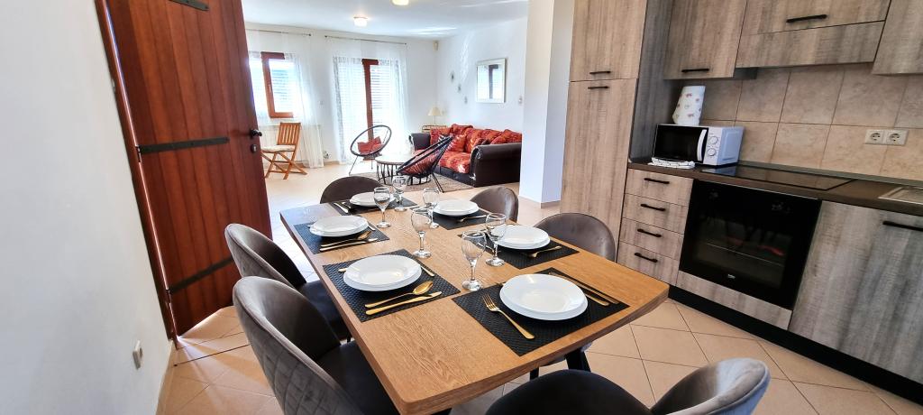 Die Villa Casa Mia befindet sich in Sabunike, nur 200 m vom Meer und dem Hauptsandstrand entfernt, der lokal als Queen's Beach oder weltberühmter Queen Beach bezeichnet wird. Sabunike ist ein Vorort von Privlaka und befindet sich in der Lagune von Nin. Diese attraktive Gegend ist das schönste Juwel der Zadar Riviera. Die Villa Casa Mia bietet Ihnen drei voll ausgestattete, moderne Apartments. Zwei große Apartments verfügen über 3 Schlafzimmer mit Doppelbett, eine voll ausgestattete Küche, ein Esszimmer und ein Wohnzimmer, 2 große Badezimmer und 2 große Terrassen mit schöner Aussicht, einen Garten und einen großen Außenpool vor dem Haus. Alle Apartments verfügen über Klimaanlage, Flachbildfernseher, Netflix, Uhr und kostenloses Highspeed-WLAN. Die nächst kleinere Wohnung ist fast die gleiche, hat aber 1 Zimmer mit einem Doppelbett. Im Garten gibt es einen Kamin, der immer verfügbar ist, und einen großen geschützten, geschützten und beheizten Pool, der Ihnen perfekten Komfort und Privatsphäre während Ihres Urlaubs garantiert