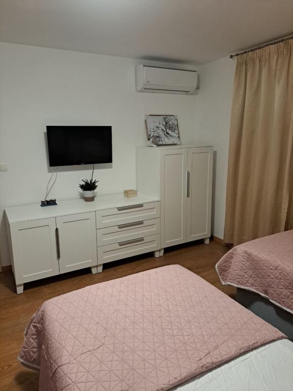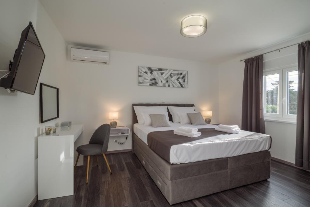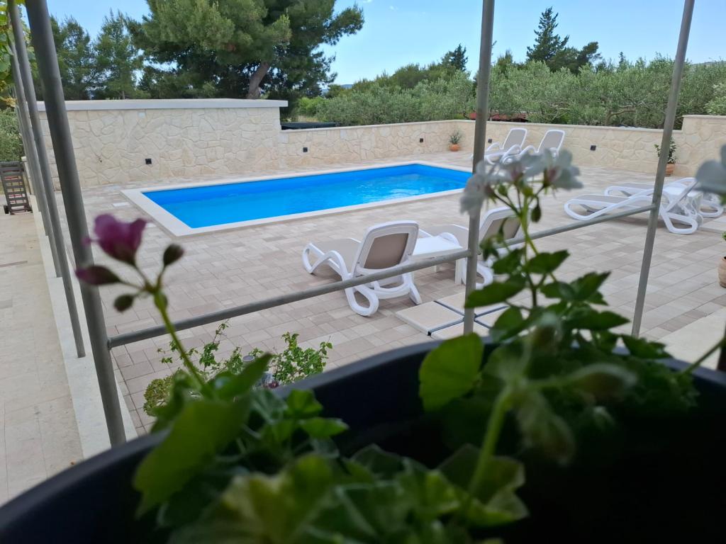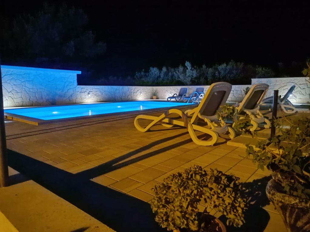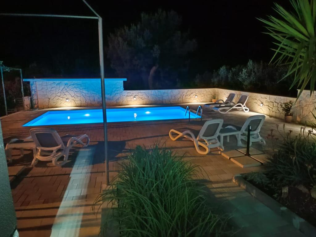 Dieses neu renovierte Familienhaus für 7 Personen liegt in der Nähe von Trogir, im Bezirk Seget Donji, in der Nähe des Hotels Medena. Das Haus liegt auf einem 700 m2 großen Grundstück und verfügt über 150 m2 Wohnfläche. Eine Außenküche mit einem Tisch für 8 Personen, eine Außentoilette, ein großer Grill und ein privater Swimmingpool bieten Ihnen alles, was Sie für einen angenehmen und erholsamen Urlaub brauchen. Der gesamte Bereich ist modern eingerichtet, klimatisiert und verfügt über WLAN. Die innenliegende Küche ist komplett eingerichtet und verfügt über sämtliche Haushaltsgeräte. Das Haus verfügt über 3 modern eingerichtete, große Schlafzimmer. Jedes Schlafzimmer verfügt über Sat-TV und Klimaanlage. Das größere Badezimmer verfügt über eine Badewanne und eine Waschmaschine. Das kleinere Badezimmer verfügt über eine Duschkabine. Außerdem gibt es im Haus einen kleinen Fitnessraum. Vor dem Haus gibt es Parkplätze für 3 Autos. Der große Verandagarten bietet Ihnen Ruhe und Entspannung und die Außenküche ist ein Ort, um die Zeit mit Familie und Freunden zu genießen. Den Gästen steht das gesamte Haus und der Garten mit Swimmingpool zur Verfügung.