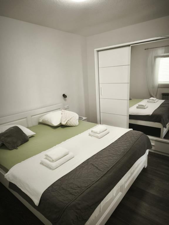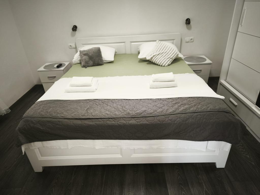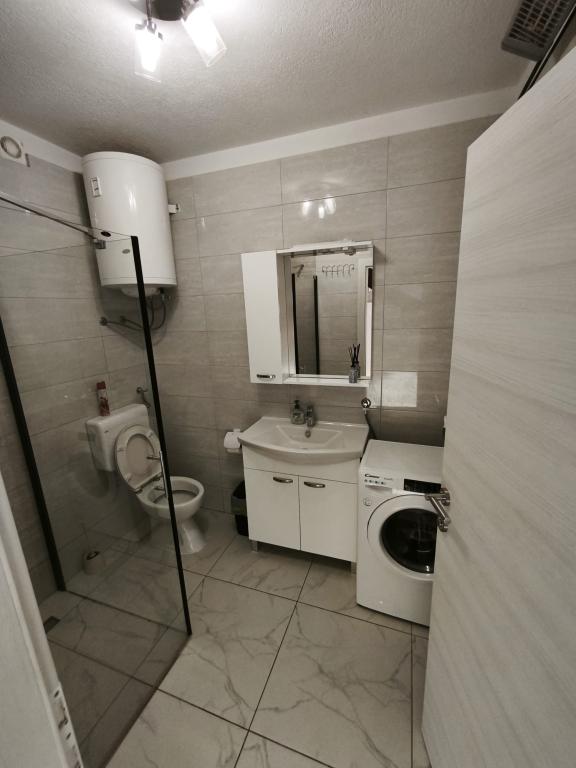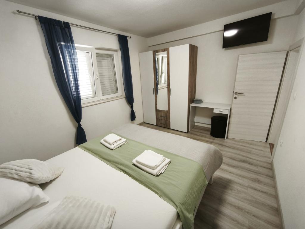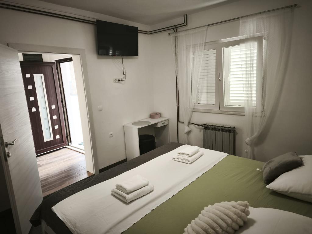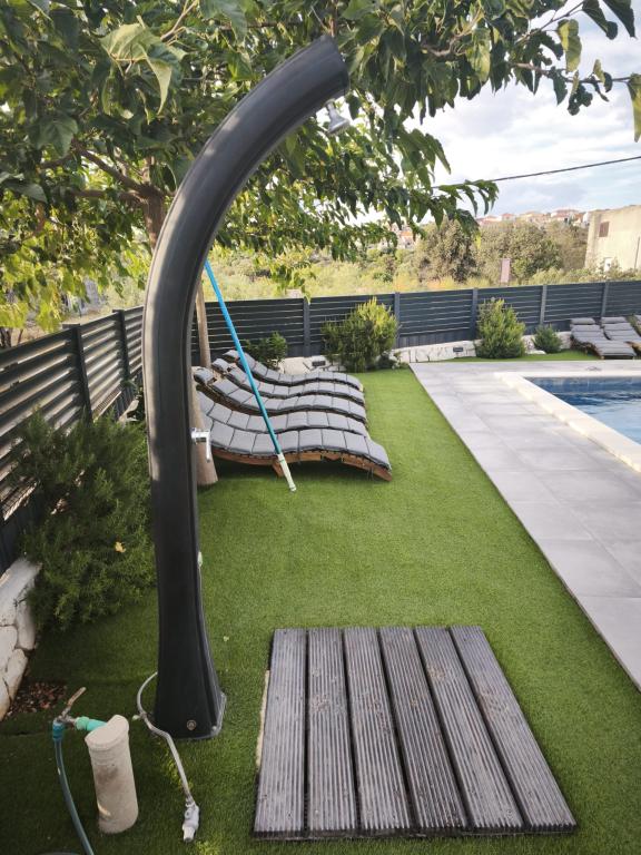 Meine Familie und ich verbrachten 7 Tage in der Villa Ante Škina. Wir empfehlen sie für einen ruhigen, entspannten und komfortablen Urlaub. Das Haus ist geräumig und verfügt über fünf Schlafzimmer und zwei Badezimmer, jedes mit eigener Waschmaschine. Der Außenbereich mit Pool und großem Tisch unter dem Vordach lädt zum gemeinsamen Verweilen ein. Die Betten und der Rest des Hauses sind bequem und sauber, die Küche ist gut ausgestattet: zwei Töpfe und zwei Pfannen, Salz und Gewürze. Der Wäscheständer war sehr praktisch. Der nächste, etwas größere Laden ist 15 Minuten entfernt. Wir besuchten den Strand von Stari Trogir – 15 Minuten mit dem Auto – und den nächstgelegenen Strand von Sevid, der 5 Minuten vom Haus entfernt ist. Beide Strände sind wunderschön, nicht zu überfüllt und das Meer ist sehr sauber. Am Strand von Sevid gibt es einen kleinen Imbiss und Eis. Wir fuhren zweimal in die nächstgelegene Stadt Primošten, um Lebensmittel einzukaufen und zu Abend zu essen (ca. 25 Minuten). Wir hatten auch einen Hund dabei, der die Natur sehr genossen hat. Die Gastgeber waren sehr freundlich, entgegenkommend und großzügig.