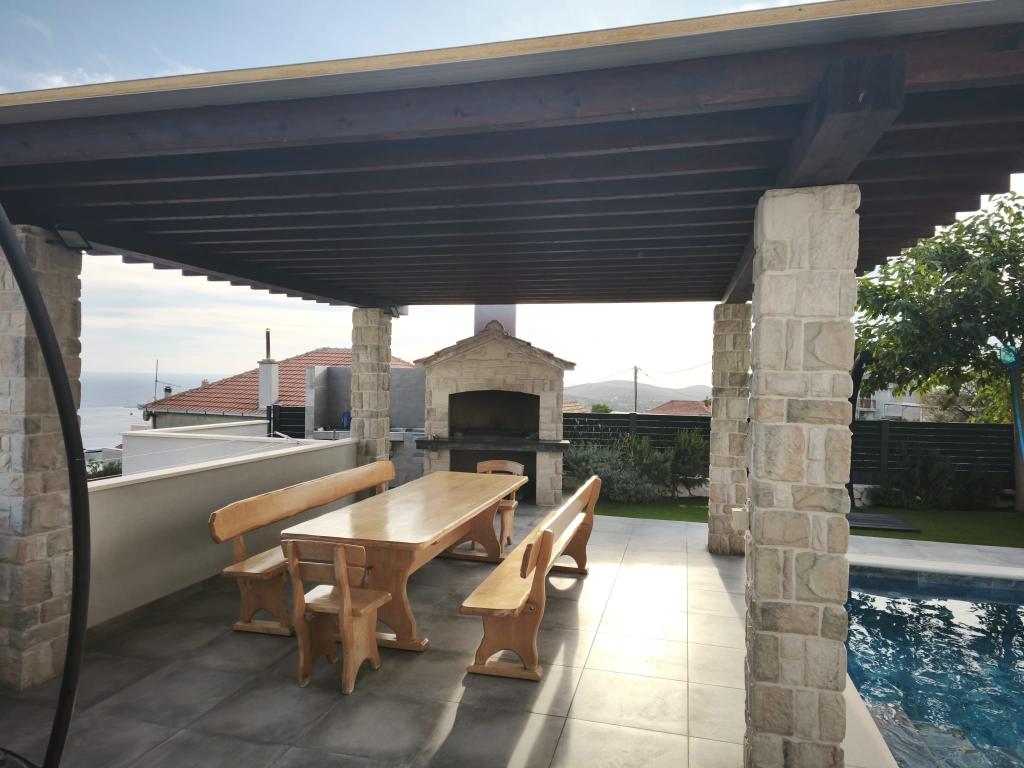 Eine gut ausgestattete Villa mit großem Parkplatz und wunderschönem Blick auf das Meer bietet ihren Gästen ein unvergessliches Erlebnis und einen wohlverdienten Urlaub.