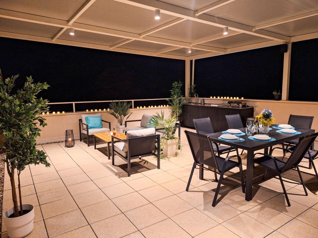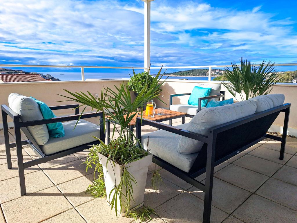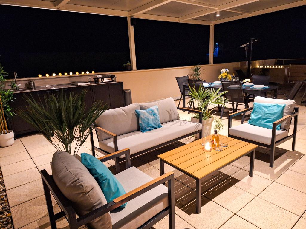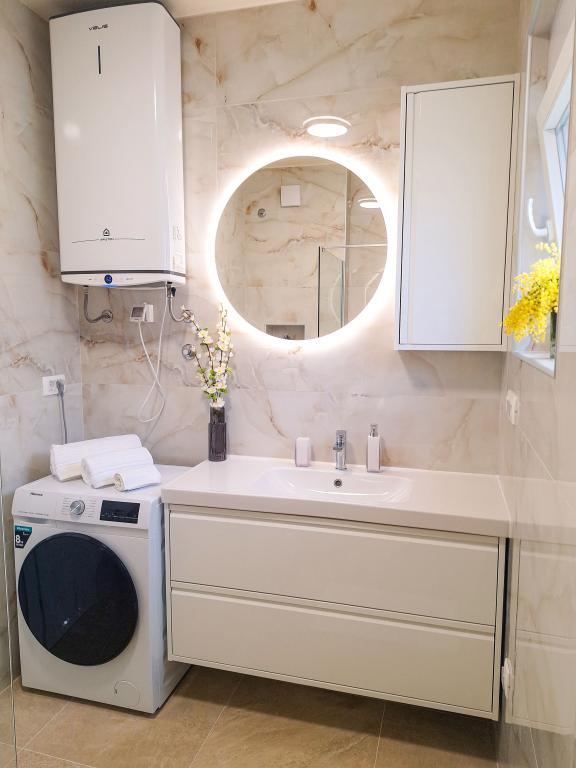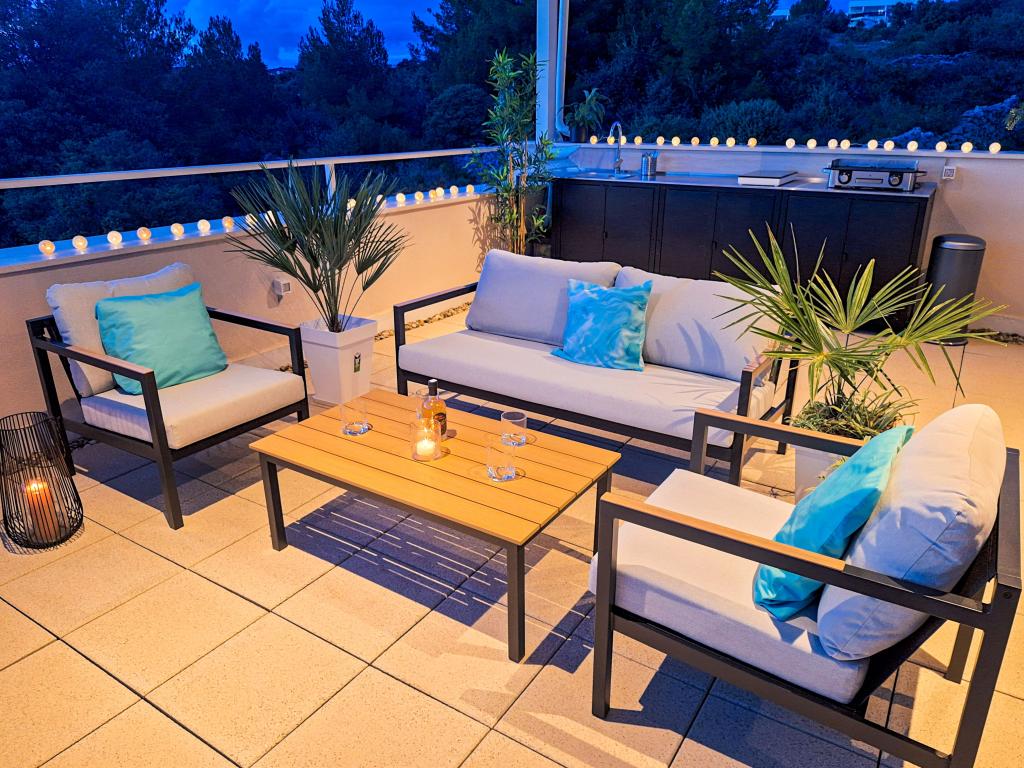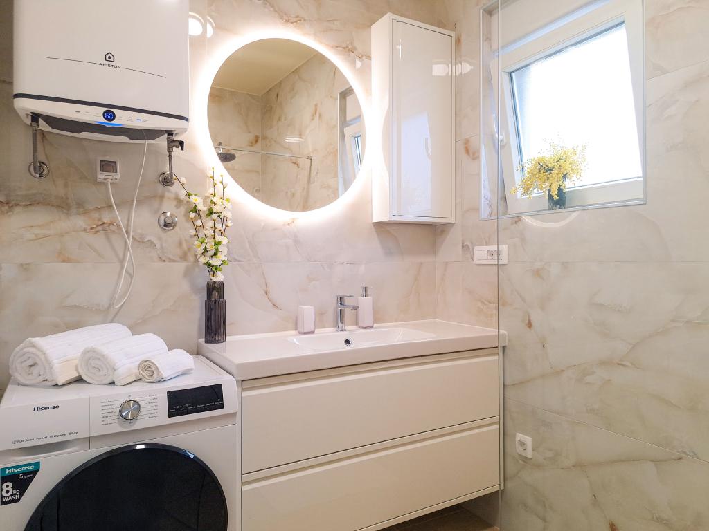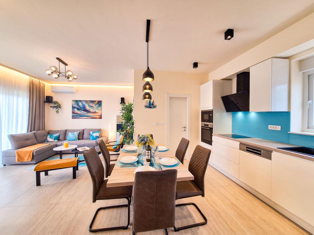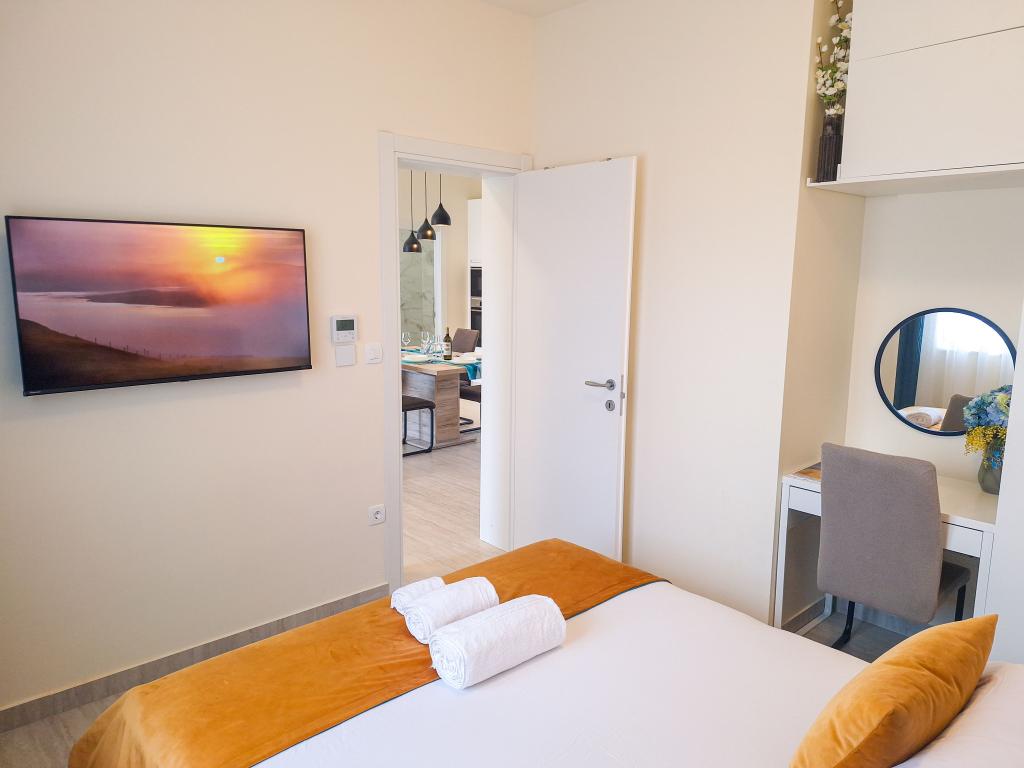 Willkommen in Tesa, einer neuen, modernen Villa, in der Sie sich mit Ihrer Familie oder Ihren Freunden rundum wohlfühlen können. Diese elegante Villa für bis zu 6 Gäste bietet eine voll ausgestattete Küche, ein modernes Badezimmer mit ebenerdiger Dusche und Waschtrockner sowie Klimaanlage und einen Fernseher in jedem Zimmer. Die Dachterrasse mit Blick auf das Meer und die Inseln verfügt über einen beheizten Pool, eine Außendusche und Sonnenliegen – ideal zum Entspannen tagsüber mit einem guten Buch oder Musik aus den Außenlautsprechern und abends zum Genießen unter dem Sternenhimmel mit einem Glas Ihres Lieblingsgetränks. Die Terrasse mit voll ausgestatteter Küche (Grill, Herd, Kühlschrank), Esstisch und Sitzecke lädt dazu ein, den ganzen Tag im Freien zu verbringen. Kochen mit einer leichten Meeresbrise macht dieses Erlebnis besonders angenehm. Die perfekte, zentrale Lage mit allen Annehmlichkeiten des täglichen Bedarfs und wunderschönen Stränden nur 200 Meter entfernt, umgeben von viel Grün und einem liebevoll angelegten Garten zum Entspannen, garantiert Ihnen einen unvergesslichen Urlaub.