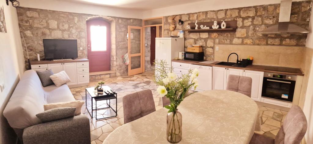 Ein altes Steinhaus in Hodilje, einer kleinen Stadt 2,5 km von Ston entfernt, bietet Ruhe und eine entspannte Atmosphäre. Wenn Sie dem Trubel an den Stränden entfliehen und einen idealen Familienurlaub verbringen möchten, sind Sie hier genau richtig. In Hodilje selbst stehen Ihnen drei Strände zur Verfügung, ein erstklassiges Fischrestaurant und ein großes Geschäft mit erschwinglichen Preisen ist etwa einen Kilometer vom Haus entfernt. Hodilje liegt etwa 50 Kilometer von Dubrovnik, etwa 50 Kilometer von Korčula und 5 Kilometer vom Nationalpark Mljet entfernt. Sie befinden sich am perfekten Knotenpunkt für Tagesausflüge. Das Gästehaus Roses verfügt über drei Zimmer und ein Badezimmer im ersten Stock, im Erdgeschoss befinden sich eine Küche, ein großes Wohnzimmer und eine Toilette. Im Hof befinden sich eine überdachte Terrasse und ein Grill. Das Haus verfügt über alle notwendigen Annehmlichkeiten, ist klimatisiert und bietet WLAN, Netflix ... Wir freuen uns auf Ihre Ankunft und werden unser Bestes tun, um Ihren Urlaub unvergesslich zu machen.