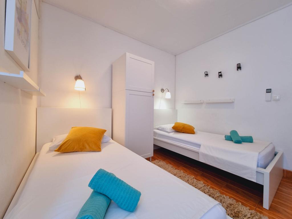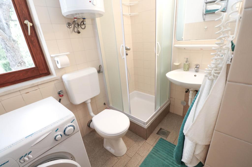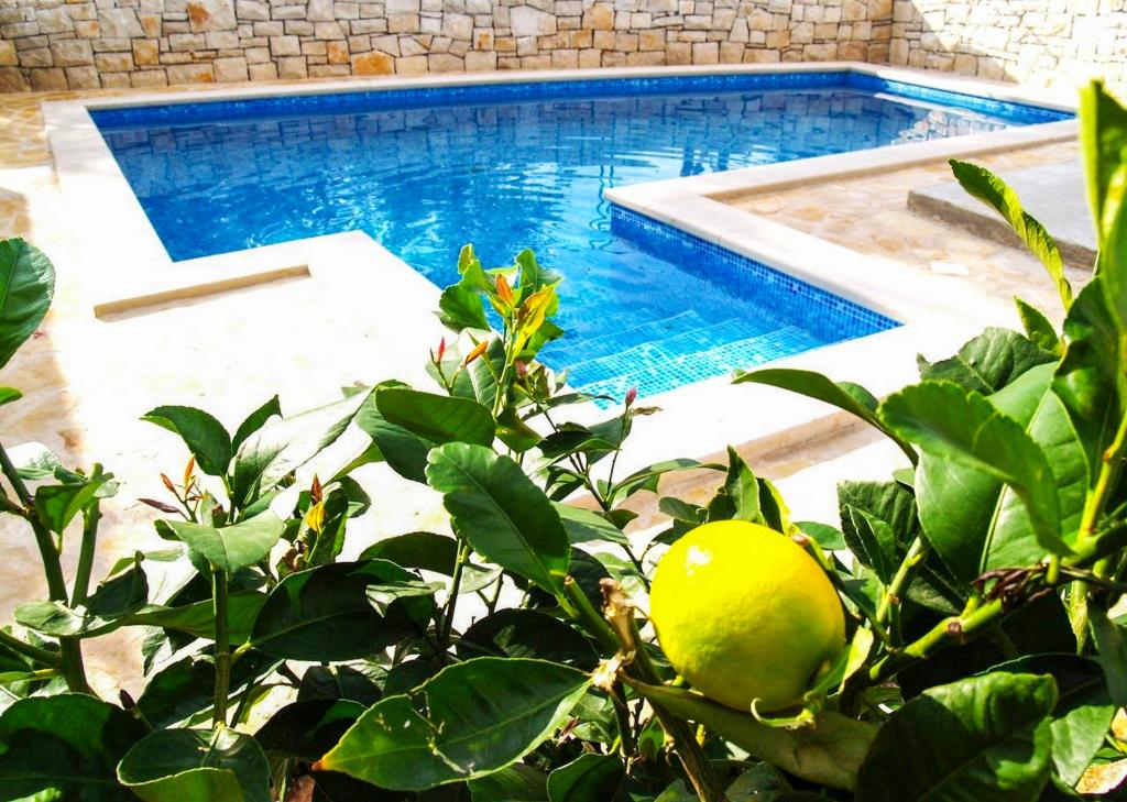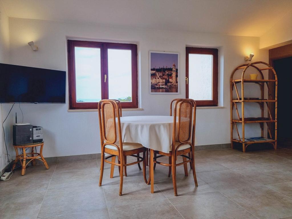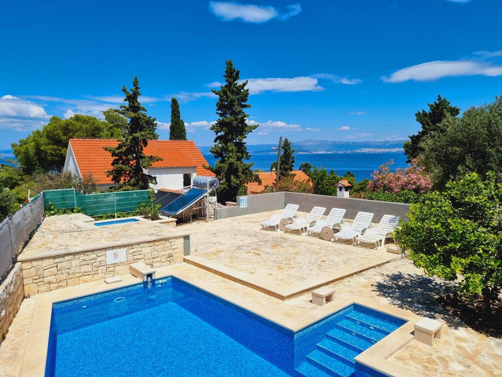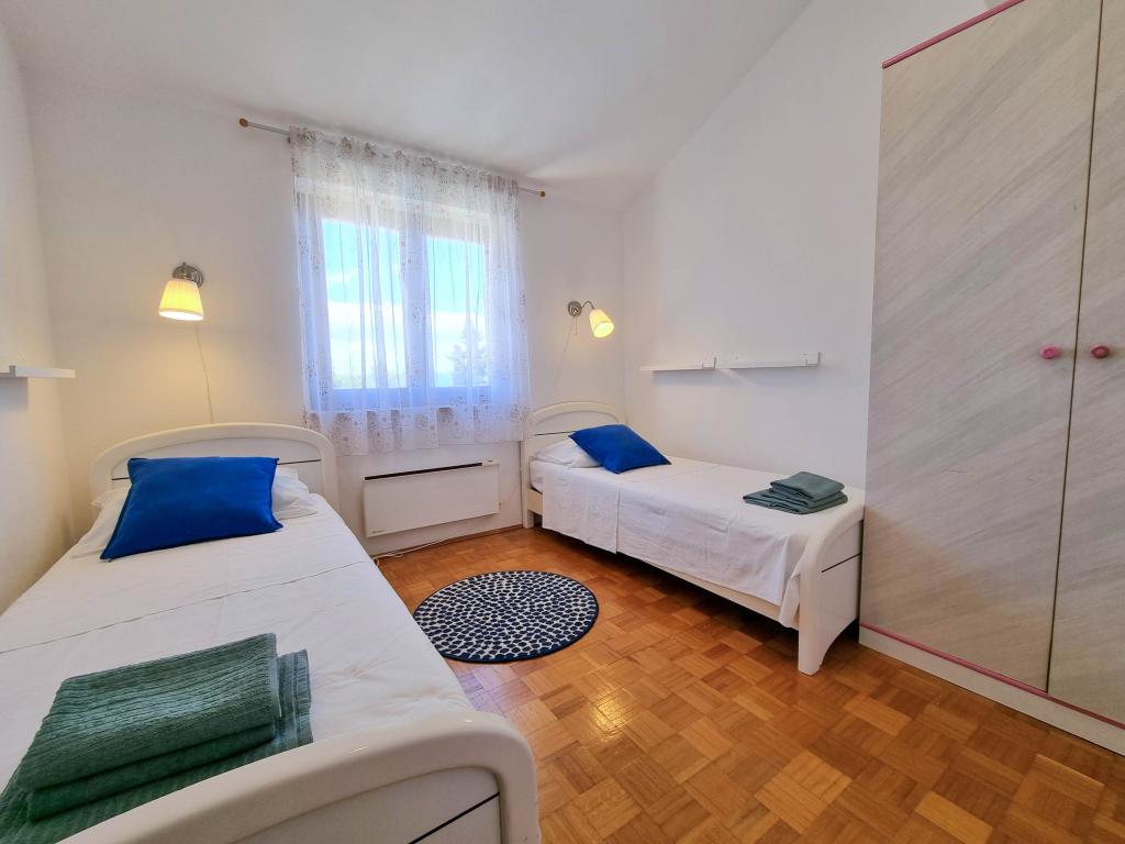 Die Villa Dvornik bietet absolute Privatsphäre in einer komfortablen Unterkunft für Familien mit Kindern, Studentengruppen und Familientreffen mehrerer Generationen. Es hat einen Blick auf das Meer und ist nur 300 Meter vom Meer und dem Strand entfernt. Wohnfläche von 110 m2 + 25 m2 Terrasse, große Gartenfläche von 280 m2 mit Steinplatten bedeckt, mit 4 Zimmern (8 Betten) und zwei Swimmingpools. Ein großes Becken mit 4 Massagedüsen von 24 m2 und einer Tiefe von 1,5 m für Erwachsene und ein kleineres Becken für Kleinkinder mit einer Größe von 3,5 m2 und einer Tiefe von 0,5 m. Beide Becken werden mit 10 m2 großen Sonnenkollektoren beheizt, die es ermöglichen die Temperatur des Pools von 21 °C im Mai und Oktober. Die Außendusche und der Grill befinden sich in der Umgebung des Hauses. Das Haus ist klimatisiert und hat Zugang zu drahtlosem Internet. Drei Parkplätze stehen auf dem Grundstück rund um das Haus zur Verfügung. Haustiere sind willkommen.