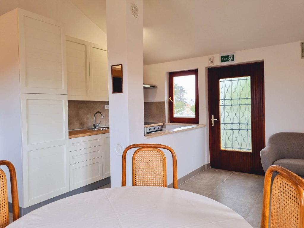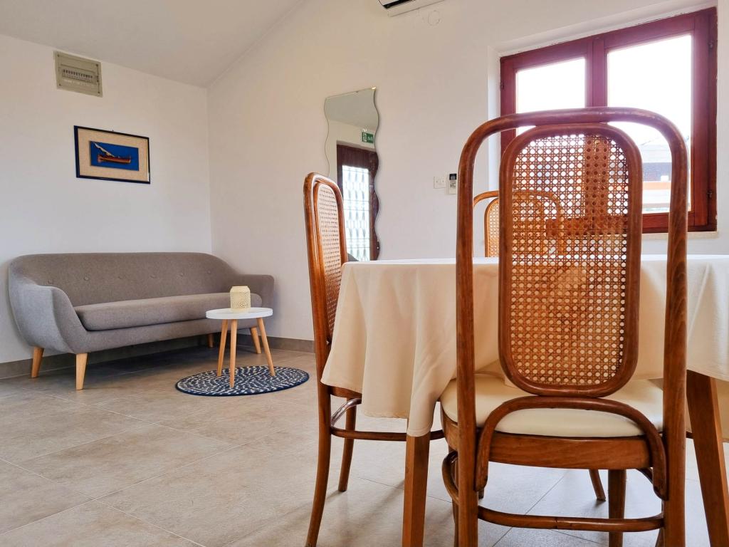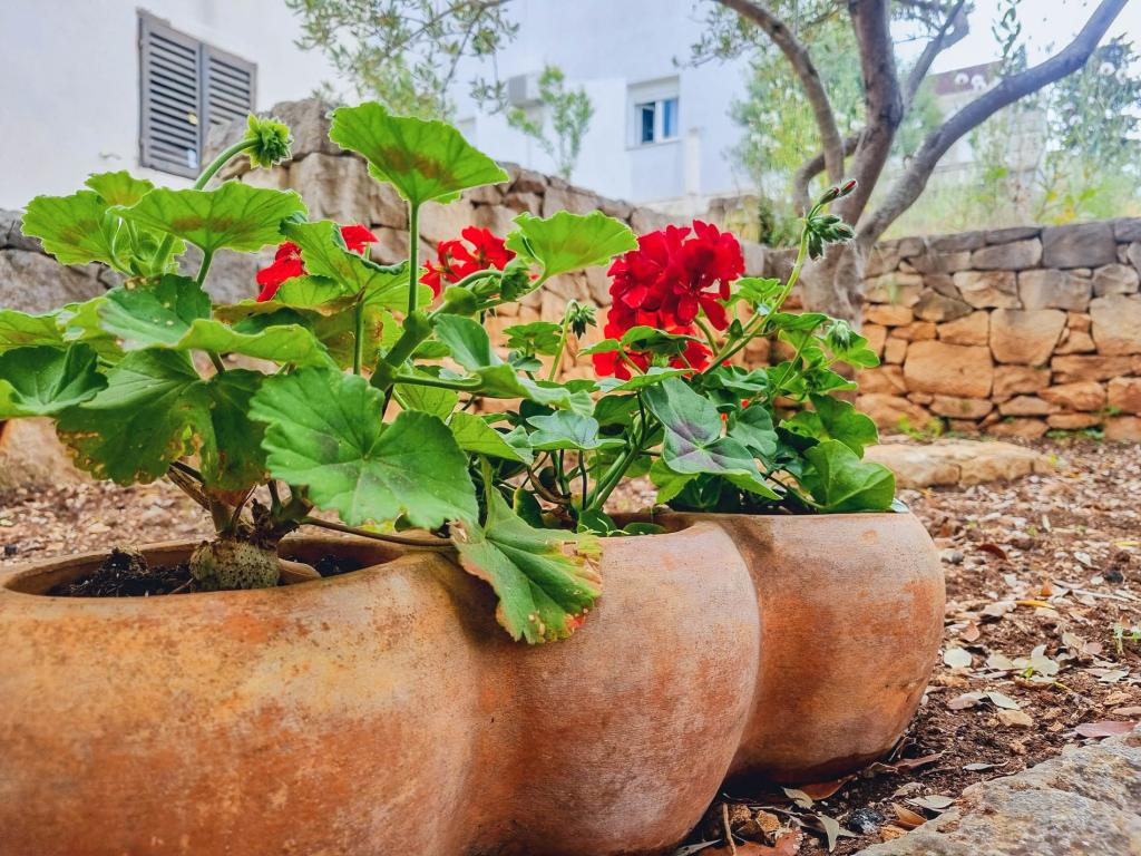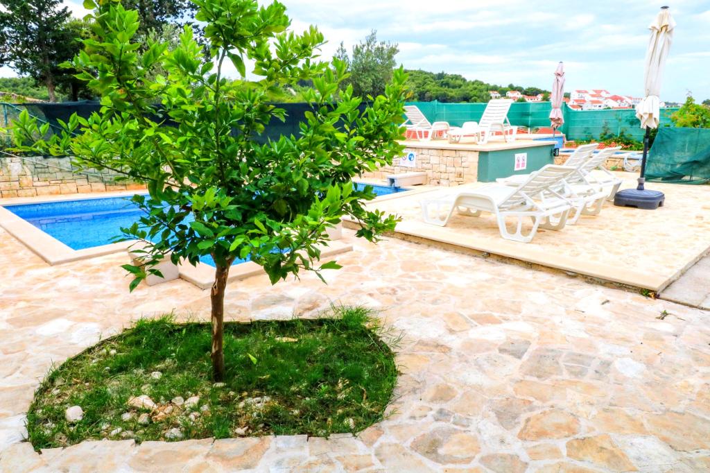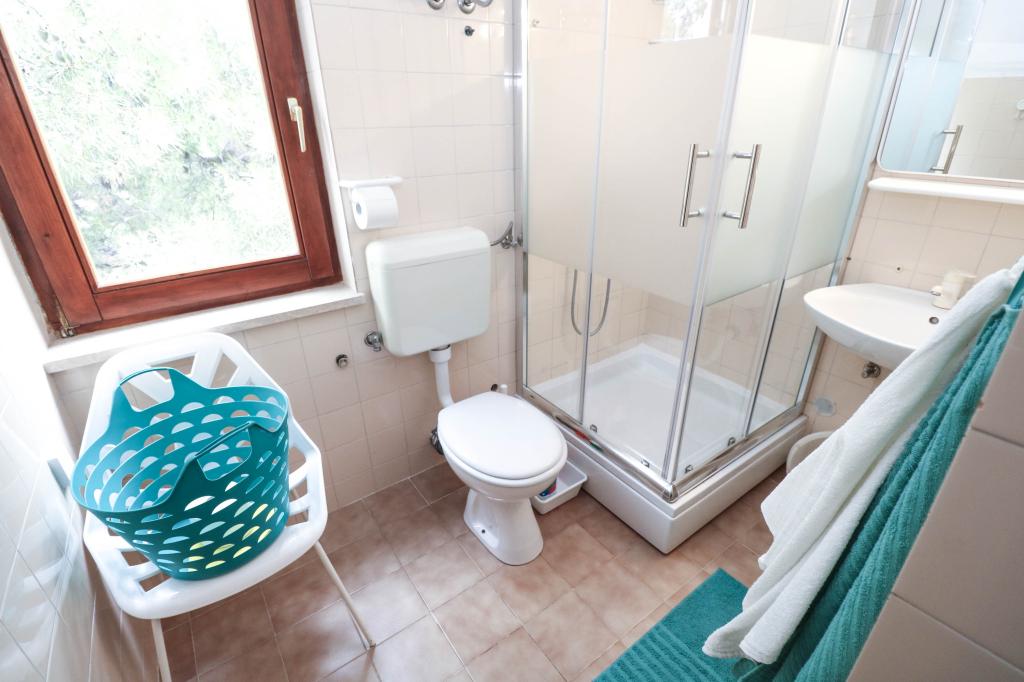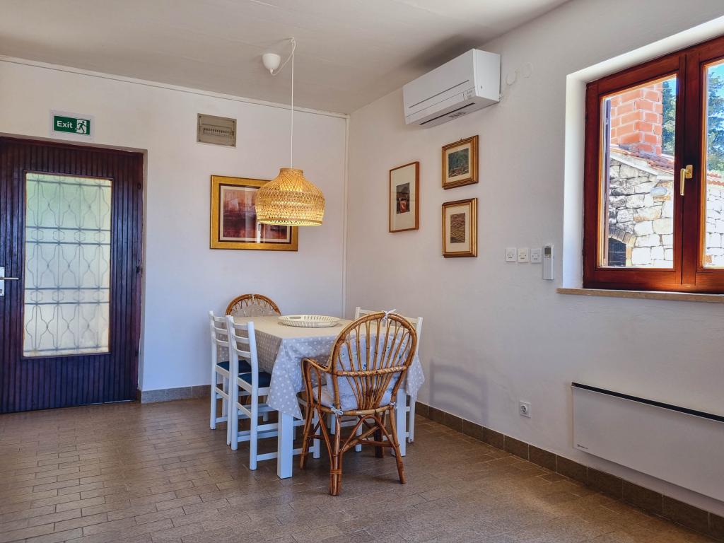 Die Villa Dvornik bietet absolute Privatsphäre in einer komfortablen Unterkunft für Familien mit Kindern, Studentengruppen und Familientreffen mehrerer Generationen. Es hat einen Blick auf das Meer und ist nur 300 Meter vom Meer und dem Strand entfernt. Wohnfläche von 110 m2 + 25 m2 Terrasse, große Gartenfläche von 280 m2 mit Steinplatten bedeckt, mit 4 Zimmern (8 Betten) und zwei Swimmingpools. Ein großes Becken mit 4 Massagedüsen von 24 m2 und einer Tiefe von 1,5 m für Erwachsene und ein kleineres Becken für Kleinkinder mit einer Größe von 3,5 m2 und einer Tiefe von 0,5 m. Beide Becken werden mit 10 m2 großen Sonnenkollektoren beheizt, die es ermöglichen die Temperatur des Pools von 21 °C im Mai und Oktober. Die Außendusche und der Grill befinden sich in der Umgebung des Hauses. Das Haus ist klimatisiert und hat Zugang zu drahtlosem Internet. Drei Parkplätze stehen auf dem Grundstück rund um das Haus zur Verfügung. Haustiere sind willkommen.