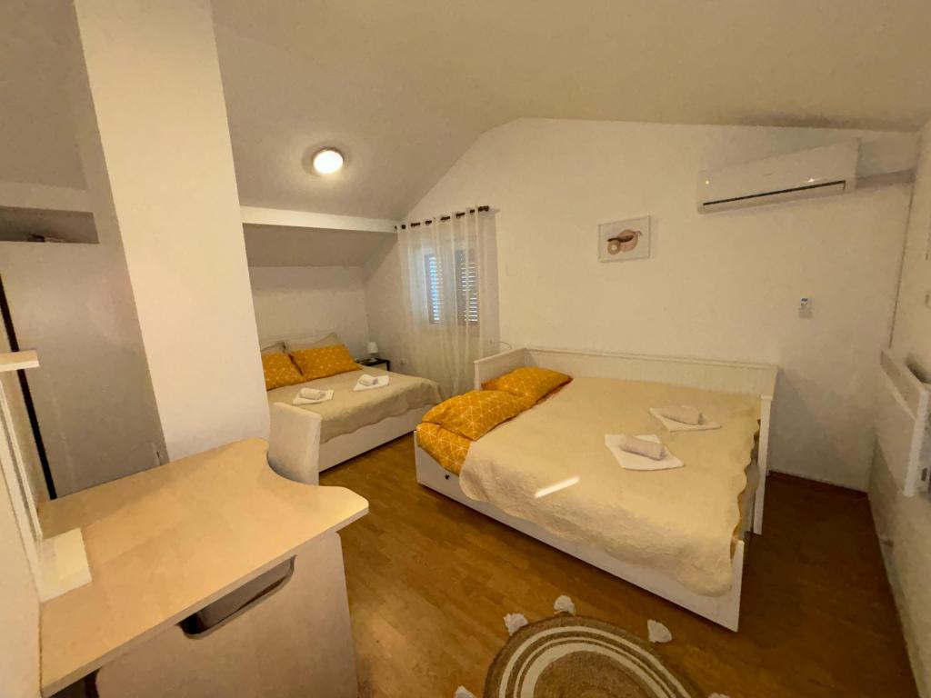 Das komplett ausgestattete Ferienhaus liegt auf einem Hügel, umgeben von Grün und Blumen, mit einer wunderschönen Aussicht auf Zagreb und die Umgebung. Die Kapazität beträgt 8 Personen. Es besteht aus zwei Schlafzimmern; ein Doppelbett und ein Einzelbett, sowie im zweiten Zimmer ein Doppelbett und ein Doppelbett mit getrennten Matratzen und ein Sofa im Wohnzimmer. Zwei Badezimmer. Voll ausgestattete Küche mit Kühlschrank mit kleinem Gefrierfach, Geschirrspüler, Filterkaffeemaschine, Backofen... und Esstisch. Große finnische Sauna. Elektrische Darts. Große überdachte Terrasse mit Tisch und Gartenmöbeln, die eine schöne Aussicht, zwitschernde Vögel und einen großen Grill bietet. Parkplätze für zwei Autos und WLAN sind im Mietpreis inbegriffen. In den Sommermonaten stehen ein Whirlpool und zusätzliche Sonnenliegen zur Verfügung. In der Umgebung können Sie wandern, spazieren gehen, Rad fahren, angeln, den Ort mit dem schnellsten Auto der Welt und den Adrenalinpark besuchen und die lokale Gastronomie genießen.