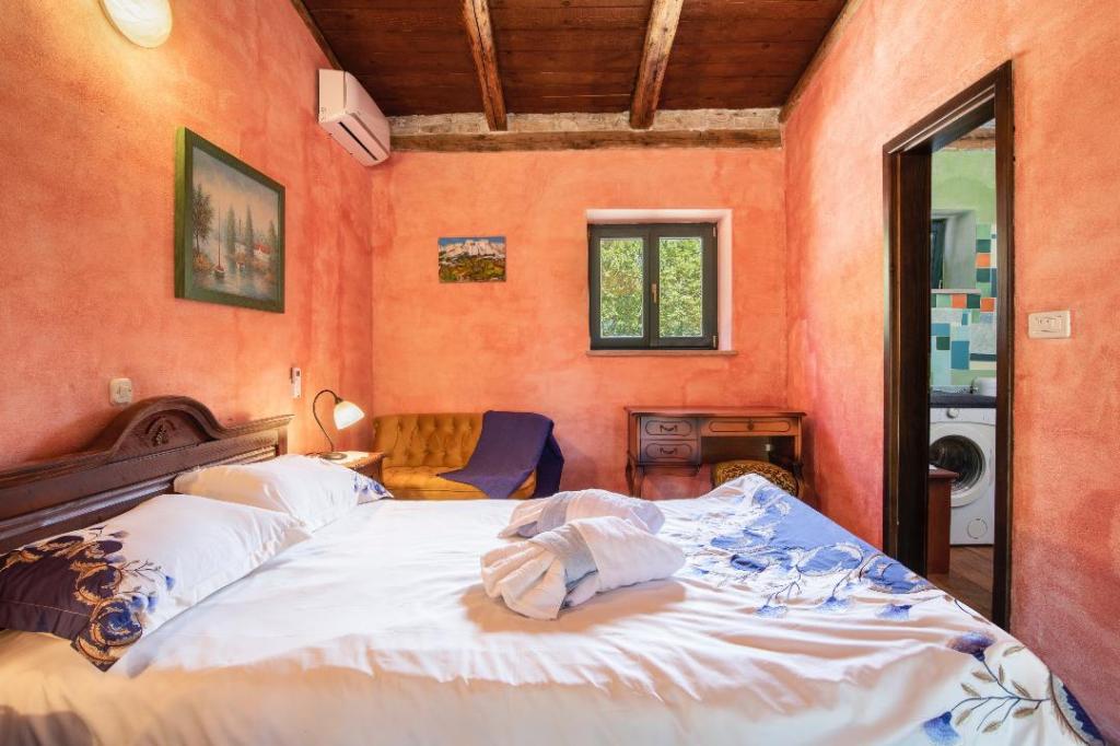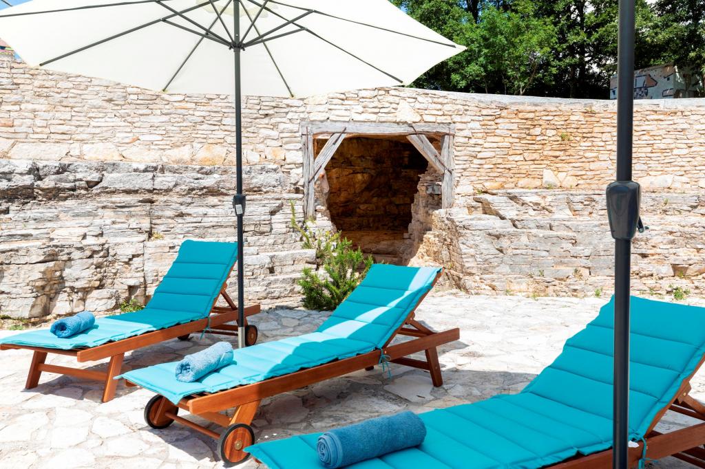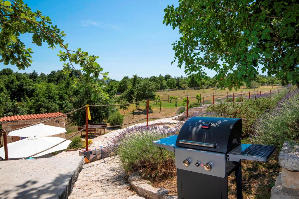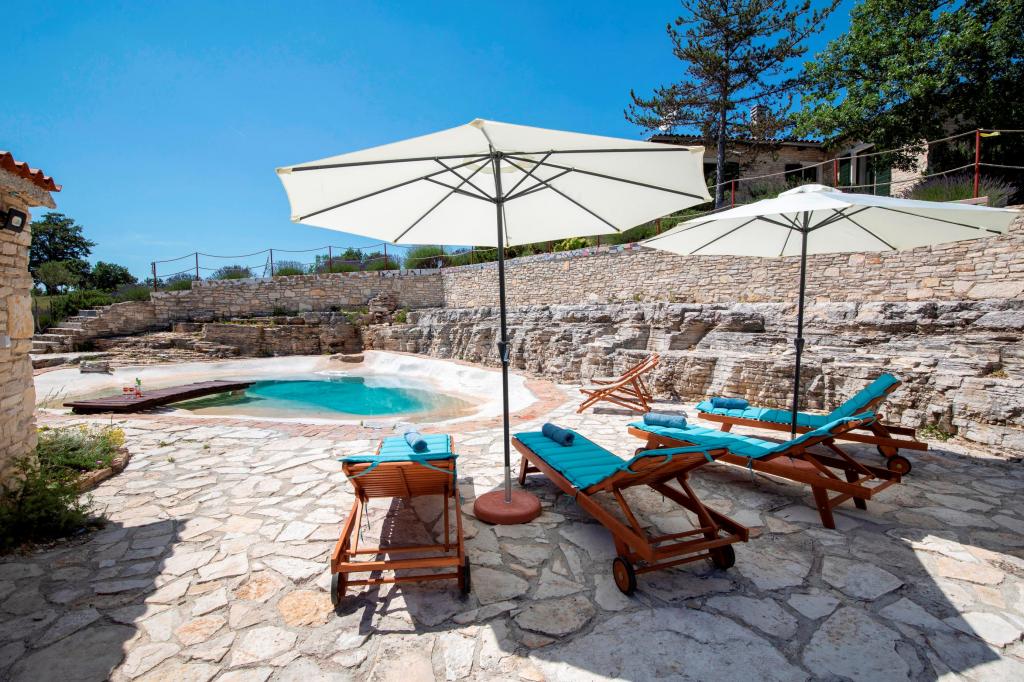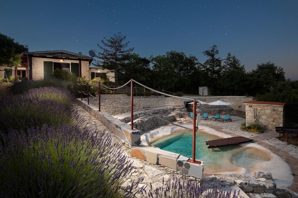 Die Villa Eternelle liegt in Juršići, zwischen den mittelalterlichen Städten Svetvinčenat und Vodnjan, und bietet einen privaten Pool und einen 10.000 m2 großen Garten. Die Entfernung von Pula und dem Nationalpark Brijuni beträgt 20 km und die Gäste können die makellose und unberührte Natur genießen. Es bietet private Parkplätze im Garten und kostenloses WLAN. Die Villa hat zwei Schlafzimmer, eine Küche mit Kühlschrank, Kaffeemaschine, Geschirrspüler und Waschmaschine sowie einen Backofen. Jedes Zimmer hat ein eigenes Bad. Wachen Sie morgens auf und genießen Sie das Frühstück auf der Terrasse mitten in der Natur, vom sanften Murmeln des Wasserfalls im Pool bis zum Anblick der Schmetterlinge über den Lavendelbüschen. Schließen Sie die Augen und spüren Sie den Duft von mediterranem Lavendel, Immortelle, Rosmarin und Salbei. An heißen Sommertagen können Sie sich im Pool abkühlen oder in der Höhle am Pool Schatten suchen. Rovinj liegt 31 km von der Villa entfernt, Poreč 44 km und der Flughafen Pula 15 km.