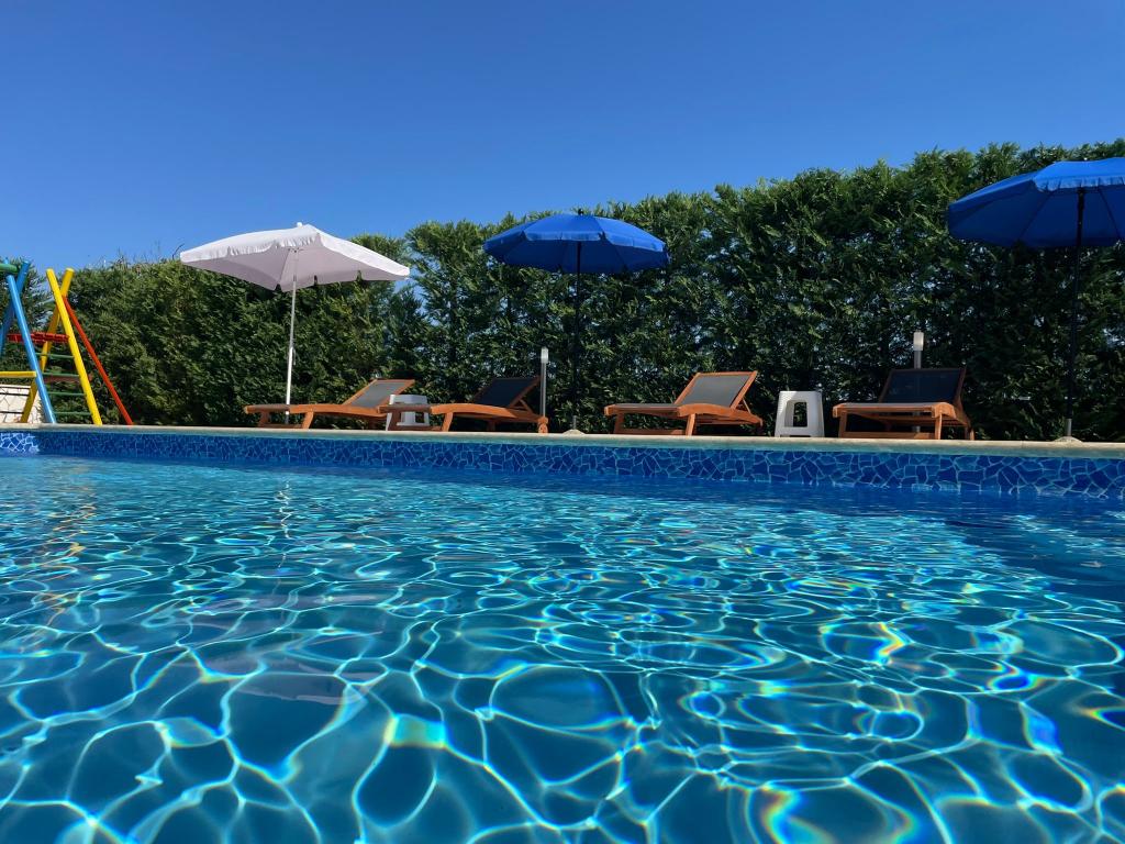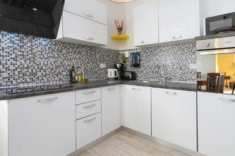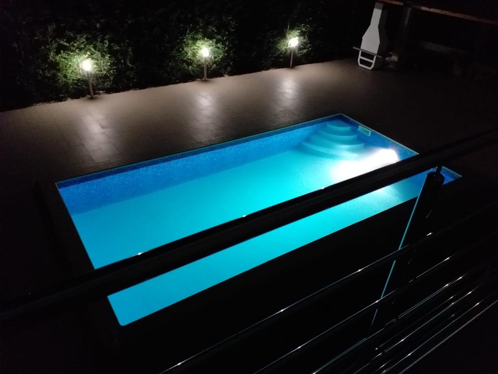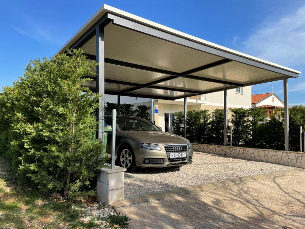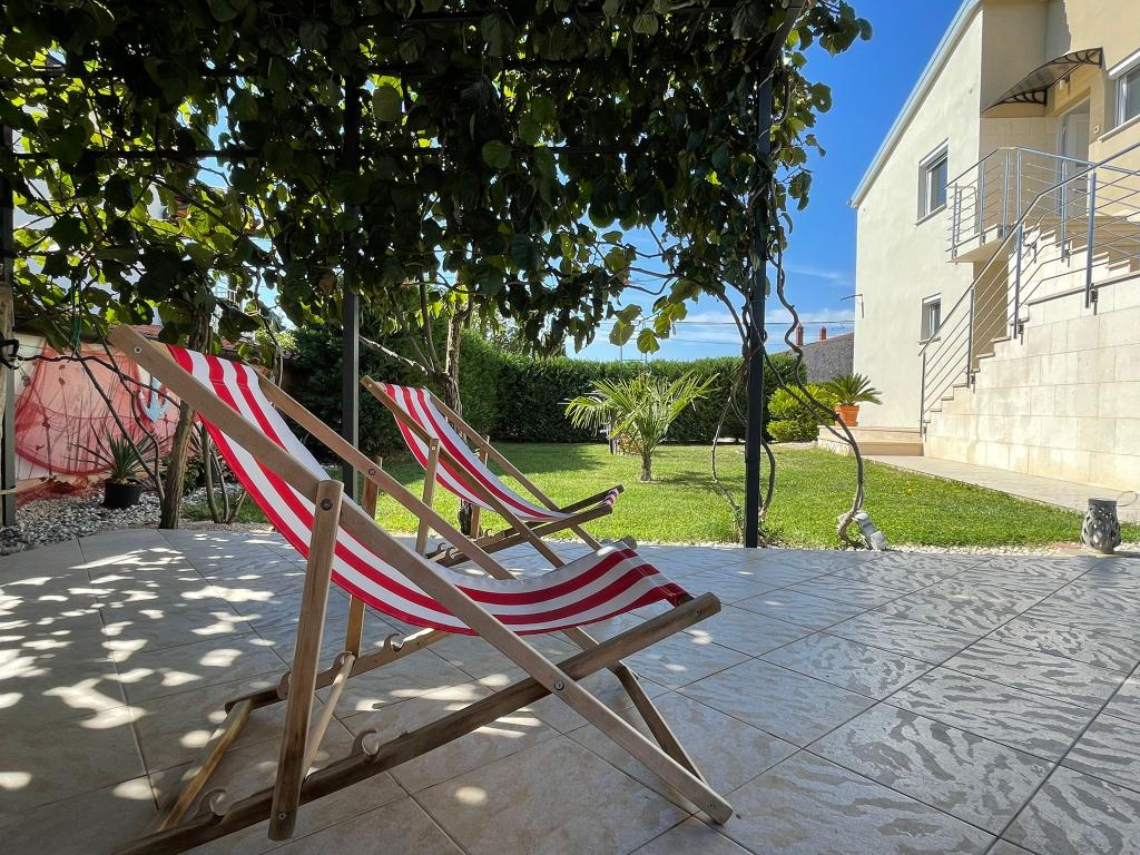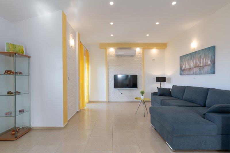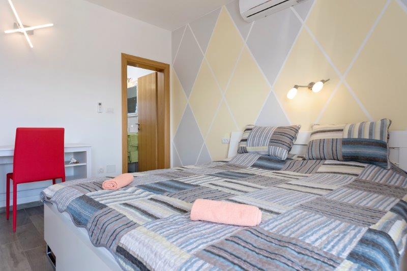 Wir befinden uns in der kleinen Stadt Kaštelir, 10 km von Poreč entfernt. Das Haus besteht aus zwei separaten Wohnungen, eine im Erdgeschoss, die andere im ersten Stock, das Haus wird als Ganzes vermietet. Jede Wohnung besteht aus einem Wohnzimmer, einer Küche und zwei Schlafzimmern mit jeweils eigenem Bad. Jede Wohnung verfügt über 3 Klimaanlagen, eine im Wohnzimmer und eine in jedem Zimmer. Die Wohnung ist mit allem ausgestattet, was für einen angenehmen Aufenthalt notwendig ist. Im Außenbereich gibt es einen Kinderspielplatz mit Schaukeln, Trampolin und Tischtennisplatte. Der Hof ist komplett eingezäunt, daher können Sie Ihren Hund gerne mitbringen, wir erheben für Hunde eine Gebühr von 12 Euro pro Tag. Im Außenbereich verfügen wir zusätzlich über einen 8x4m Swimmingpool, Sonnenliegen, Sonnenschirme und eine Sommerküche mit Grill. Vor der Wohnung haben wir 6 Parkplätze, davon 2 überdacht. Aufgrund anderer Verpflichtungen bei uns sind im Juli und August Buchungen nur von Sonntag bis Sonntag möglich, in den übrigen Monaten beträgt die Mindestaufenthaltsdauer 5 Tage und die Ankunftszeit kann an jedem beliebigen Wochentag erfolgen. Das Haus ist ideal für 8 Personen, bietet aber auch Platz für 10 Personen. Für eine weitere Person berechnen wir eine Gebühr v