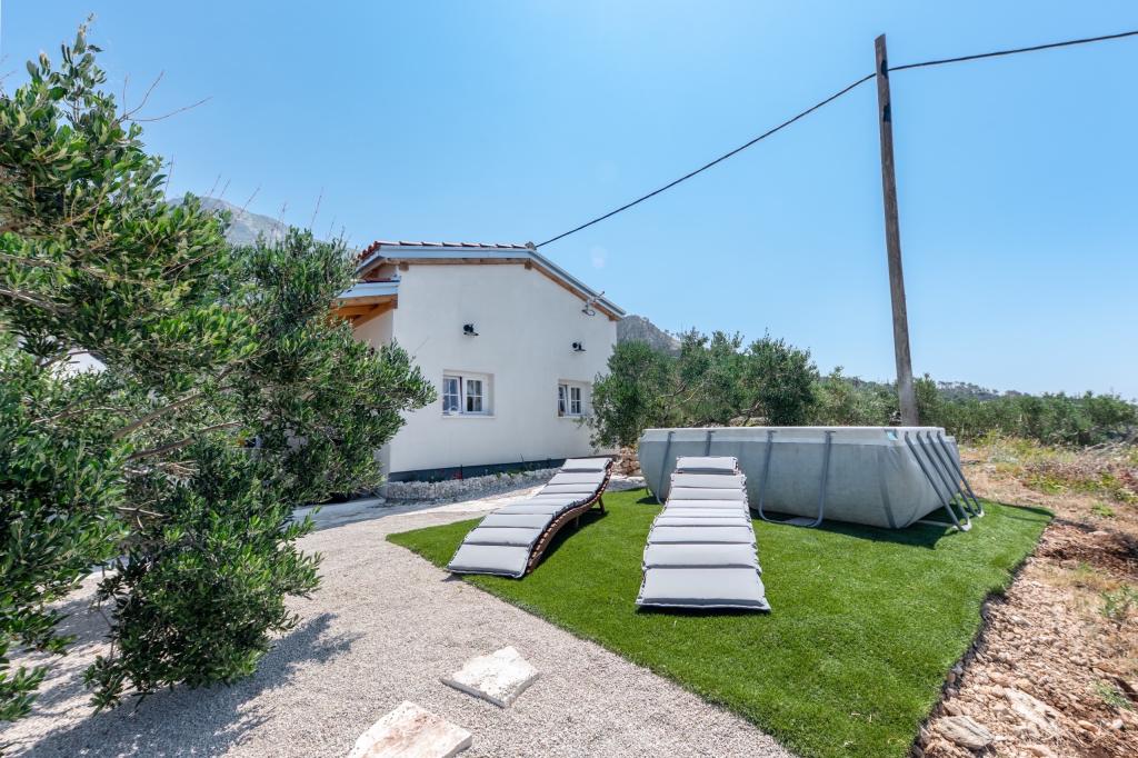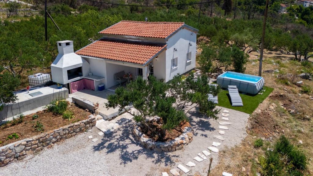 Willkommen in unserem zauberhaften Ferienhaus inmitten der Natur. Hier finden Sie Ruhe, Frieden und unvergessliche Ausblicke – der perfekte Rückzugsort für zwei. Umgeben von üppigem Grün und in einzigartiger Lage bietet das Haus bezaubernde Panoramablicke auf Brač, Hvar und das prächtige Biokovo-Gebirge. Ideal für Paare, die Privatsphäre und eine Auszeit vom Alltag suchen: Diese Oase der Ruhe bietet Ihnen eine Atmosphäre vollkommener Entspannung – ob Sie Ihren Morgenkaffee mit Vogelgezwitscher genießen oder den Sonnenuntergang in intimer Atmosphäre erleben. Nur 4 Autominuten trennen Sie von wunderschönen Stränden und Einkaufsmöglichkeiten, sodass Sie die perfekte Balance zwischen Abgeschiedenheit und praktischer Erreichbarkeit genießen können. Ihnen stehen ein Swimmingpool zur Erfrischung an warmen Tagen, ein Grill für gemütliche Abendessen im Freien und ein privater Garten mit ökologischem Anbau im Schatten jahrhundertealter Olivenbäume zur Verfügung. Hier spüren Sie die Natur hautnah – die Düfte des Mittelmeers, das Rascheln der Blätter und Klänge, die die Seele beruhigen. Wenn Sie einen Ort suchen, an dem Sie sich vollkommen entspannen, die Natur genießen und besondere Momente zu zweit erleben können – dann ist dieses Haus die perfekte Wahl.