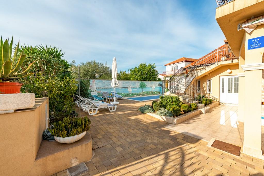 Diese atemberaubende Steinvilla mit privatem Außenpool mit Meerwasser wurde 2018 komplett renoviert. Die Villa liegt 100 m vom nächsten Strand entfernt. Es wurde ursprünglich vor 130 Jahren erbaut und besitzt daher seine eigene Einzigartigkeit, Wärme und Seele, von der Sie sich selbst überzeugen werden. Es bietet klimatisierte Unterkünfte sowie kostenloses WLAN und kostenlose Parkplätze für 3 Autos. Die Villa ist 210 Quadratmeter groß und verfügt über 4 Schlafzimmer, 3 Badezimmer, Bettwäsche, Handtücher, einen Flachbildfernseher mit Kabelkanälen, eine voll ausgestattete Küche und ein geräumiges Ess- und Wohnzimmer von 45 Quadratmetern, das sich hervorragend zum geselligen Beisammensein eignet. , es verfügt außerdem über eine überdachte Terrasse mit Gartenmöbeln und einem großen amerikanischen Gasgrill für einen angenehmen Urlaub und ein angenehmes Erlebnis. Der gesamte Hof ist von einem wunderschönen schmiedeeisernen Zaun und mediterraner Vegetation umgeben. Es ist nur 200 Meter vom Strand und nur 100 Meter vom Supermarkt, Restaurant, Markt, Arzt und Postamt entfernt. Ein Auto ist dafür nicht nötig, man kann alles zu Fuß erledigen.