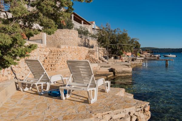 Eine schöne ländliche Atmosphäre in einer ruhigen Bucht neben einem kleinen Ort namens Vinišća. Villa Stella ist der ideale Ort für Ihren Urlaub. Die Villa wird komplett mit Garten vermietet. Die Villa ist 80m2 groß. Das Grundstück hat ca. 250m2, davon zwei überdachte Flächen von ca. 35m2. Im Untergeschoss des Gartens befinden sich Tische und Stühle / Bänke unter den Sonnenliegen neben dem Kamin und eine zusätzliche Außendusche mit WC. In der Villa, im Untergeschoss, befindet sich auch die Küche, die absichtlich vom ersten Stock getrennt ist (aufgrund des Kochgeruchs), wo sich die Zimmer befinden. Im ersten Stock gibt es 3 Zimmer: 1 x Doppelzimmer, 1 x Einzelzimmer, 1 x Doppelzimmer mit einem anderen Sofa. Die Gesamtkapazität beträgt 5 1. Von einem Raum aus gibt es eine Terrasse von ca. 25 m2, die nicht übersehen werden kann, sodass dieser Raum für den Abend angenehm ist. Die Villa ist ca. 50 m vom Meer entfernt. Am Meer haben Sie Ihr eigenes Steinmulett mit einem kleinen Kieselstrand. Villa hat einen privaten Parkplatz.