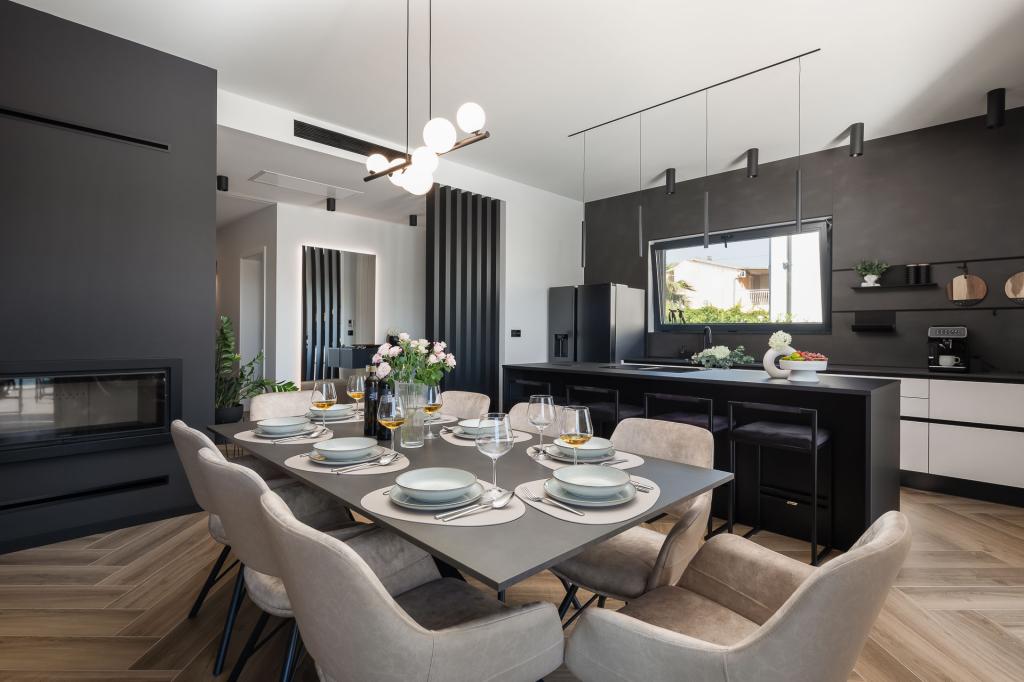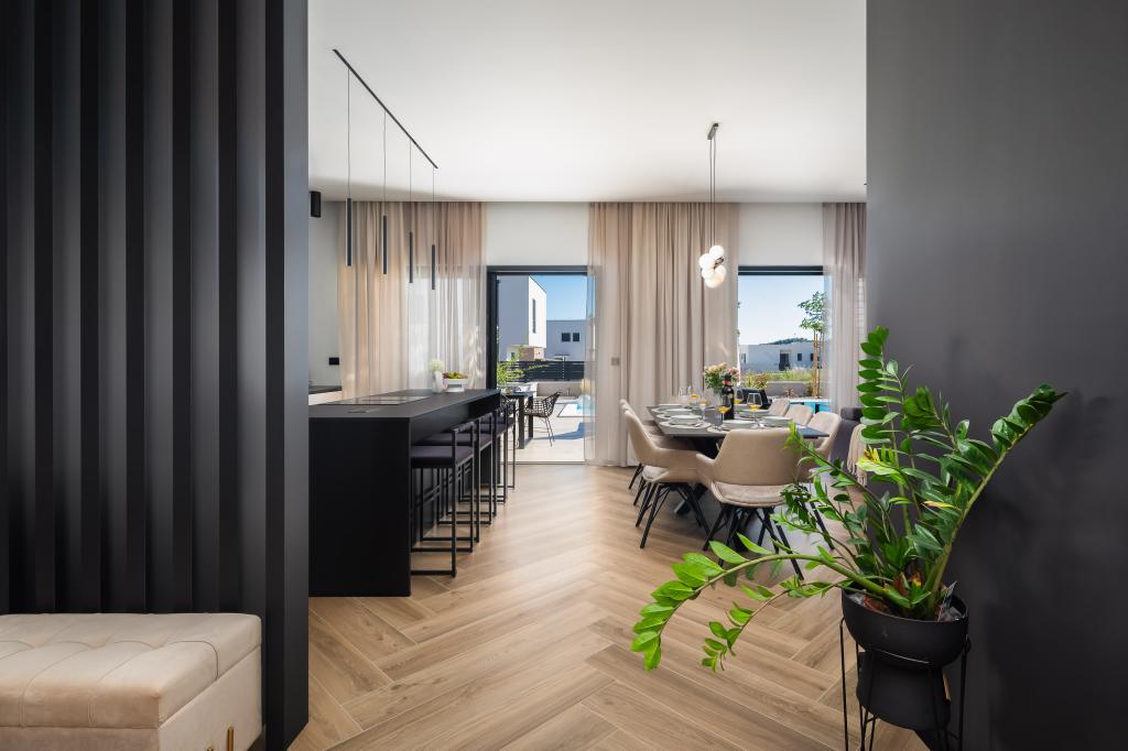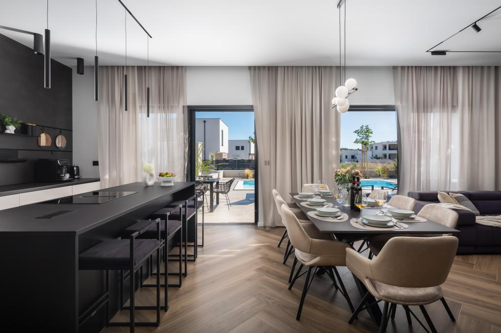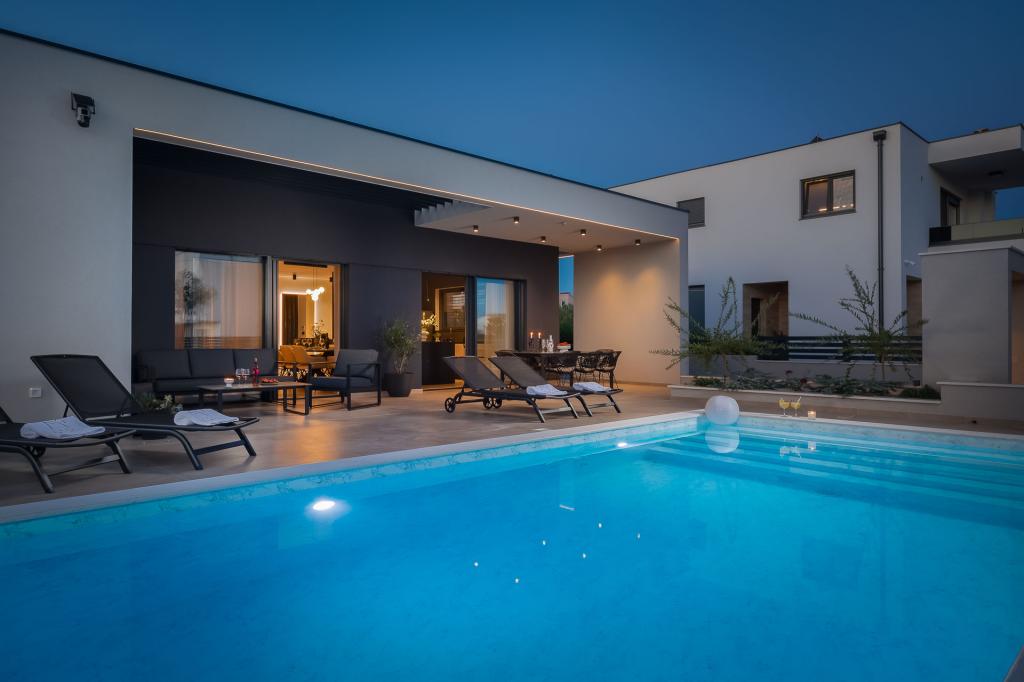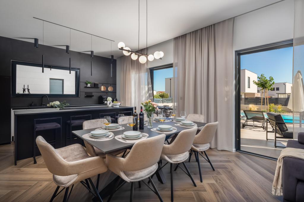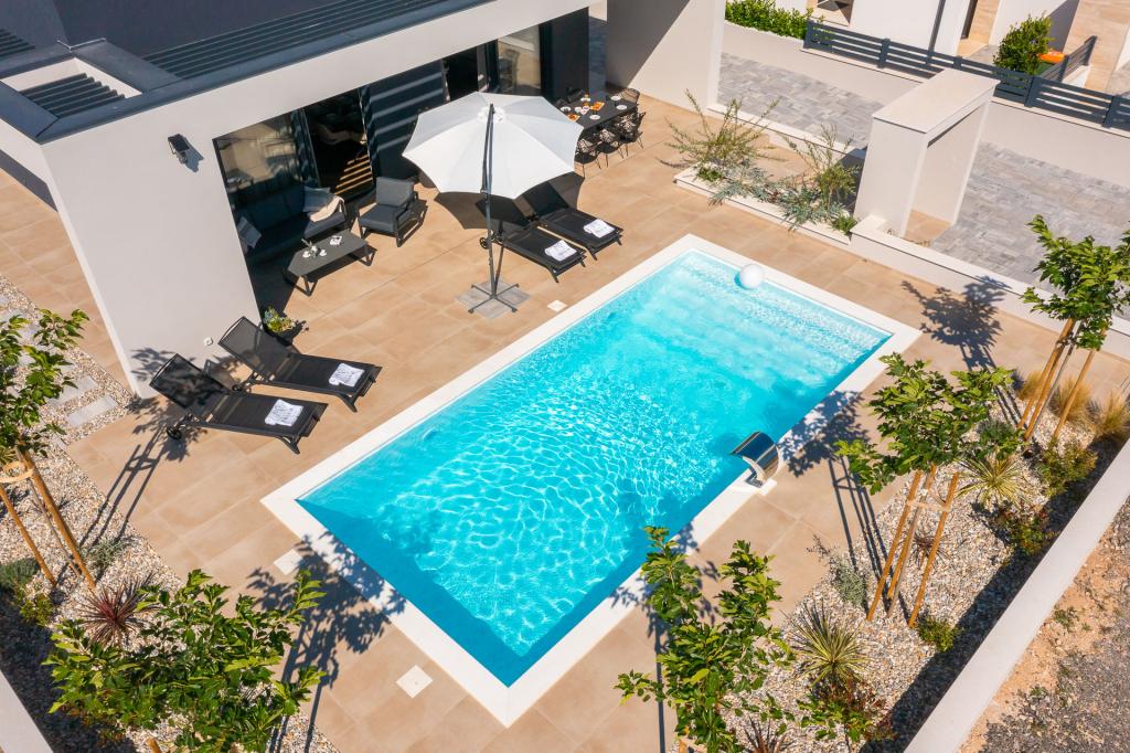 Wunderschön eingerichtete, moderne Villa in Vodice in einem ruhigen Dorf, ideal für Ihren Urlaub. Das Haus ist eingeschossig und verfügt über einen offenen Raum mit einer großen Küche und einem geräumigen Wohnzimmer mit einem bequemen Sofa. Die Villa verfügt über 3 Schlafzimmer mit angeschlossenen Badezimmern. Entspannen Sie auf der geräumigen Terrasse am Pool und genießen Sie zubereitete Mahlzeiten vom Grill. Die Villa ist eingezäunt